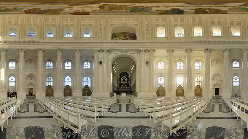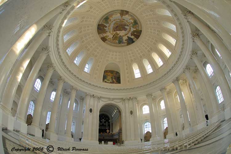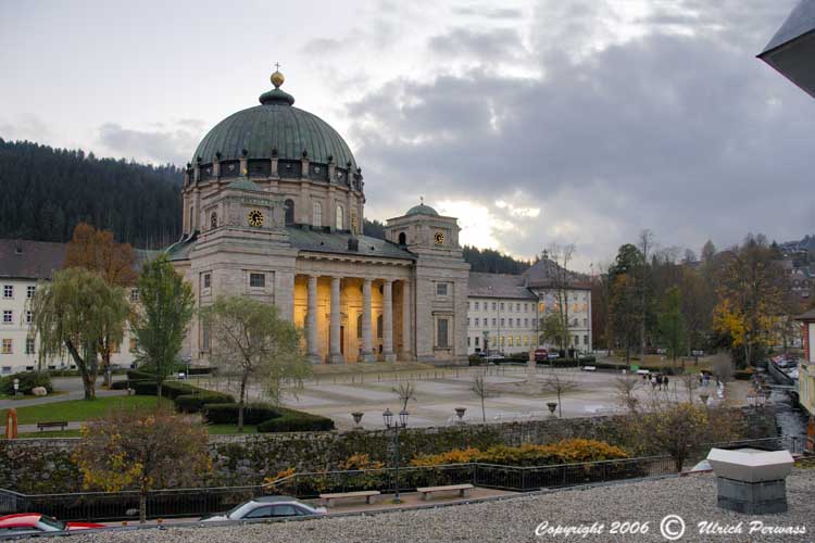 Auf meiner Wanderung durch den Schwarzwald im Herbst 2006 konnte ich das Kleinod des südlichen Schwarzwaldes, den Dom zu St. Blasien, besichtigen. So manch einer vergleicht den hellen lichten Kuppelbau mit dem Pantheon in Rom. Die Geschichte des Klosters St Blasien im Schwarzwald beginnt bereits vor dem 8. Jahrhundert. Nach langer wechselvoller Geschichte wurde am 21. September 1783 als Ersatz für die alte zweitürmige Barockkirche der neue Kuppelbau eingeweiht. Doch bereits 1874 wird dieser Holzbau ein Raub der Flammen. Erst 1883 ist die neue Kuppel fertig. Weitere Schicksalsschläge folgen bis dann 1983 die Kirche in ihrer jetzigen Form geweiht werden konnte. Ich bin sehr glücklich und dankbar dafür, dass ich Ihnen das Innenraumpanorama mit freundlicher Genehmigung zeigen darf. Über die Dompfarrei St. Blasius erhalten Sie weitere Informationen zur Geschichte des Domes. Start mit Klick auf das nachstehende Bild. Zurück mit Alt+Links |