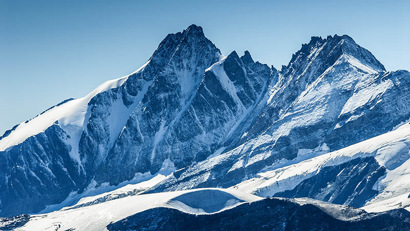 Blick vom Kitzsteinhorn auf den Großglockner mit seiner Pallavicinirinne |