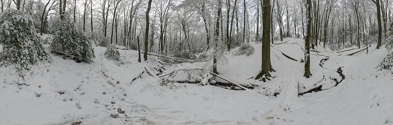 Siefen oder Siepen bezeichnet im Bergischen Land bei Köln, im Ruhrgebiet und im südlichen Westfalen ein feuchtes, schluchtartiges Kerbtal mit einem Quellbach. Dies sind Überbleibsel der Nacheiszeit, in der weitaus größere Wassermassen als gegenwärtig das Gelände tief auskerben konnten. Auch heute noch ist es oftmals unmöglich, den sumpfigen Talgrund zu queren, so dass man auf Wanderungen tunlichst auf den schmalen Stegen bleiben sollte. Das folgende Panorama zeigt solch einen Siefen beim Ort Obereschbach an der B55 nach ausgiebigen Schneefällen im Dezember 2010.