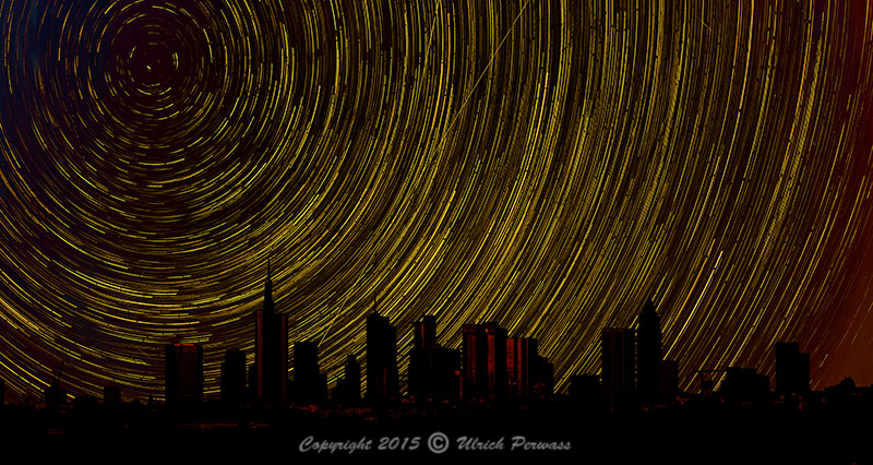 Finanzdistrikt in Frankfurt am Main (Mainhattan) vor dem Sternenhimmel
