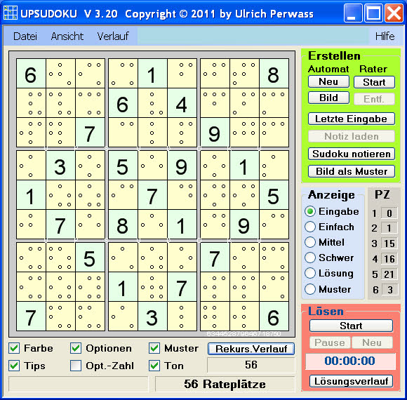 Das vorliegende Programm UPSUDOKU hilft Ihnen bei der Lösung