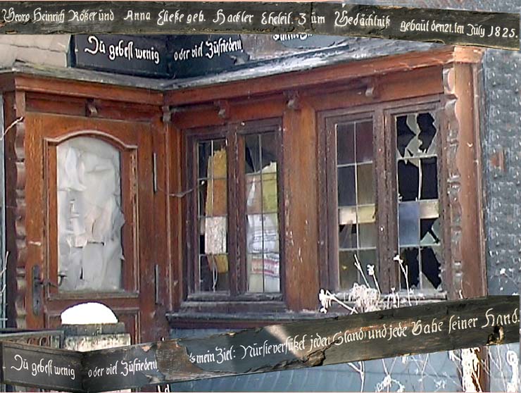 Leider kann oder will man den alten Gasthof Röser nicht erhalten. Deshalb hier ein Bild zur Erinnerung. Die Hauswidmung ist einkopiert: |