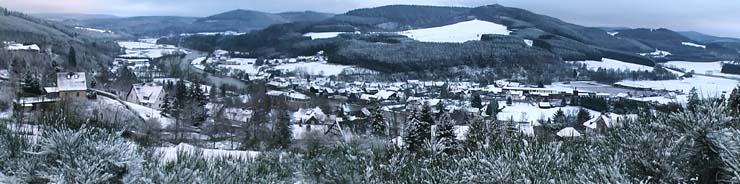 Schwarzenau, die Perle des unteren Edertales im Landkreis Siegen-Wittgenstein, liegt nahe Bad Berleburg und ist dorthin seit einigen Jahren auch eingemeindet. Mitten im Ort befindet sich an der Eder das Jagdschloss eines Zweigs der Familie zu Sayn-Wittgenstein. Umgeben ist Schwarzenau von der herrlichen weiten Landschaft des Rothaargebirges im südlichen Sauerland. Uns zieht es immer wieder nach Schwarzenau, um auszuspannen, zu wandern oder im Winter beim Skilanglauf in der sogenannten "Wittgensteiner Schweiz" unsere "morschen Knochen" zu trainieren. |