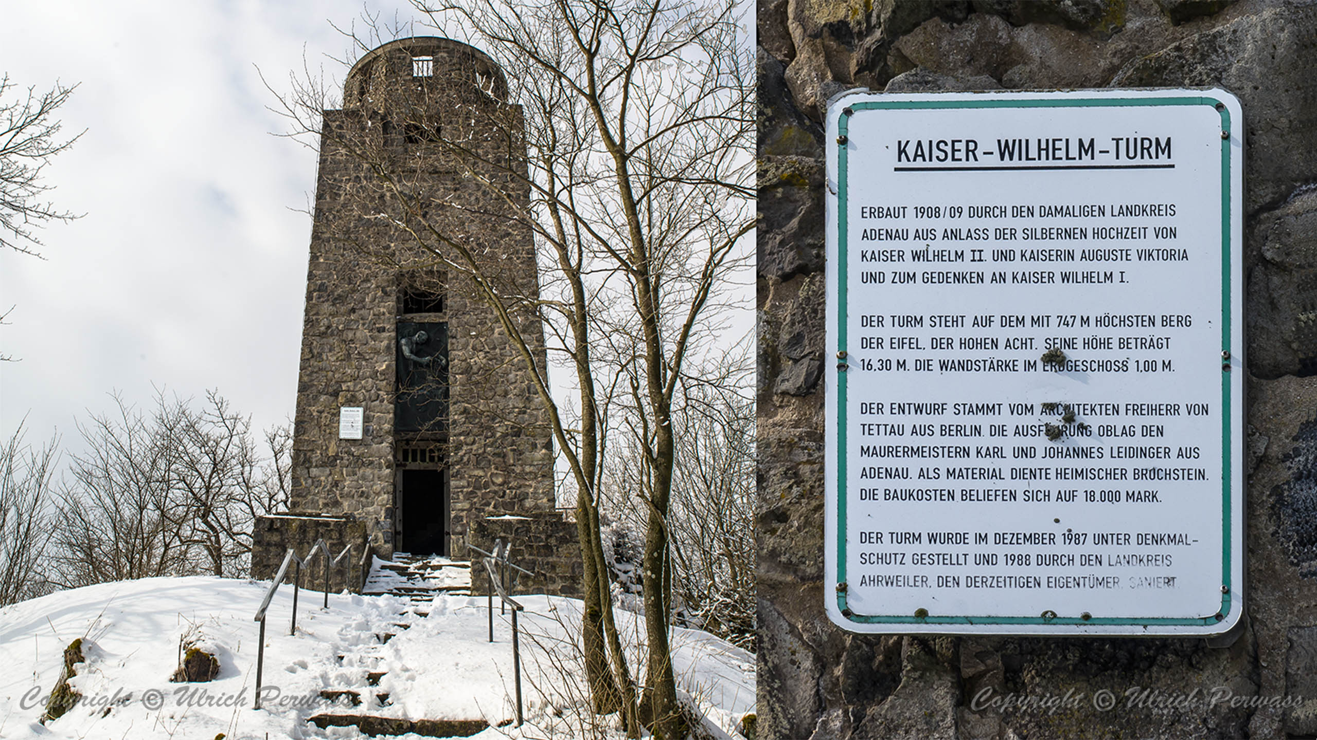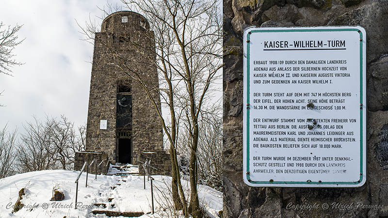 Die Hohe Acht ist mit 747 m der höchste Berg der Eifel. Vom Kaiser-Wilhelm-Aussichtsturm ergibt sich ein weiter Blick über die Eifelhöhen hinweg bis zum Siebengebirge. An klaren Tagen ist selbst der Kölner Dom auszumachen. Die Nürburg und der Nürburgring liegen südlich in unmittelbarer Nachbarschaft.