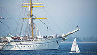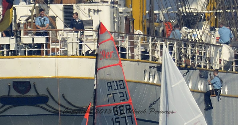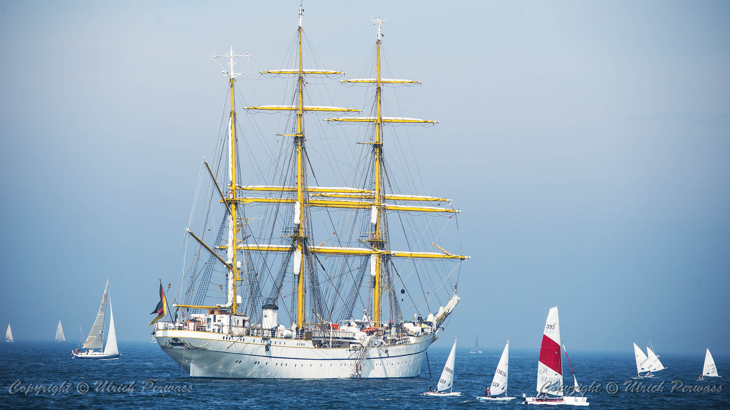 GORCH FOCK umschwärmt von Segelfans aus demOlympiazentrum Schilksee |