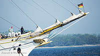 "GORCH FOCK" Am Freitag, den 17. Mai 2013 konnte ich bei einer Rundfahrt auf der Kieler Förde bei Strande das deutsche Segelschulschiff GORCH FOCK aufnehmen. Es lag dort seit zwei Tagen auf Reede, um pünktlich am Samstag um 10.00 Uhr an der Tirpitzmole im Marinestützpunkt Kiel festmachen zu können. Man erwartete dort das Schiff mit allen Zeremonien, die die deutsche Marine für solche Gelegenheiten parat hat. Natürlich wurde hier auf der Reede auch klar Schiff gemacht. Bei meinen Panoramen können Sie den fleißigen Matrosen bei der Arbeit zuschauen: Die Vollfensterdarstellung nachstehender Bilder erhalten Sie jeweils mit einem Klick: |