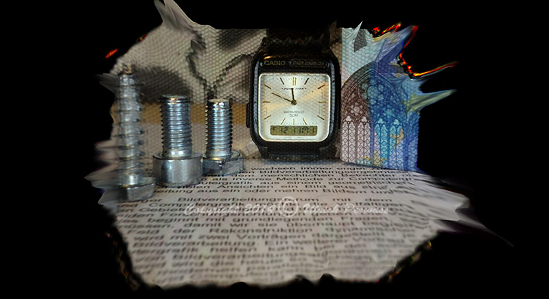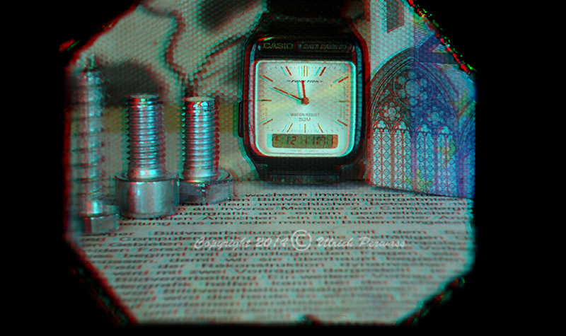 Hier nun meine ersten, noch sicher verbesserungsbedürftigen Ergebnisse. Zunächst die Frontalaufnahme eines kleinen Stilllebens, danach die gleiche Aufnahme in 3D und anschließend das Video einer vollen Drehung um die Y-Achse(!). Zum Schluss dann noch eine Aufnahme des Versuchsaufbaus vom 7. Dezember 2013.