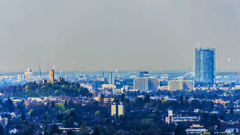6: | Fernsehturm Colonius in Köln im Dunst | 38,9 km |
