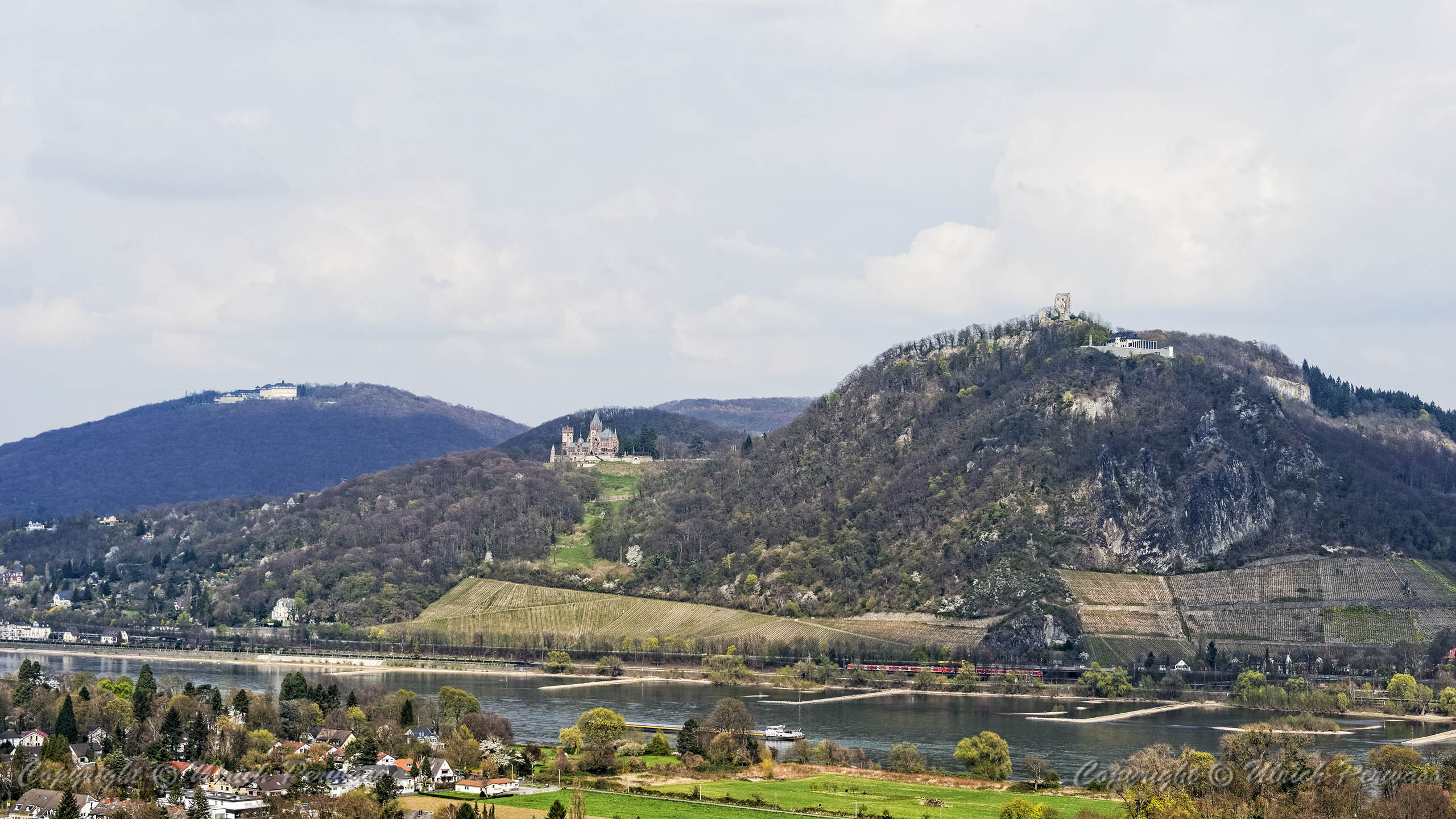 Das Wetter war Ende März 2014 sommerlich warm, so dass ich mich entschloss, den romantischen Rhein an seiner eindrucksvollsten Stelle nochmals aufzusuchen: Burg Rolandseck mit dem weltberühmten Rolandsbogen am Rodderberg gegenüber vom Drachenfels. Im Ohr hatte ich dabei den unvergessenen Sänger Willy Schneider mit einem Gedicht von Jörg Ritzel und der Musik von Paul Mania: