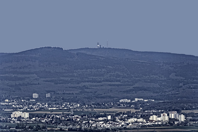 Großer Feldberg im Taunus Gesehen aus 20,22 km Entfernung vom Main Tower in Frankfurt |