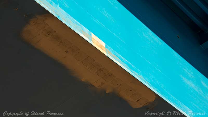 Spuren der Haftseite der Gleitplatten am Brückenkasten