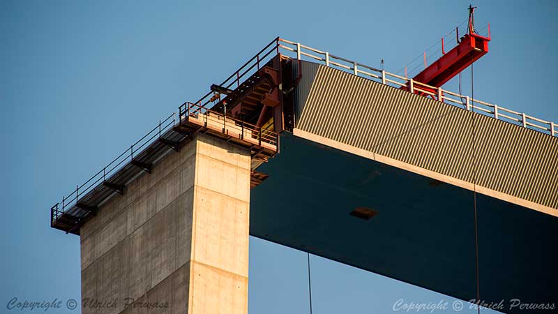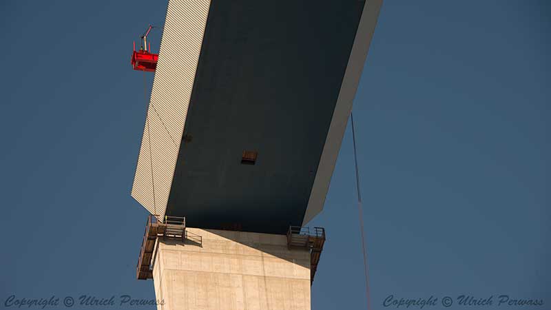 Um 11:35 Uhr ist der Brückenkasten über dem Pfeiler 5
