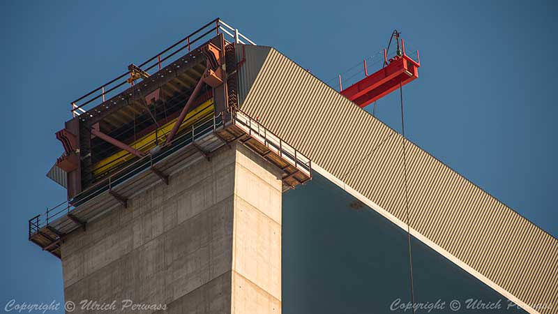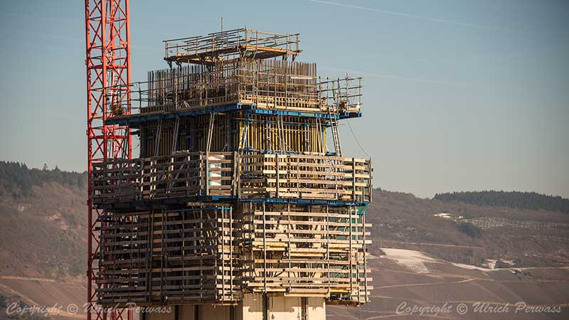 Das Wandergerüst am Pfeiler 3, der noch im Bau ist