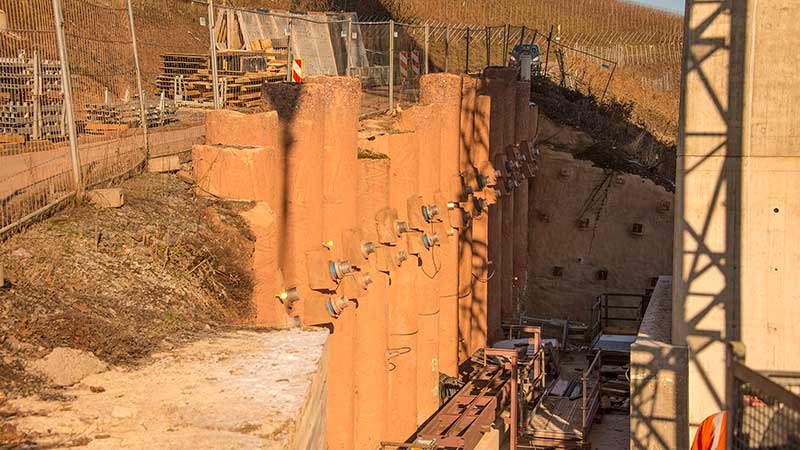 Baustelle zur Hangsicherung gegen Abgleiten