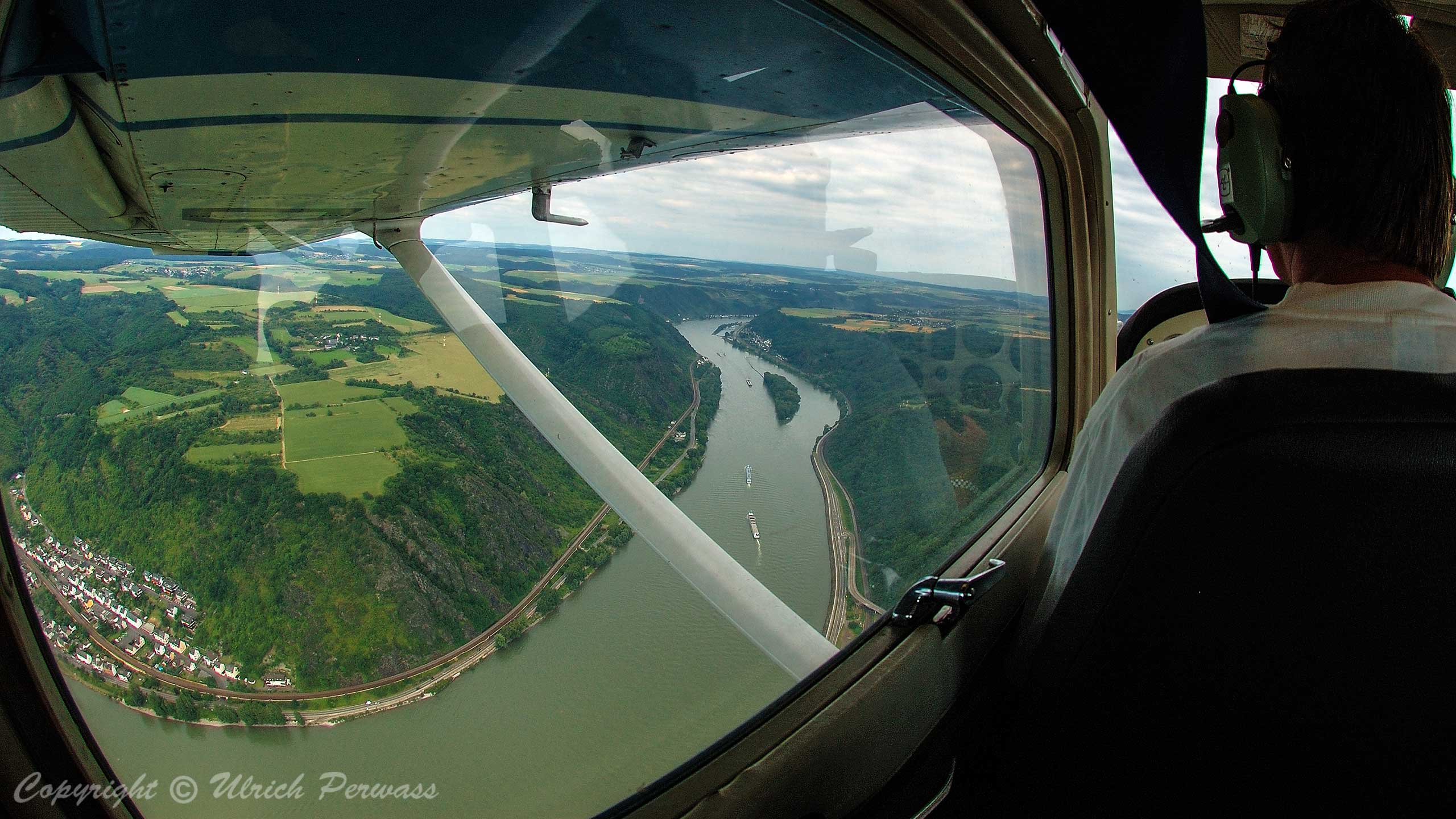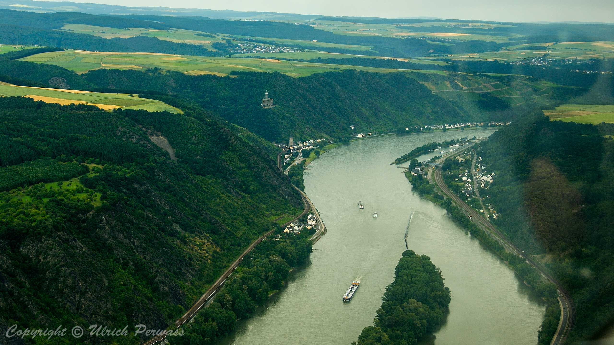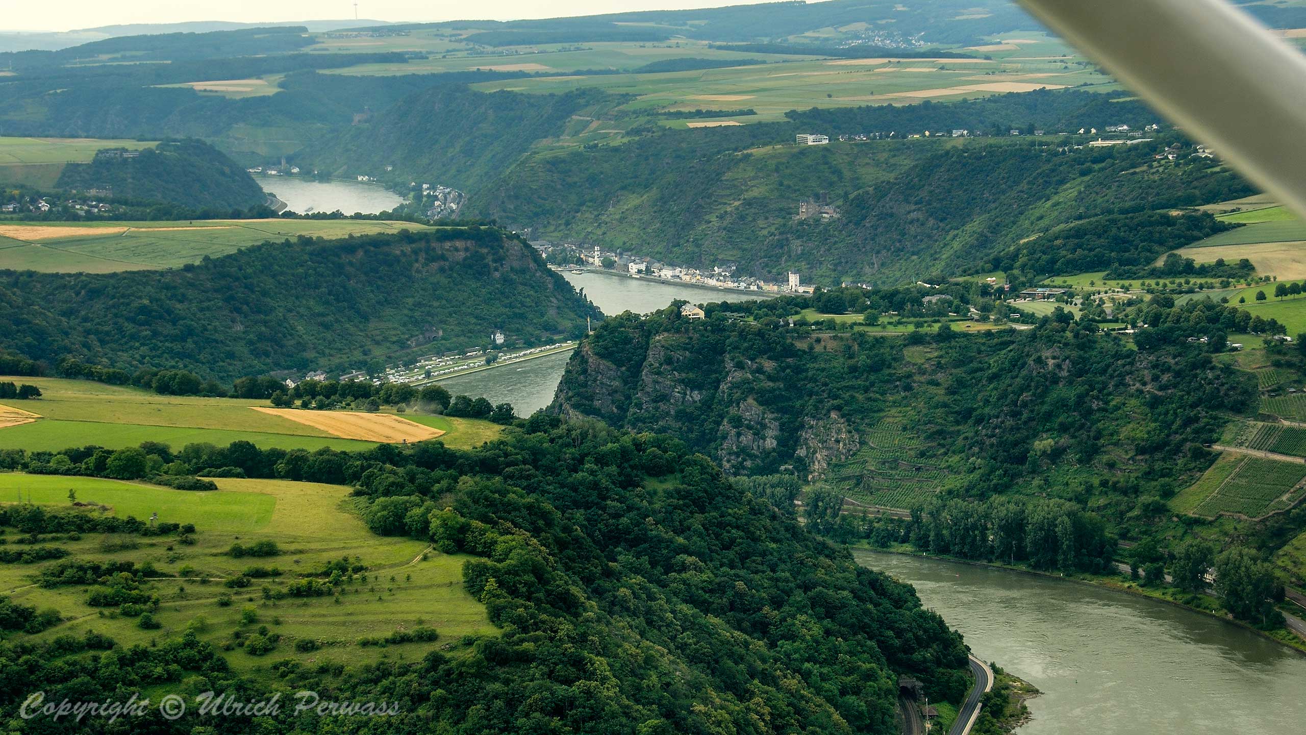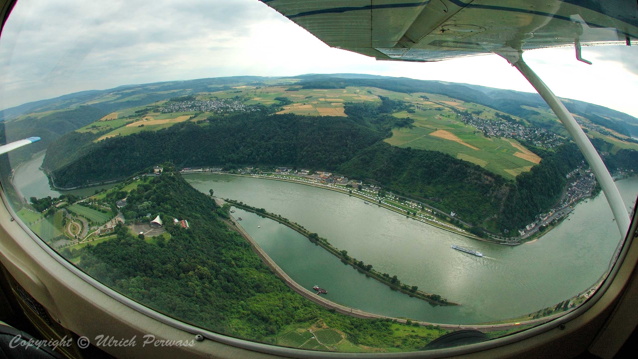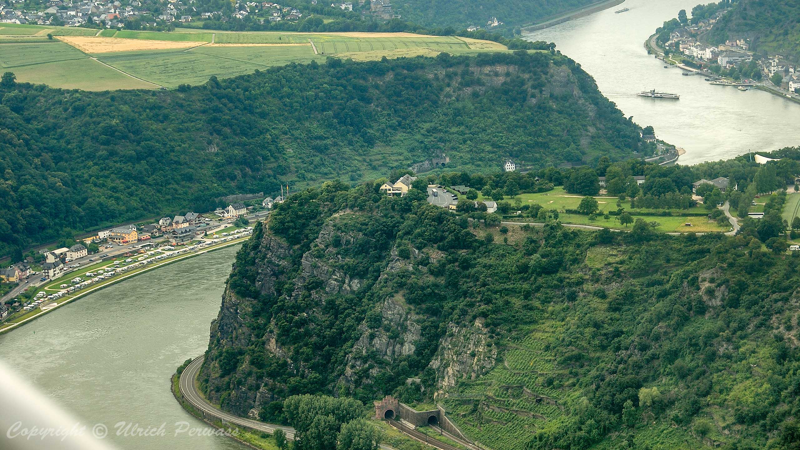 Der Rhein von oben Bereits im Jahre 2009, genauer am 24. Juni 2009, konnte ich das Geburtstagsgeschenk meines Neffen Michael endlich einlösen, da der Wetterbericht vorübergehend gutes Wetter vorausgesagt hatte. Also zogen wir beide los und fanden auch gleich in Hangelar einen netten Piloten, der uns bis Kaub die wunderschöne, romantische Rheinlandschaft zeigen wollte. Kommen Sie mit und erleben Sie die wehrhaften Burgen des Rheines mal nicht vom Deck eines Raddampfers sondern von hoch oben aus luftiger Höhe. Der Sommer 2017 steht vor der Tür! Warum nicht mal eine Rheintour planen? Diese Fotoschau können Sie jetzt auch auch im Großbildformat mit Ihrem Smart-TV genießen, wenn Sie den nachstehenden Hinweis vor der Fotoschau beachten. |