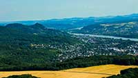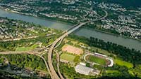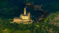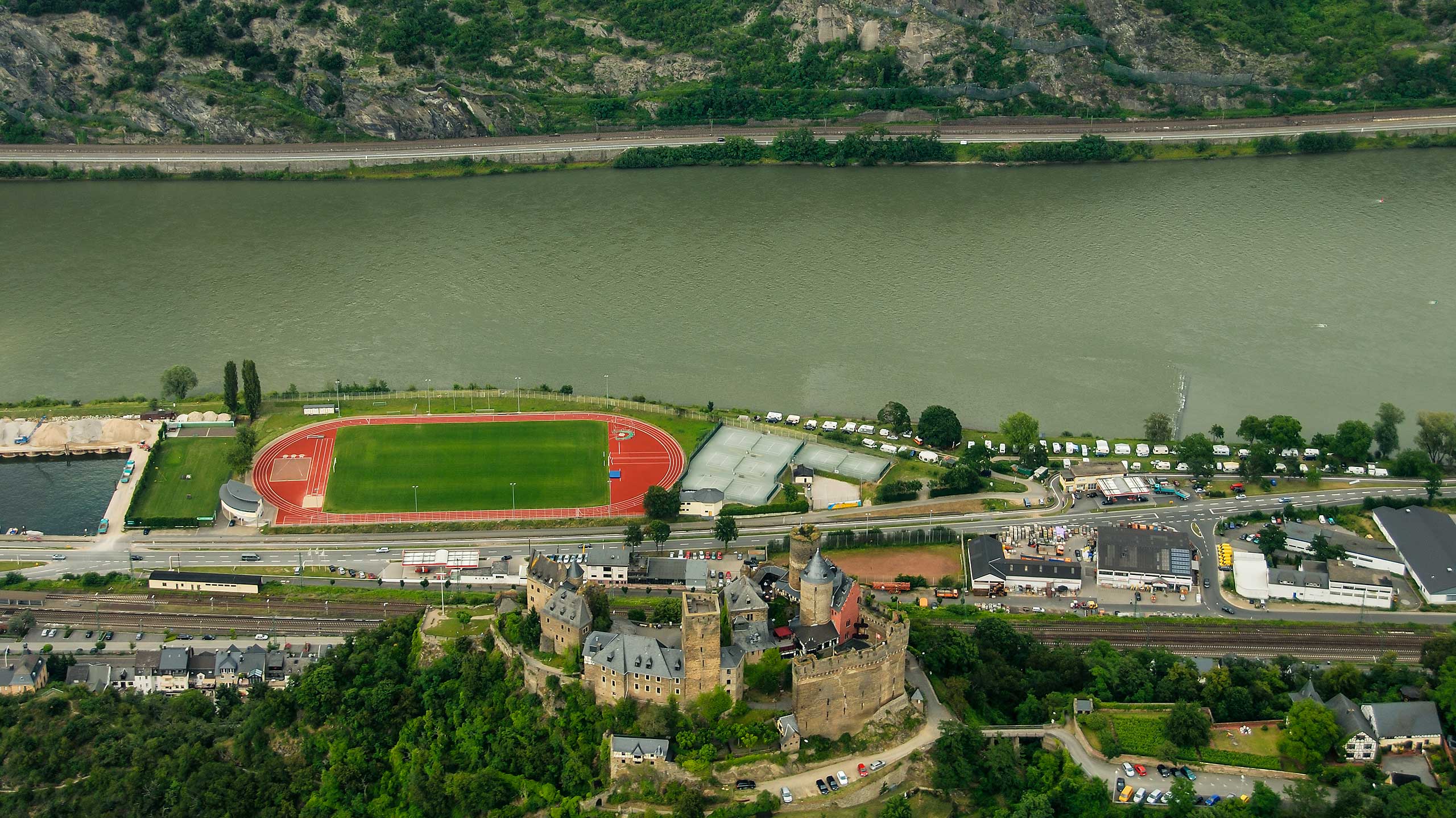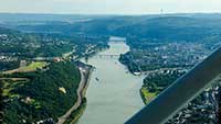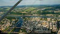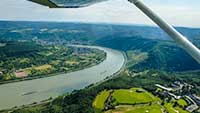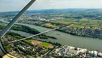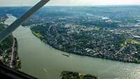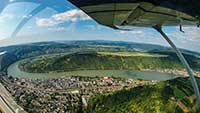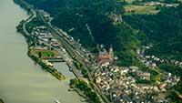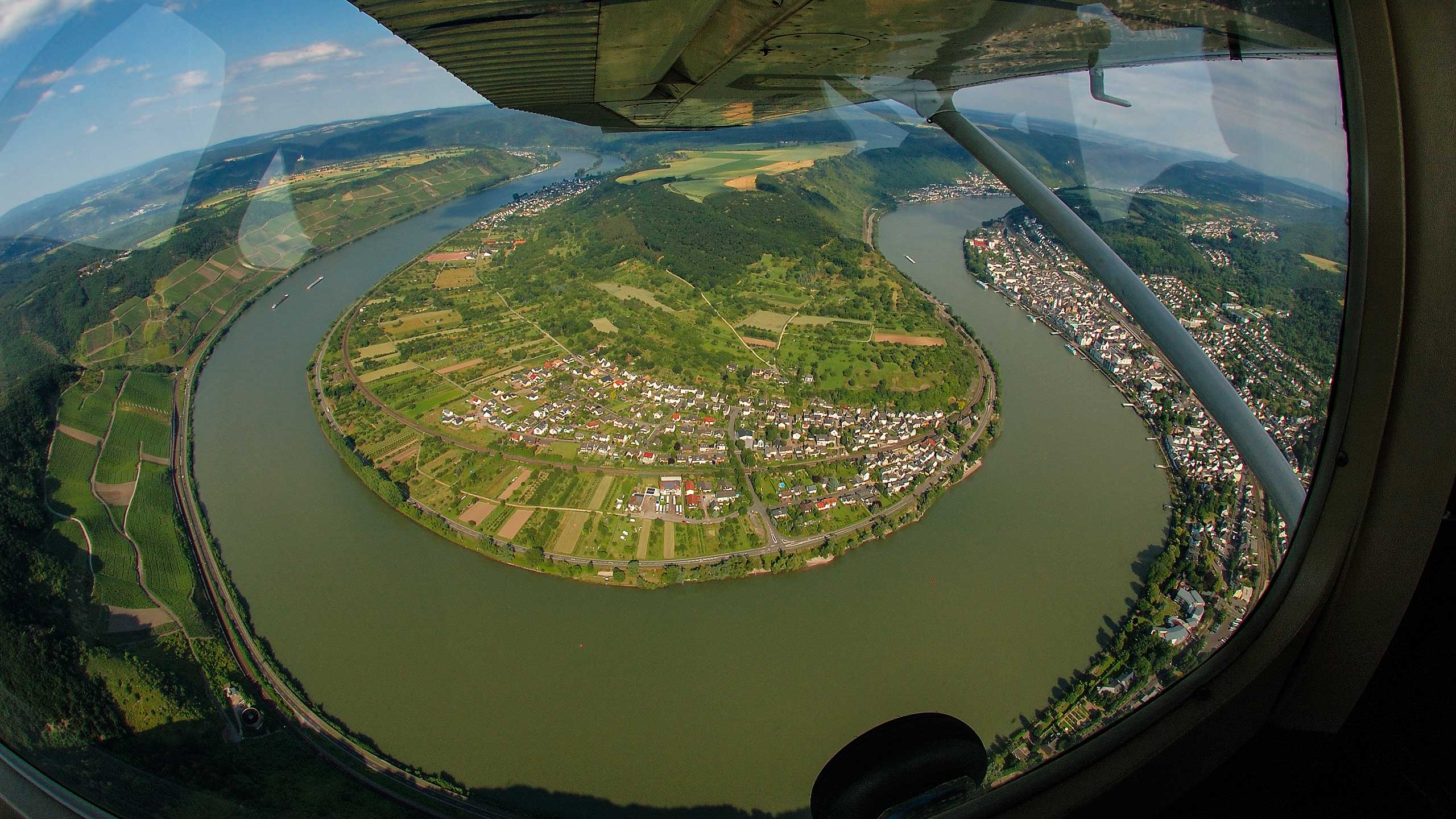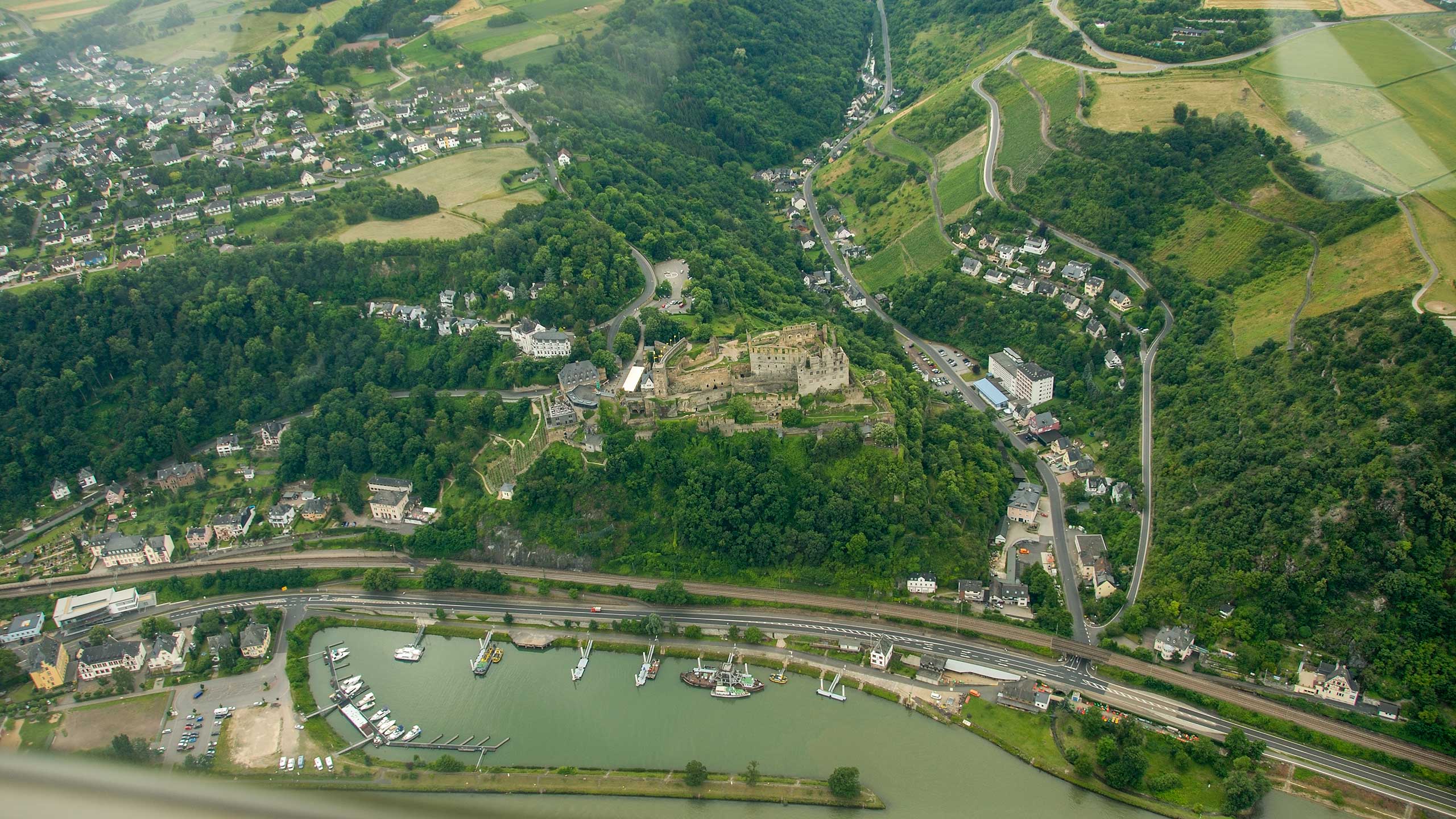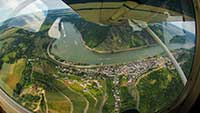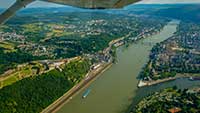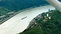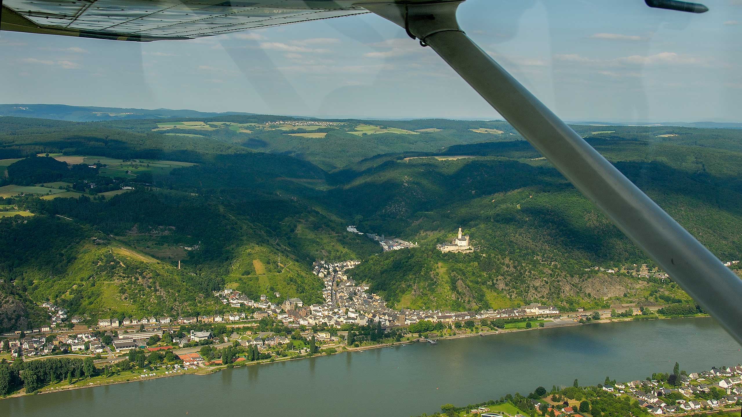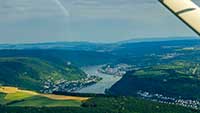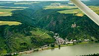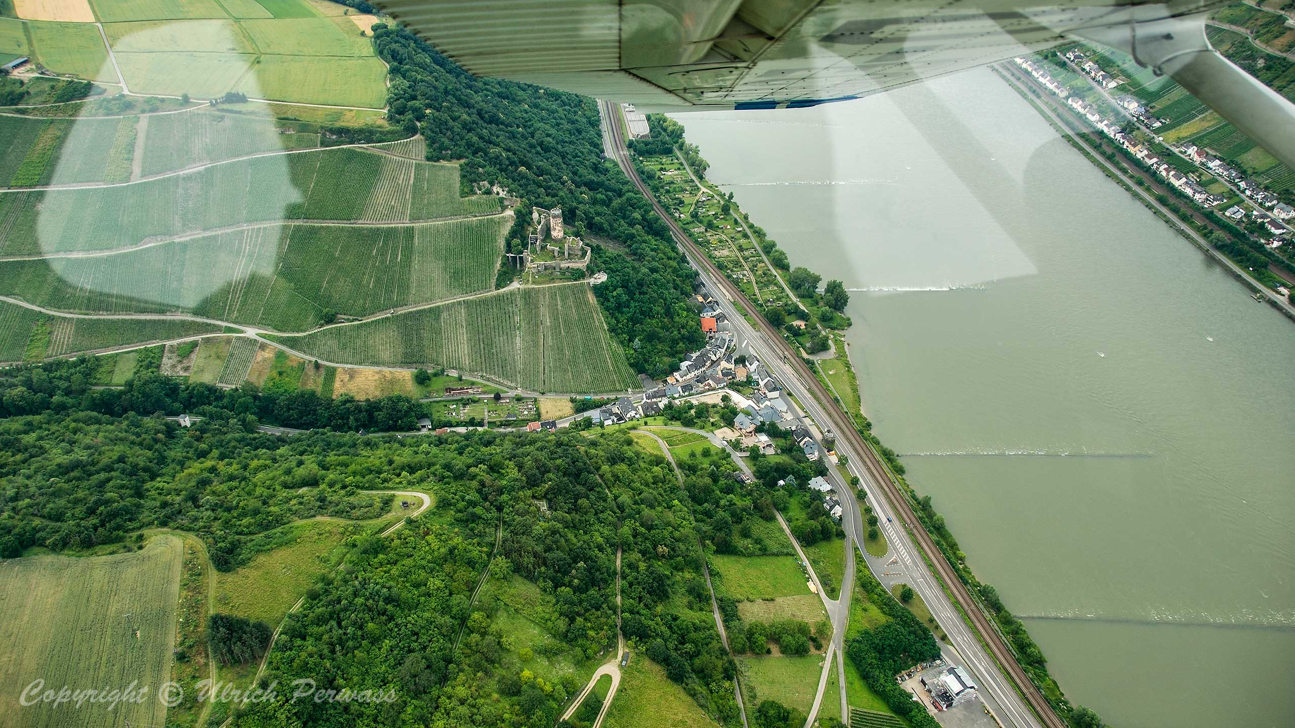Der Rhein von oben Bereits im Jahre 2009, genauer am 24. Juni 2009, konnte ich das Geburtstagsgeschenk meines Neffen Michael endlich einlösen, da der Wetterbericht vorübergehend gutes Wetter vorausgesagt hatte. Also zogen wir beide los und fanden auch gleich in Hangelar einen netten Piloten, der uns bis Kaub die wunderschöne, romantische Rheinlandschaft zeigen wollte. Kommen Sie mit und erleben Sie die wehrhaften Burgen des Rheines mal nicht vom Deck eines Raddampfers sondern von hoch oben aus luftiger Höhe. Der Sommer 2017 steht vor der Tür! Warum nicht mal eine Rheintour planen? Diese Fotoschau können Sie jetzt auch auch im Großbildformat mit Ihrem Smart-TV genießen, wenn Sie den nachstehenden Hinweis vor der Fotoschau beachten. |