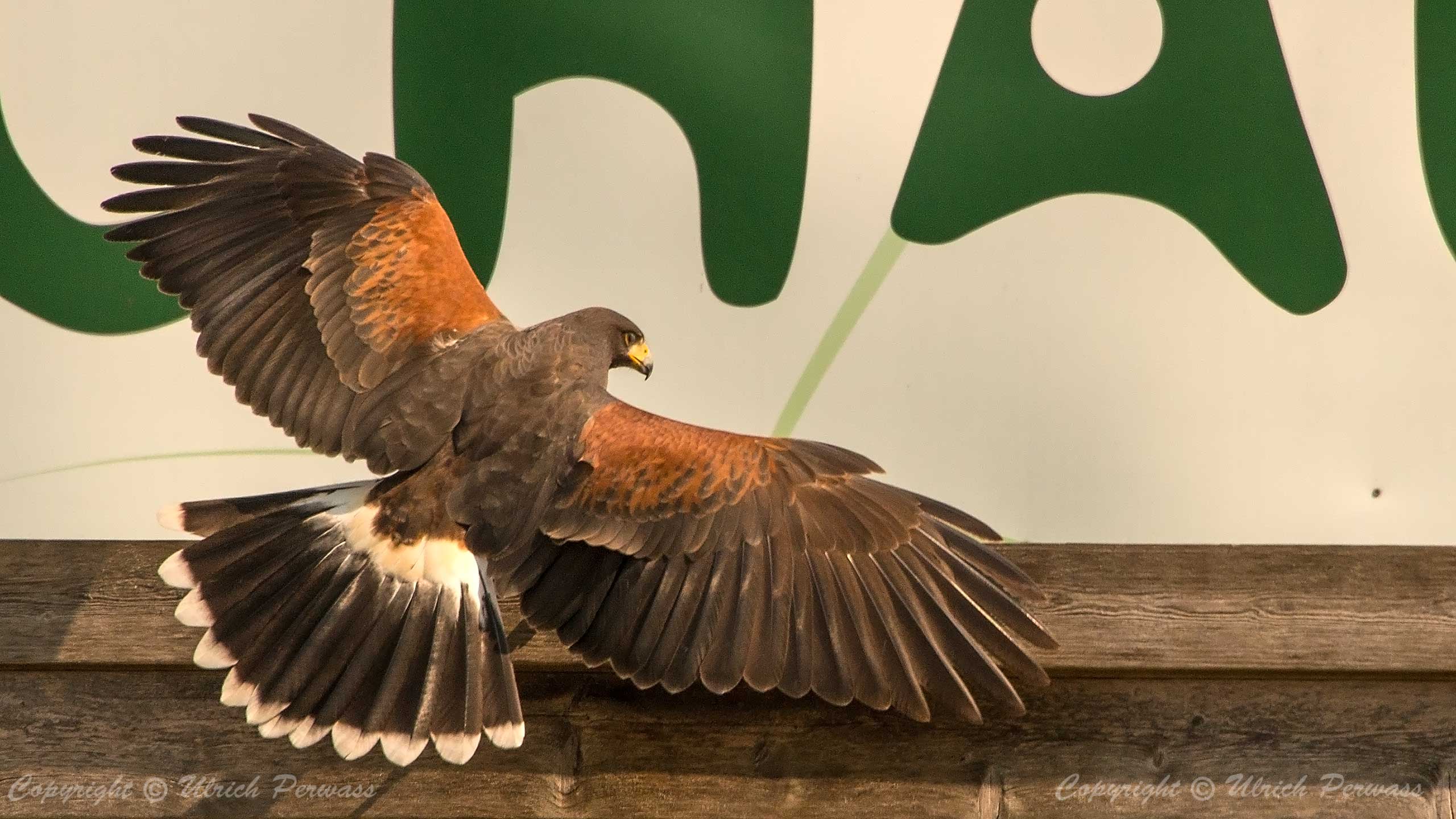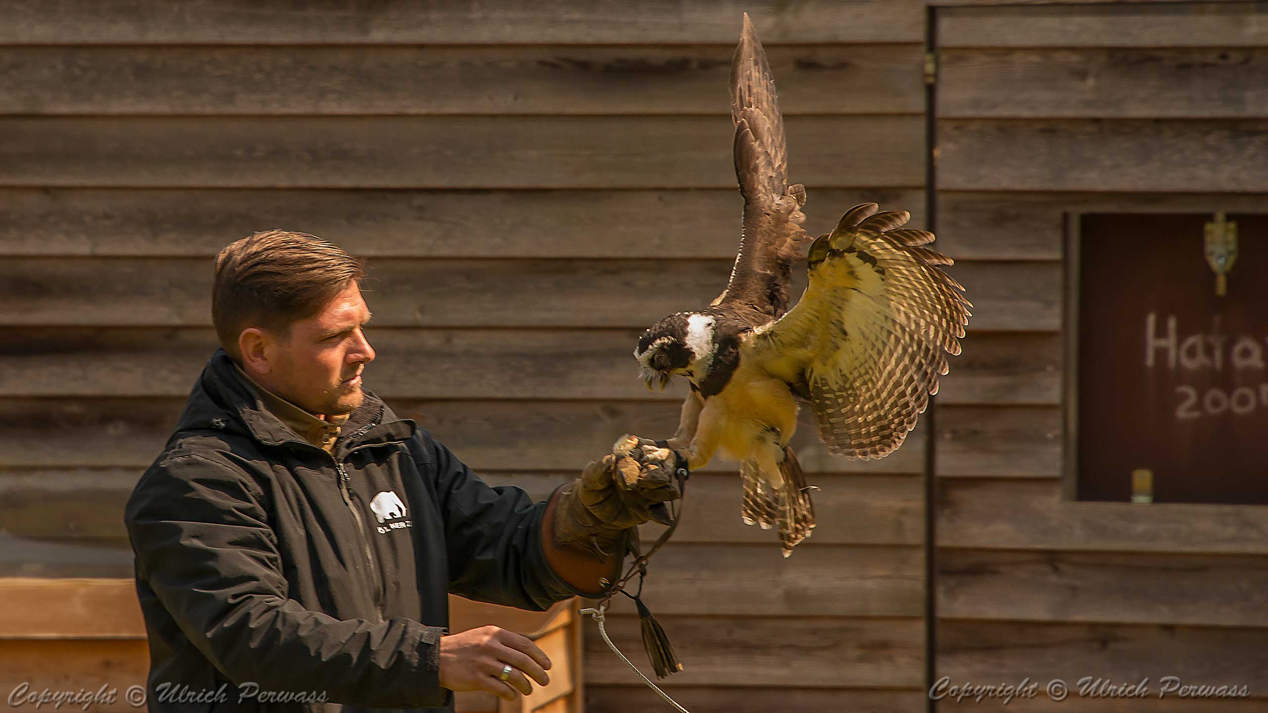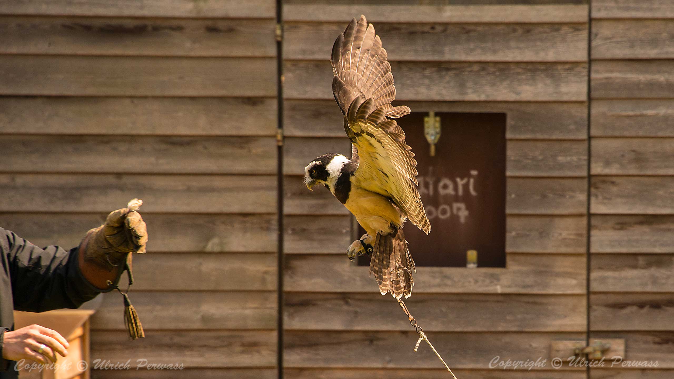 Flugschau im Kölner Zoo Wie jedes Jahr lockten mich die ersten warmen Sonnenstrahlen wieder hinaus in den Kölner Zoo, um den vielfältigen Nachwuchs zu bewundern und zu fotografieren. Hier vor allem Moma, den jungen Elefantenbullen, der am 20. März 2017 das Licht des Kölner Zoos erblickte. Seine Mutter Marla fotografierte ich bereits Anfang April 2006 direkt nach ihrer Geburt und stellte die Bilder damals ins Netz. Siehe dort in der Galerie 2006-02 "Frühling im Kölner Zoo 2006". Nun werden Sie mich sicher fragen, seit wann Elefantenbullen fliegen können und seien sie auch noch so jung. Was für eine Flugschau soll das denn sein, die hier so groß angekündigt wird? Ein Looping, ein Turn oder ein Kavaliersstart direkt über dem Elefantengehege im Jumbo-Look? Nein, nein, natürlich nicht! Doch auf dem Wege dorthin entdeckte ich das Werbeplakat für die Greifvogelschau, die nach langer Winterpause endlich wieder täglich um 14.30 Uhr starten soll. Also nichts wie anderntags wieder in den Zoo und fotografieren! Über 1000 Bilder entstanden so, von denen einige (83) ich Ihnen hier zeigen will. Viel Spaß!