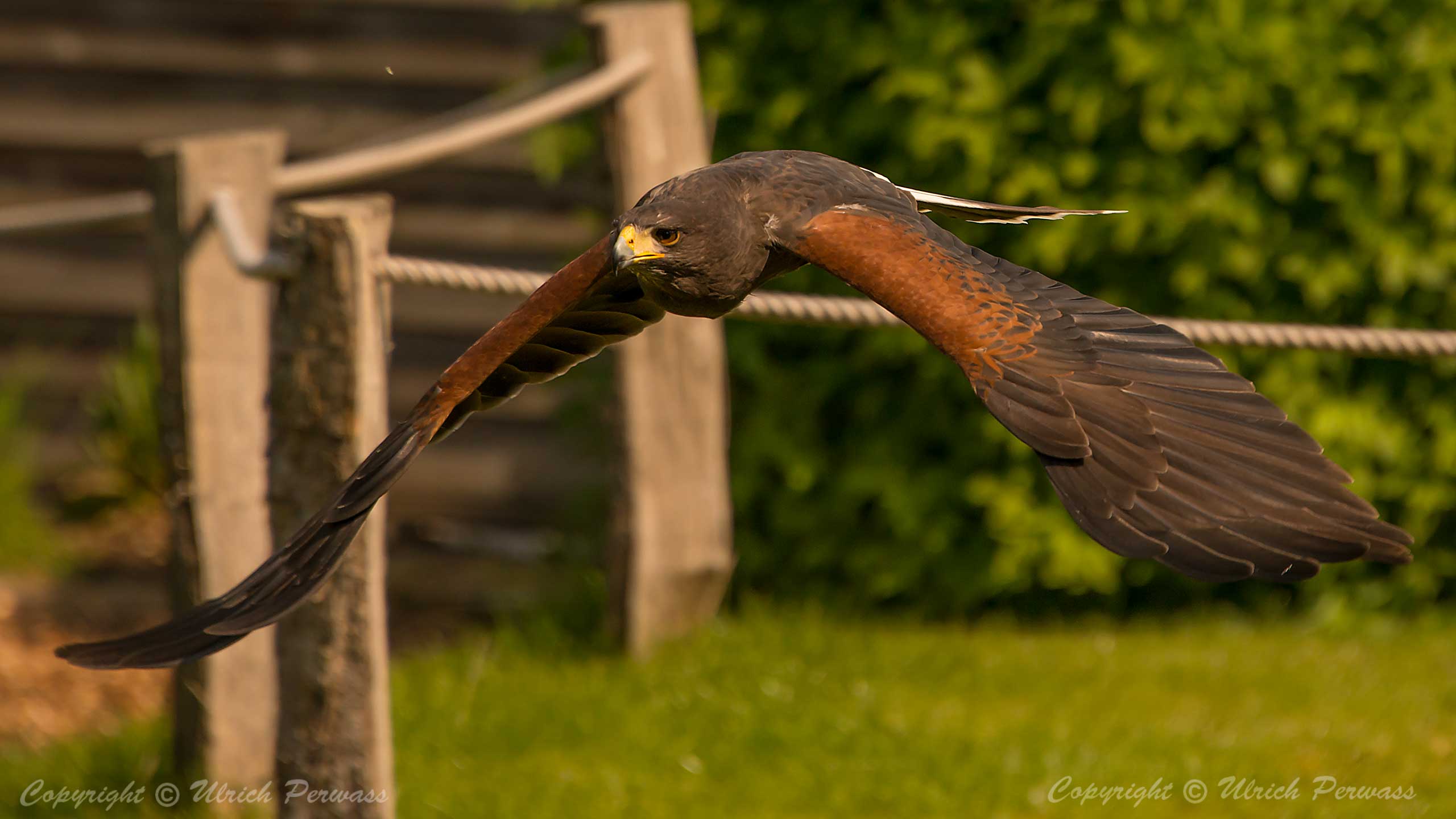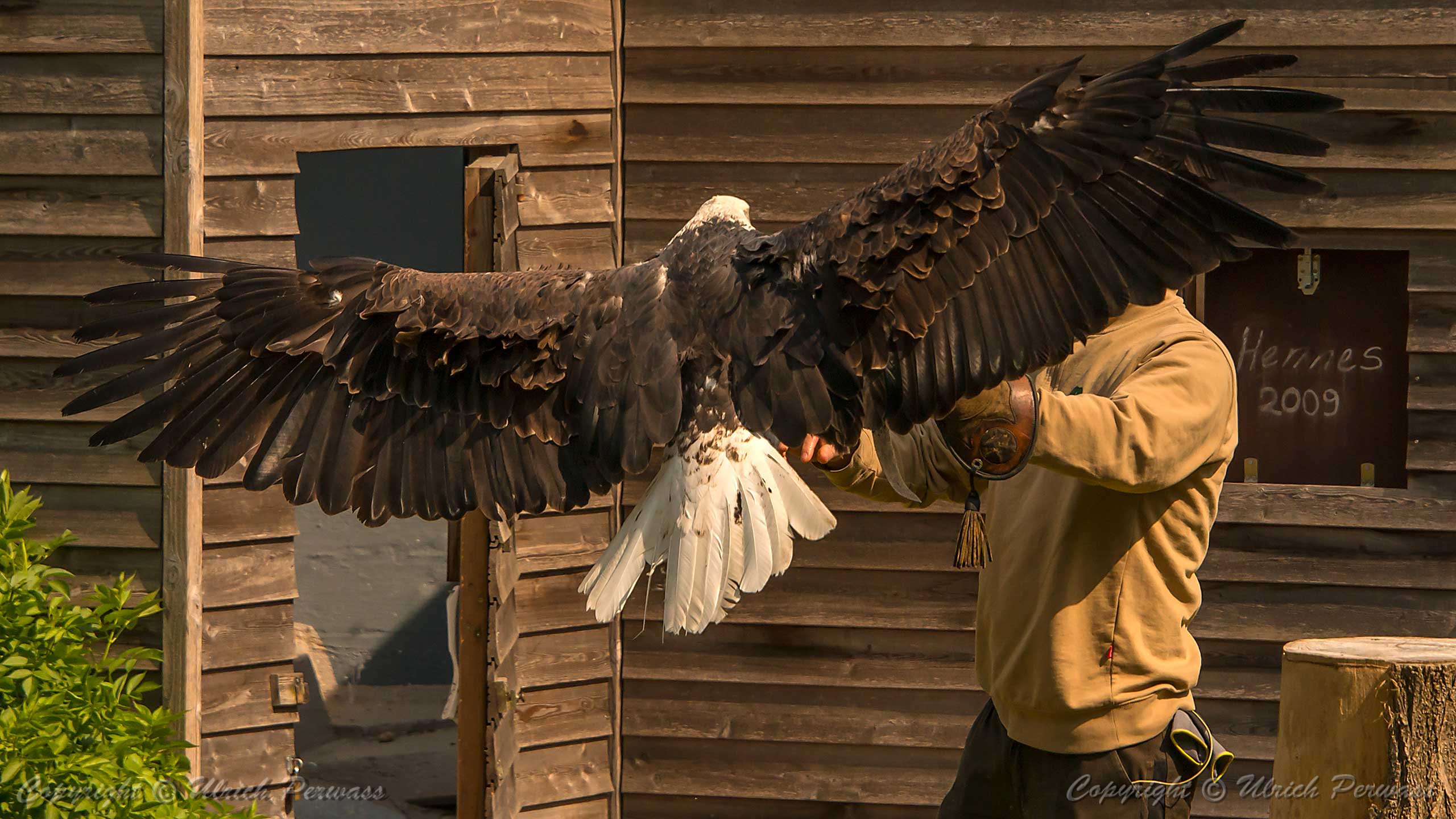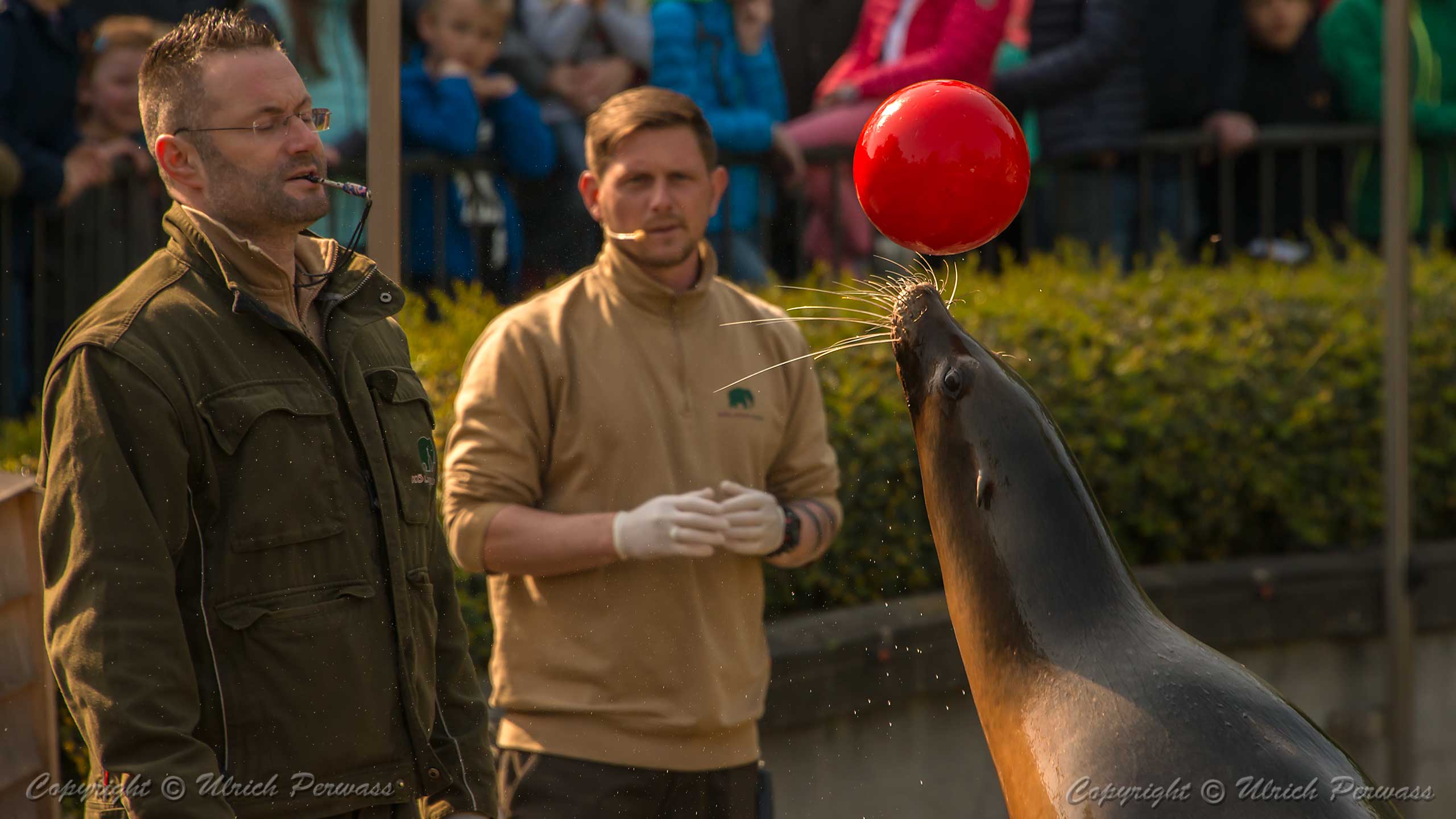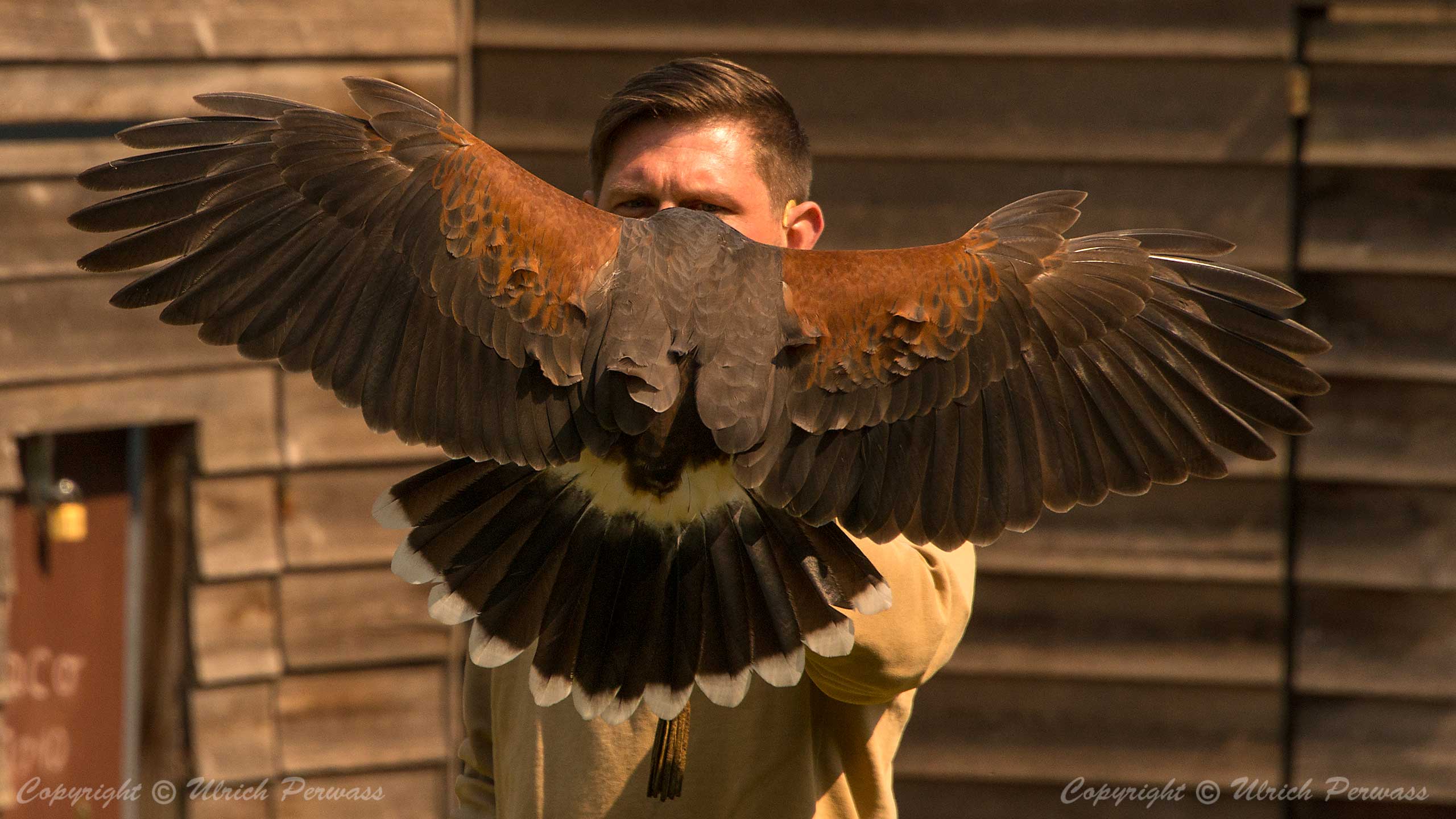 Flugschau im Kölner Zoo Wie jedes Jahr lockten mich die ersten warmen Sonnenstrahlen wieder hinaus in den Kölner Zoo, um den vielfältigen Nachwuchs zu bewundern und zu fotografieren. Hier vor allem Moma, den jungen Elefantenbullen, der am 20. März 2017 das Licht des Kölner Zoos erblickte. Seine Mutter Marla fotografierte ich bereits Anfang April 2006 direkt nach ihrer Geburt und stellte die Bilder damals ins Netz. Siehe dort in der Galerie 2006-02 "Frühling im Kölner Zoo 2006". Nun werden Sie mich sicher fragen, seit wann Elefantenbullen fliegen können und seien sie auch noch so jung. Was für eine Flugschau soll das denn sein, die hier so groß angekündigt wird? Ein Looping, ein Turn oder ein Kavaliersstart direkt über dem Elefantengehege im Jumbo-Look? Nein, nein, natürlich nicht! Doch auf dem Wege dorthin entdeckte ich das Werbeplakat für die Greifvogelschau, die nach langer Winterpause endlich wieder täglich um 14.30 Uhr starten soll. Also nichts wie anderntags wieder in den Zoo und fotografieren! Über 1000 Bilder entstanden so, von denen einige (83) ich Ihnen hier zeigen will. Viel Spaß!