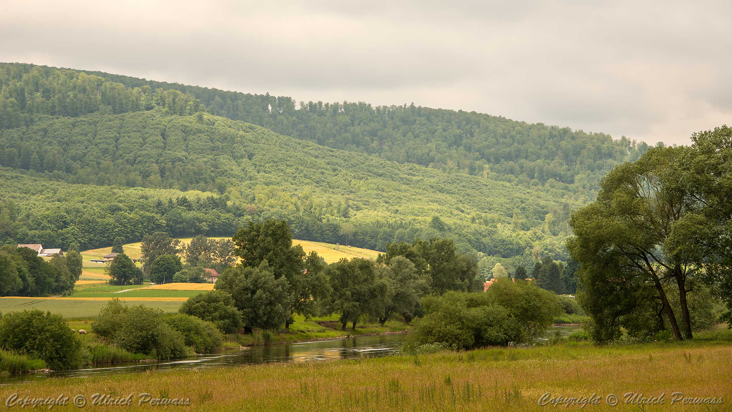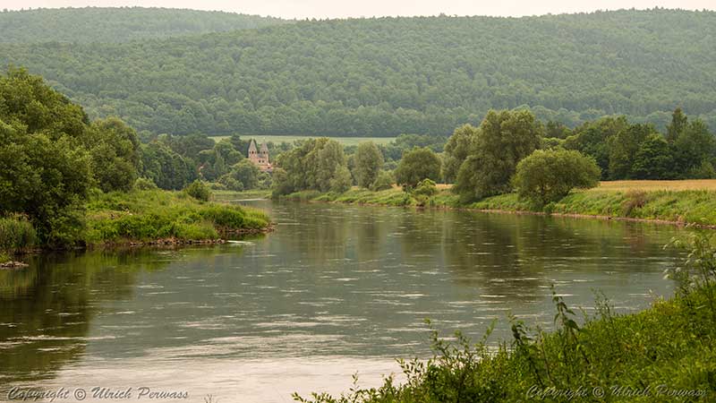 Blick über die Weser auf den Reinhardswald