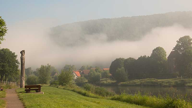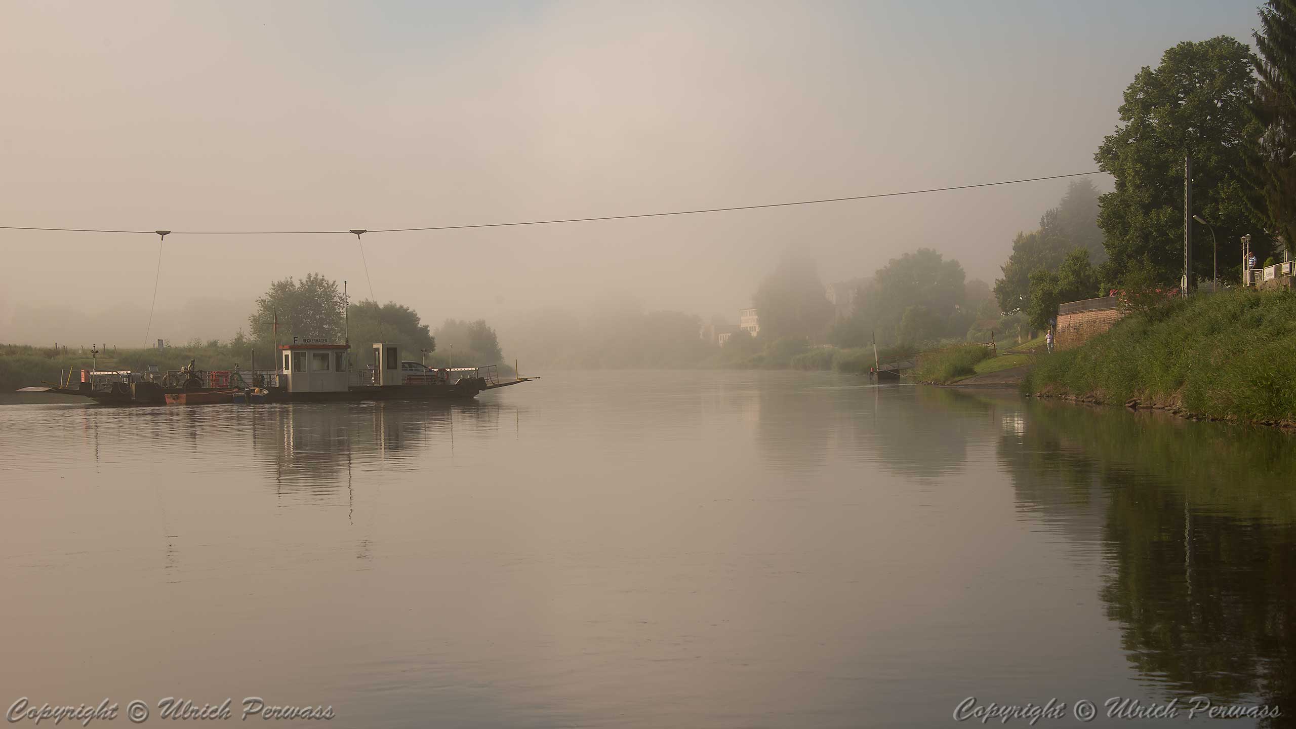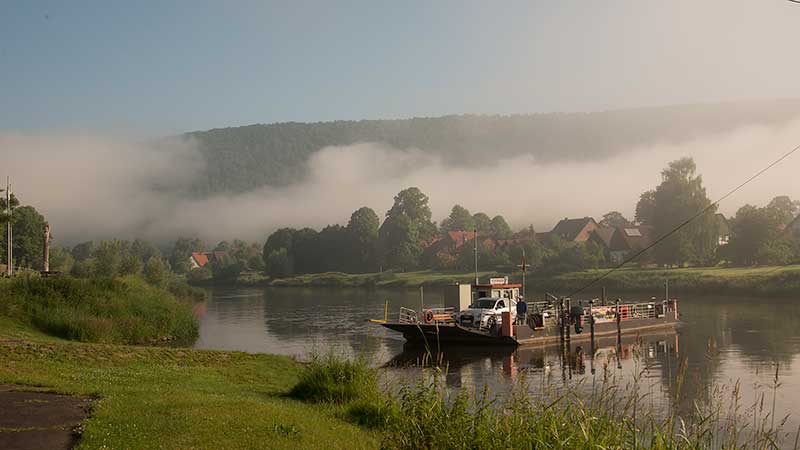 Gierfähre Hemeln/Reinhardsberg im Morgendunst