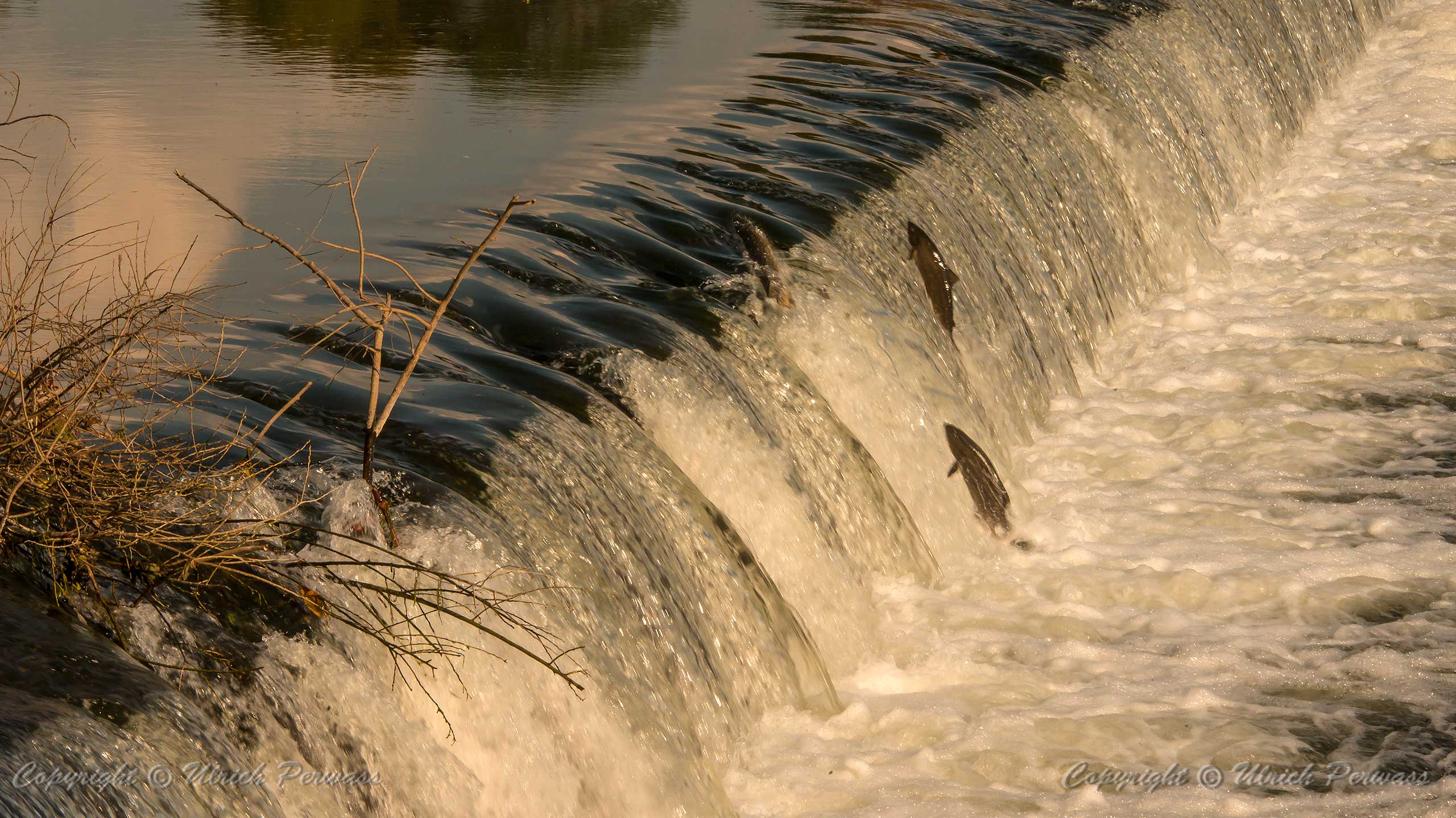 Rad- und Lachswanderung an der Sieg Auf meiner Radtour am 27. September 2017 konnte ich die Lachse beim Überwinden des Wehrs bei Buisdorf in der Sieg beobachten. Für solch eine Aufnahme ist allerdings sehr viel Geduld erforderlich, da zur Zeit nur vereinzelte Lachse unterwegs sind. Bis Ende November soll die Wanderung der Fische zu ihren angestammten Laichplätzen in der Bröhl und in der Sieg noch zu beobachten sein. Viel Erfolg und viel, viel Geduld!