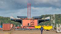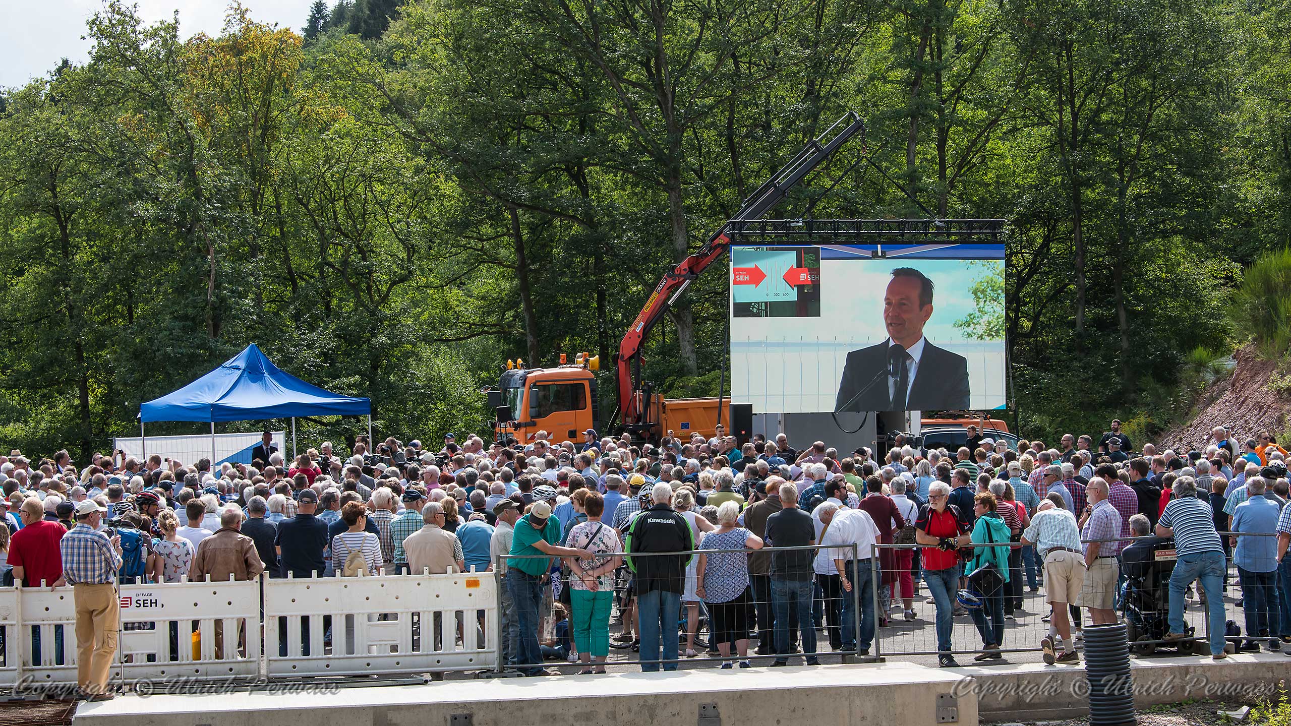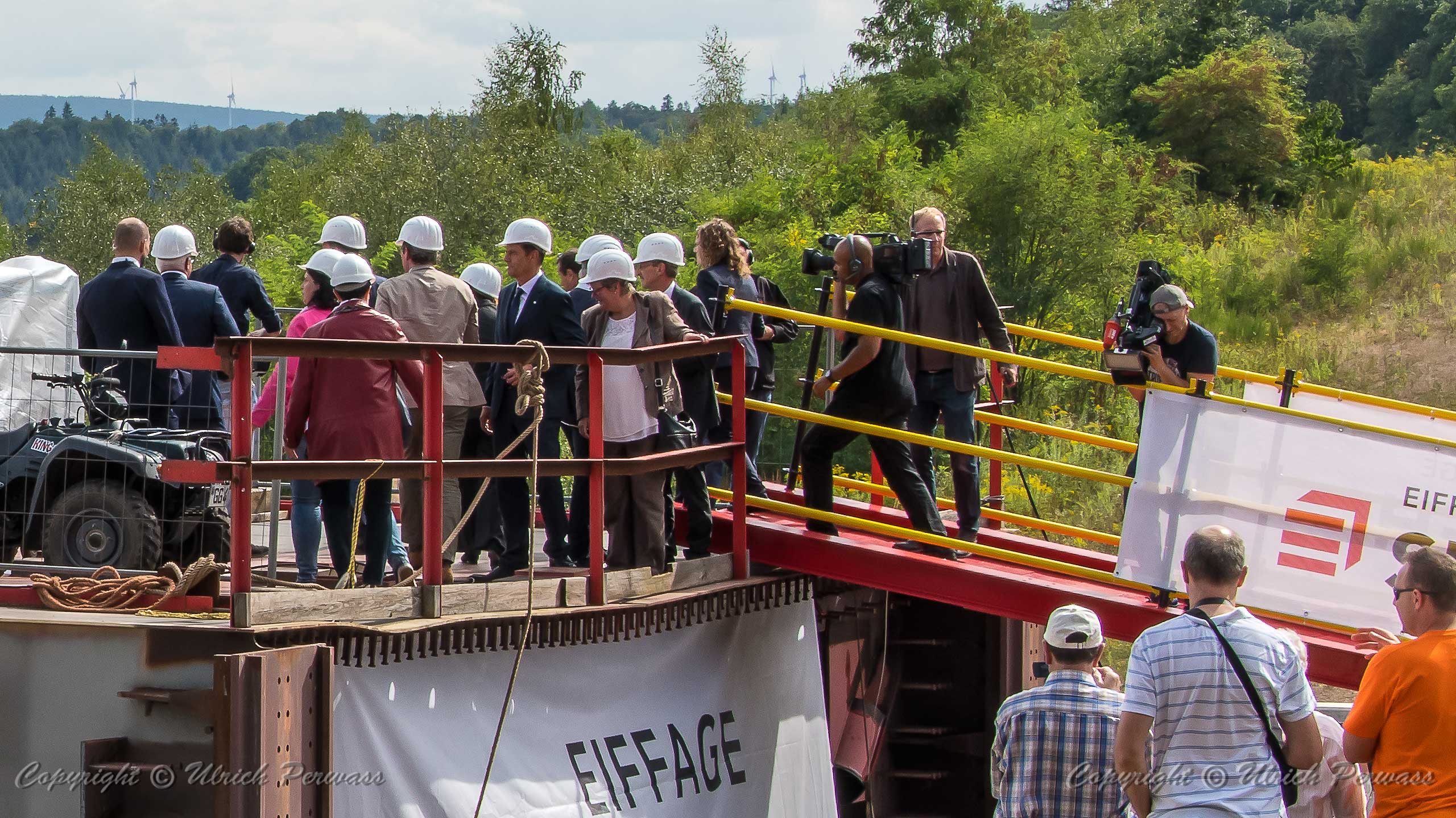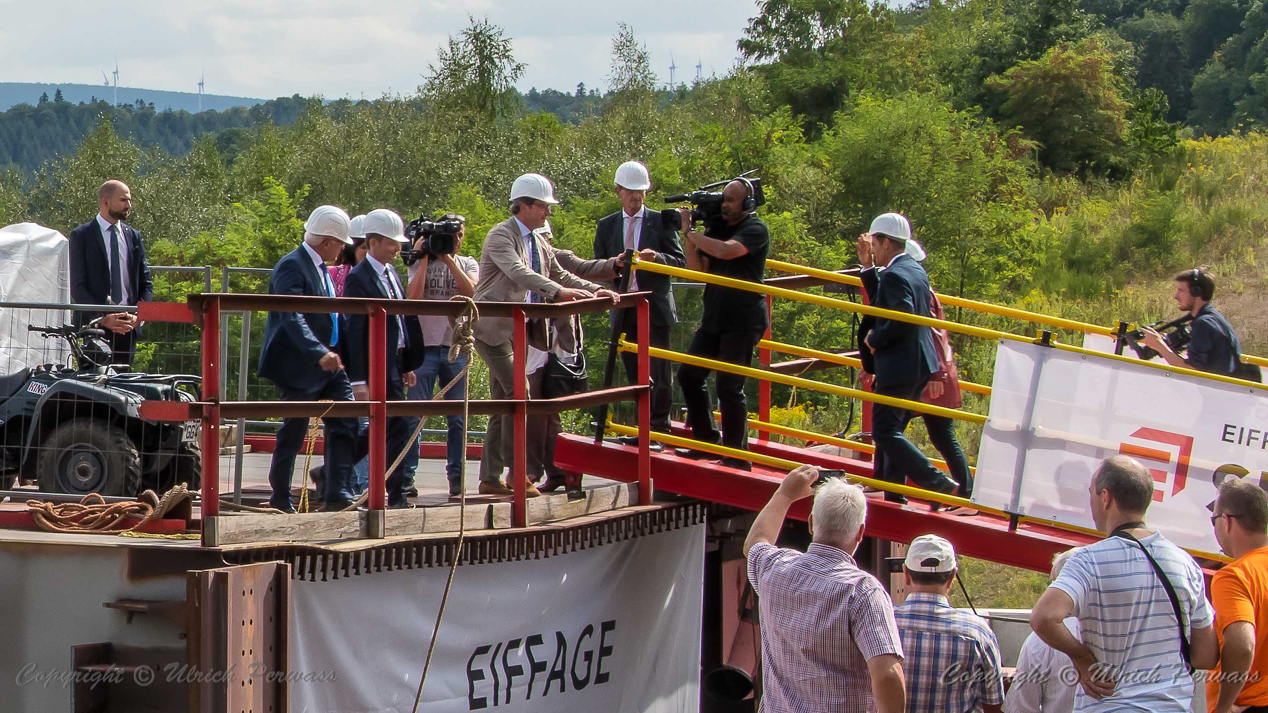 Honoratioren feiern den finalen Vorschub Geschäftsführer LBM: Dipl.-Ing. Arno Traube Landesverkehrsminister Rheinland-Pfalz: Dr. Volker Wissing (FDP) Bundesverkehrsminister: Andreas Scheuer (CSU) |