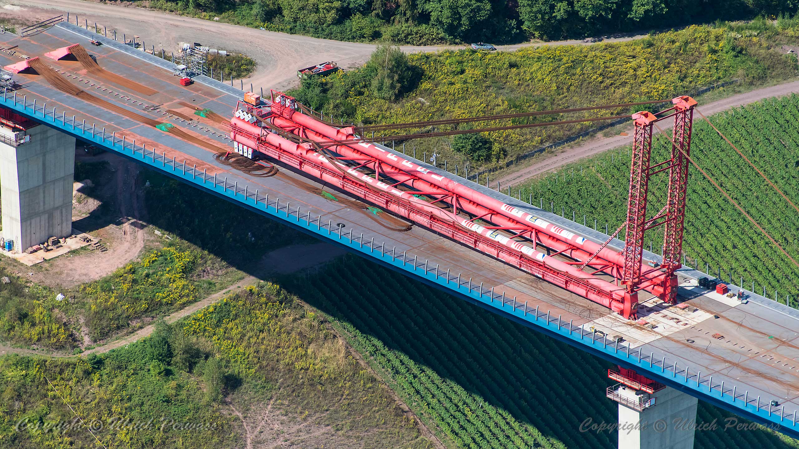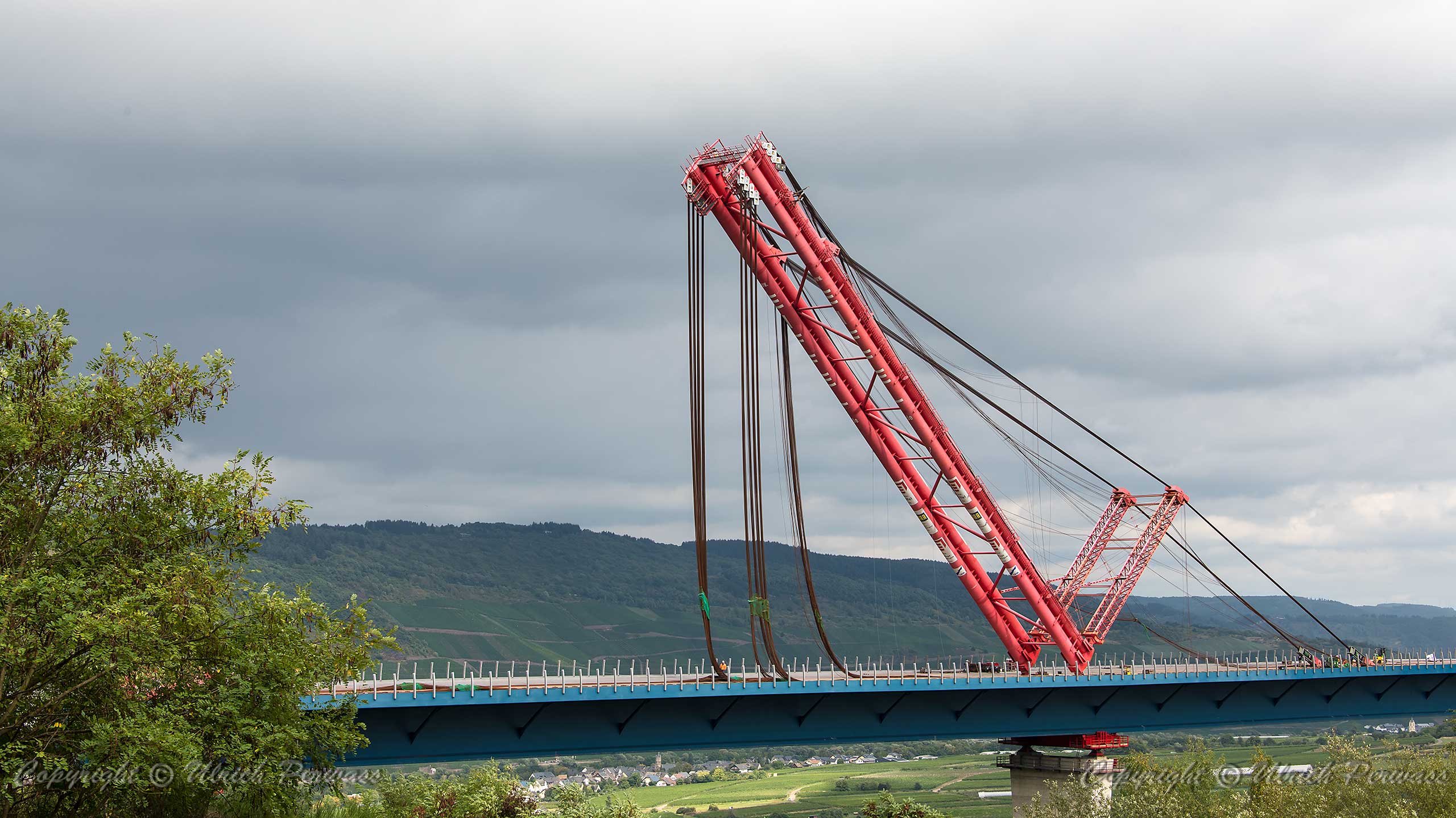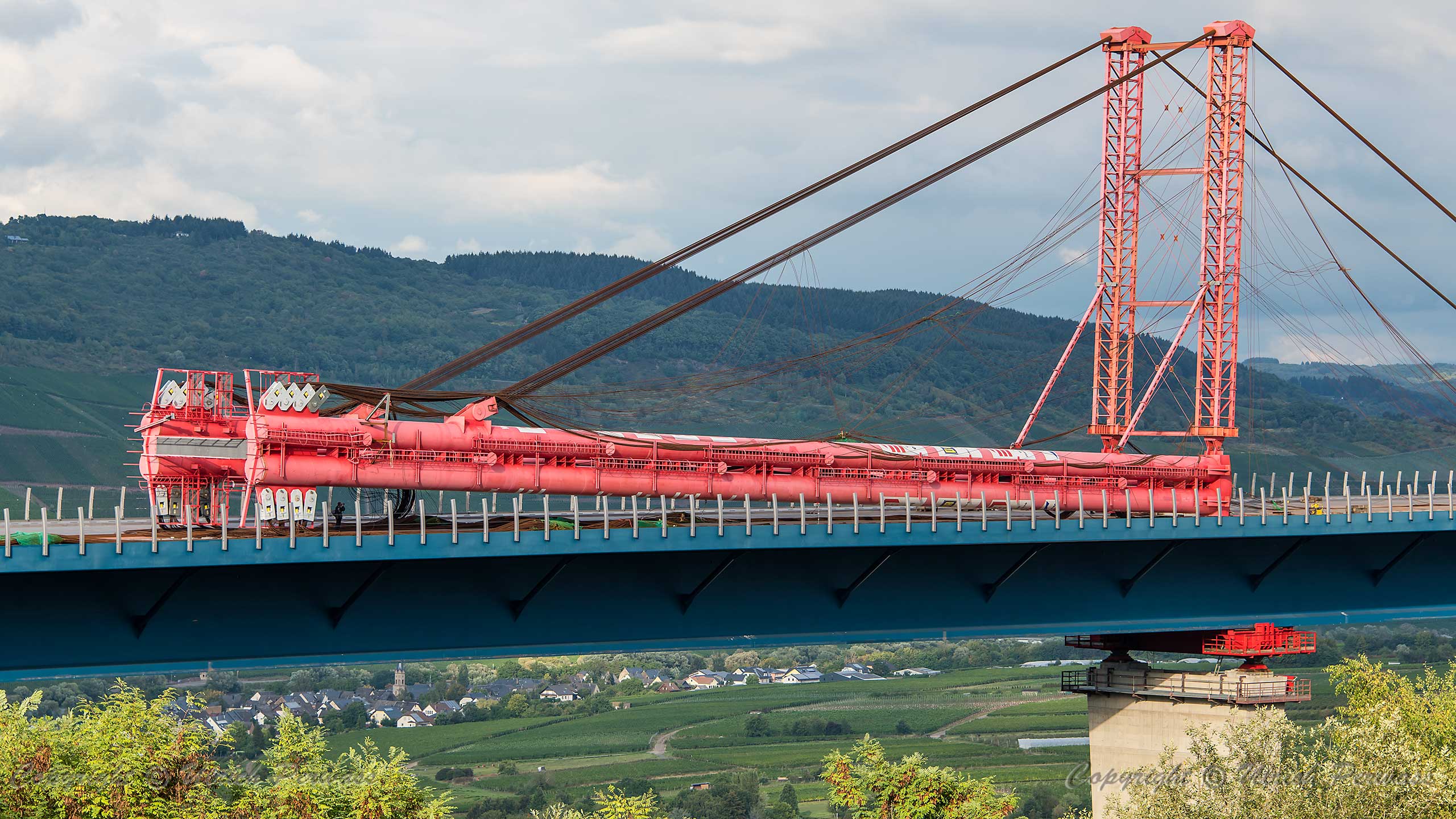Hochmoselbrücke Finale des Vorschubs: Demontage des Pylons Die Demontage des Pylons der Hochmoselbrücke am 6. und 7. September reizte mich mal wieder an die Mosel. Aufnahmen vor Ort und aus der Luft war mein Programm. Herzlichen Dank an die Motorflugfreunde des Flugplatzes Daun-Senheld!