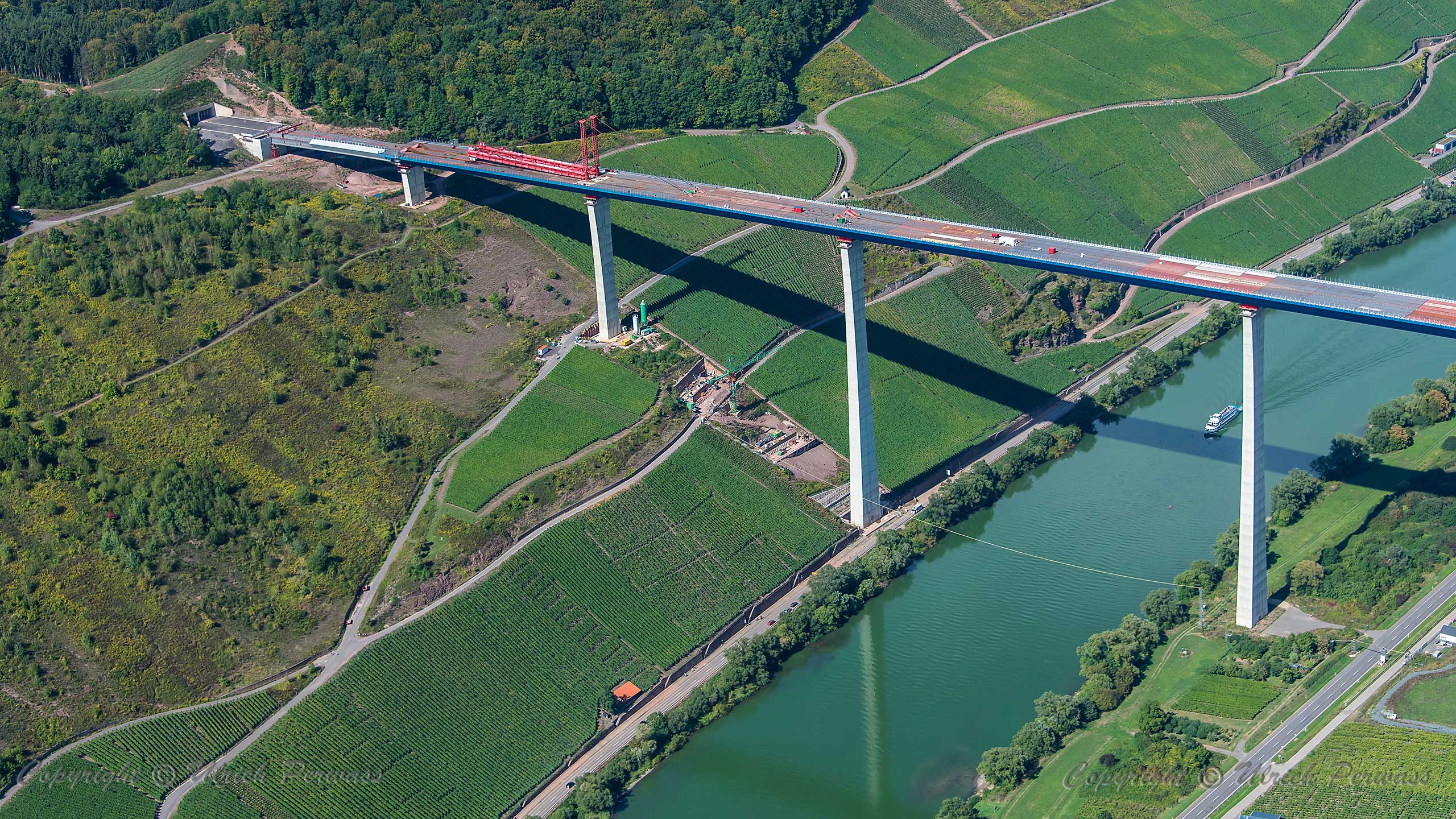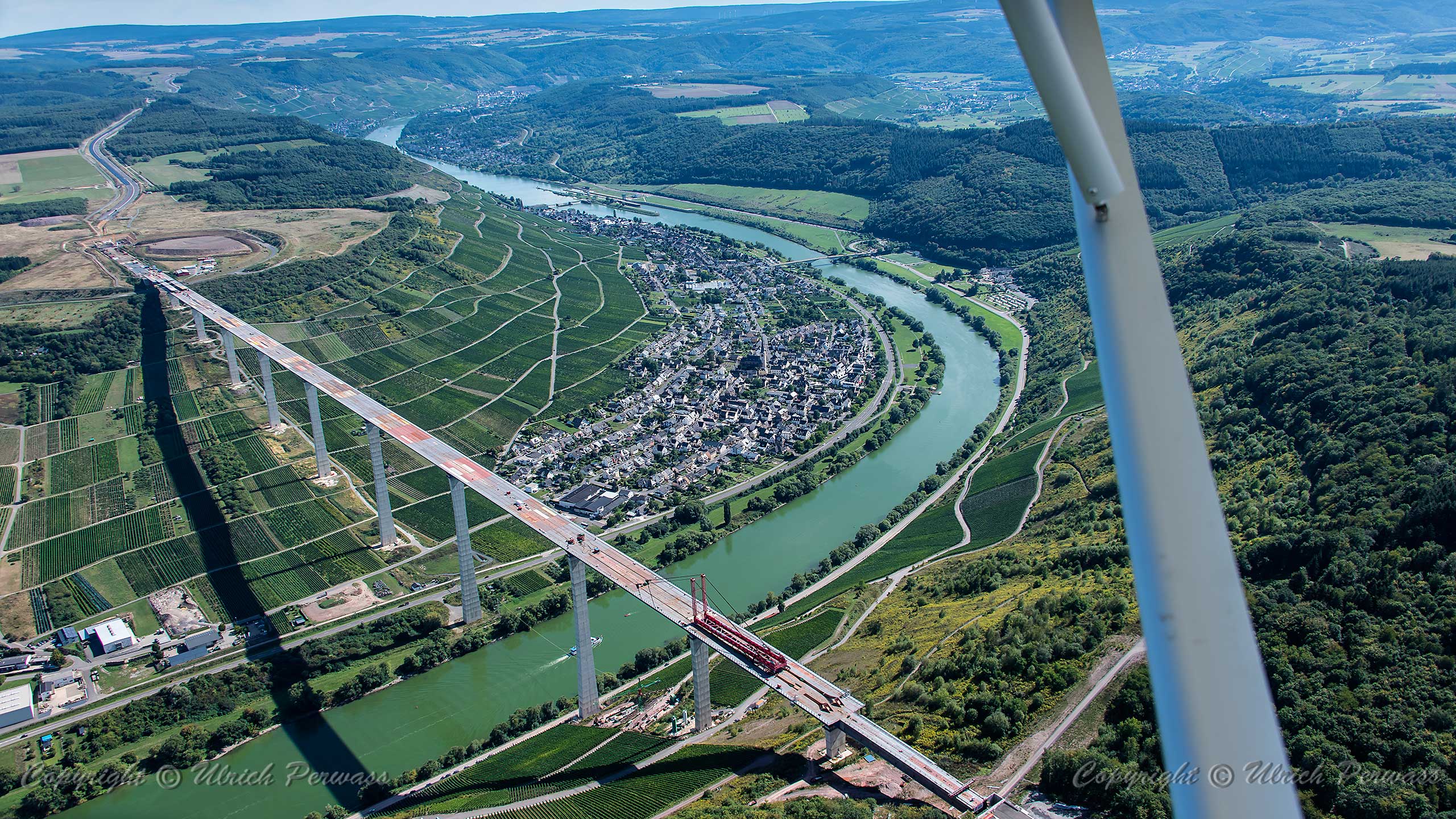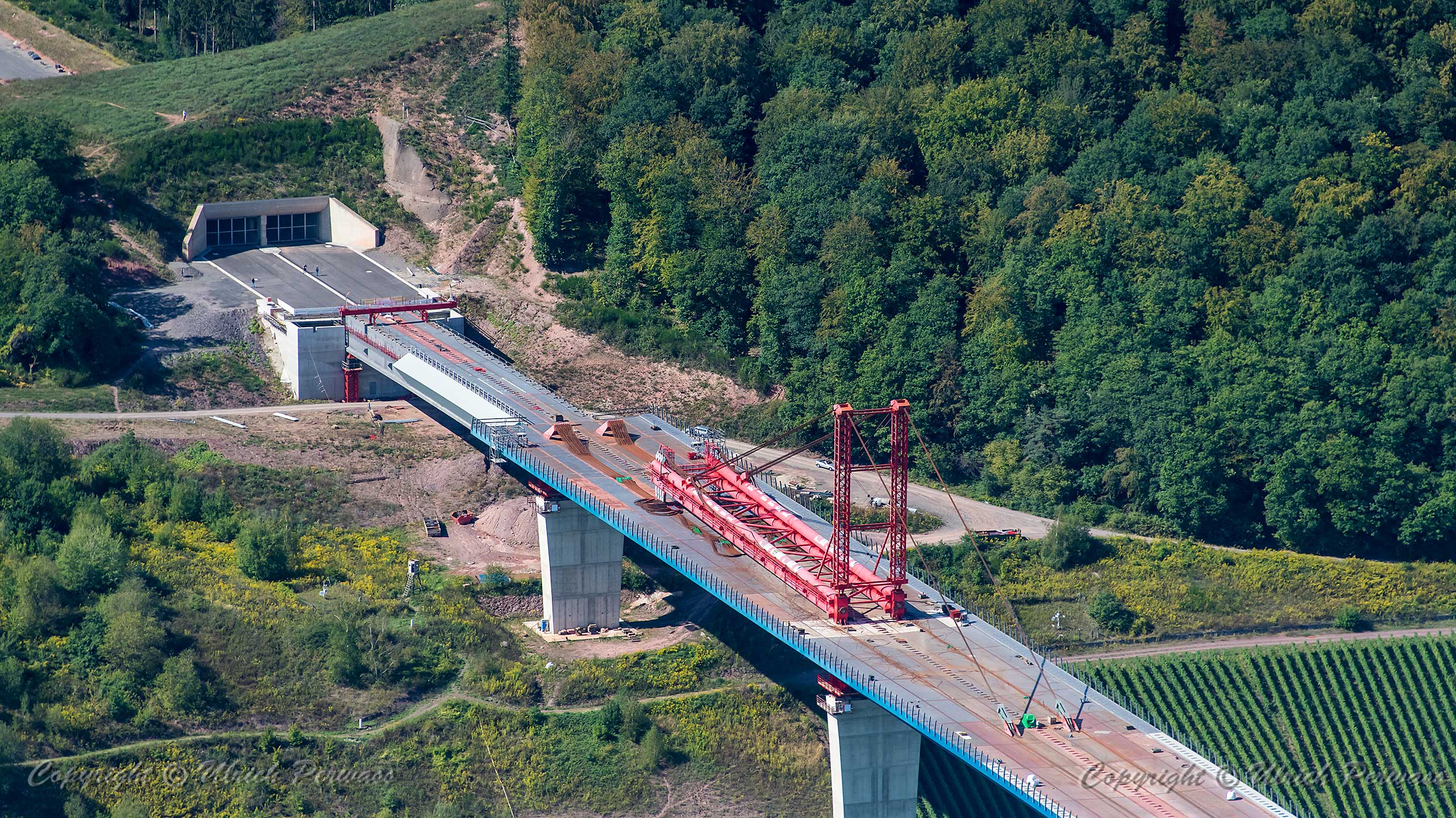 Hochmoselbrücke Finale des Vorschubs: Demontage des Pylons Die Demontage des Pylons der Hochmoselbrücke am 6. und 7. September reizte mich mal wieder an die Mosel. Aufnahmen vor Ort und aus der Luft war mein Programm. Herzlichen Dank an die Motorflugfreunde des Flugplatzes Daun-Senheld!