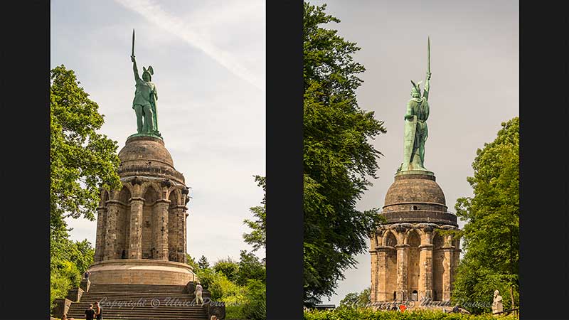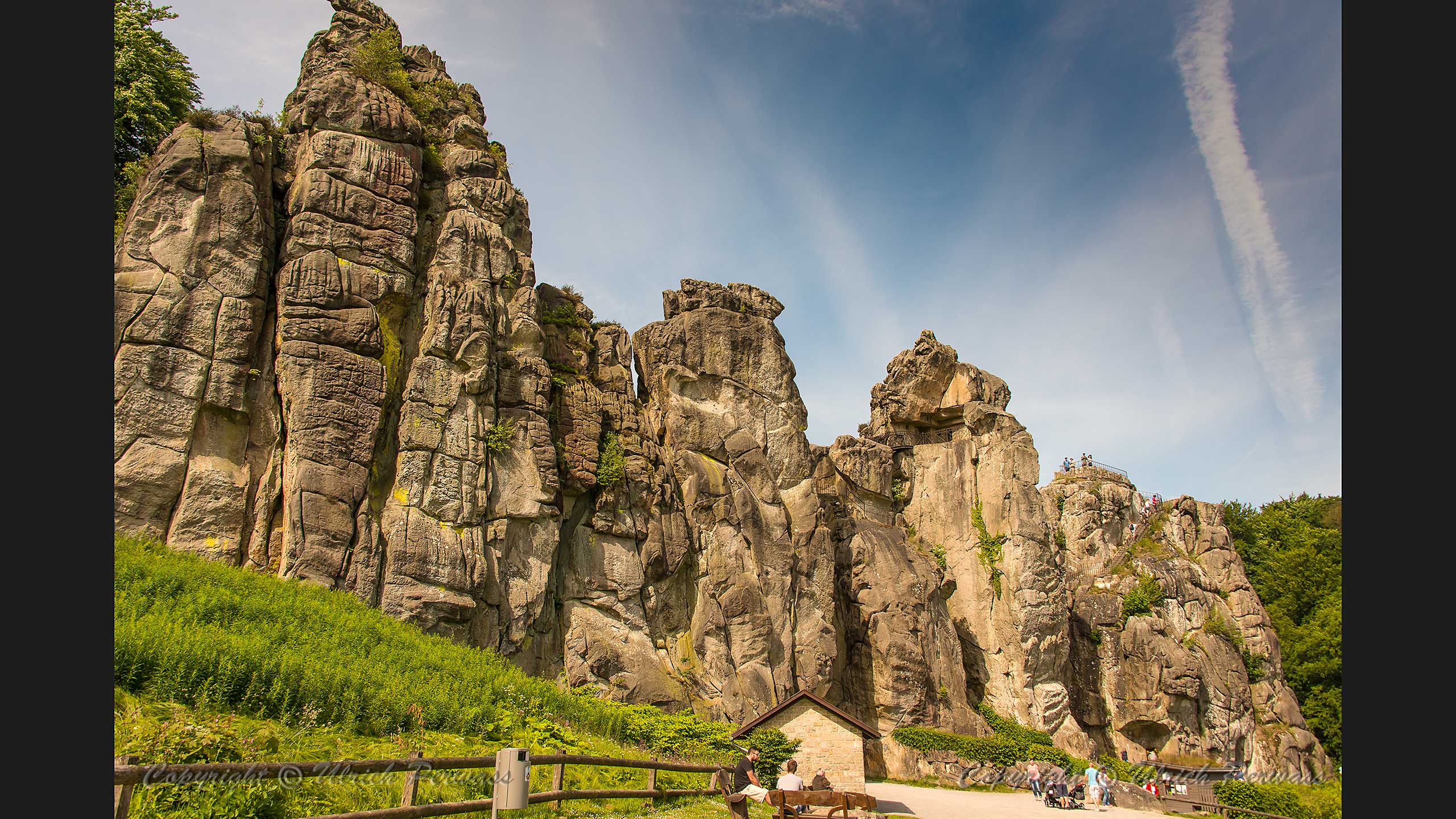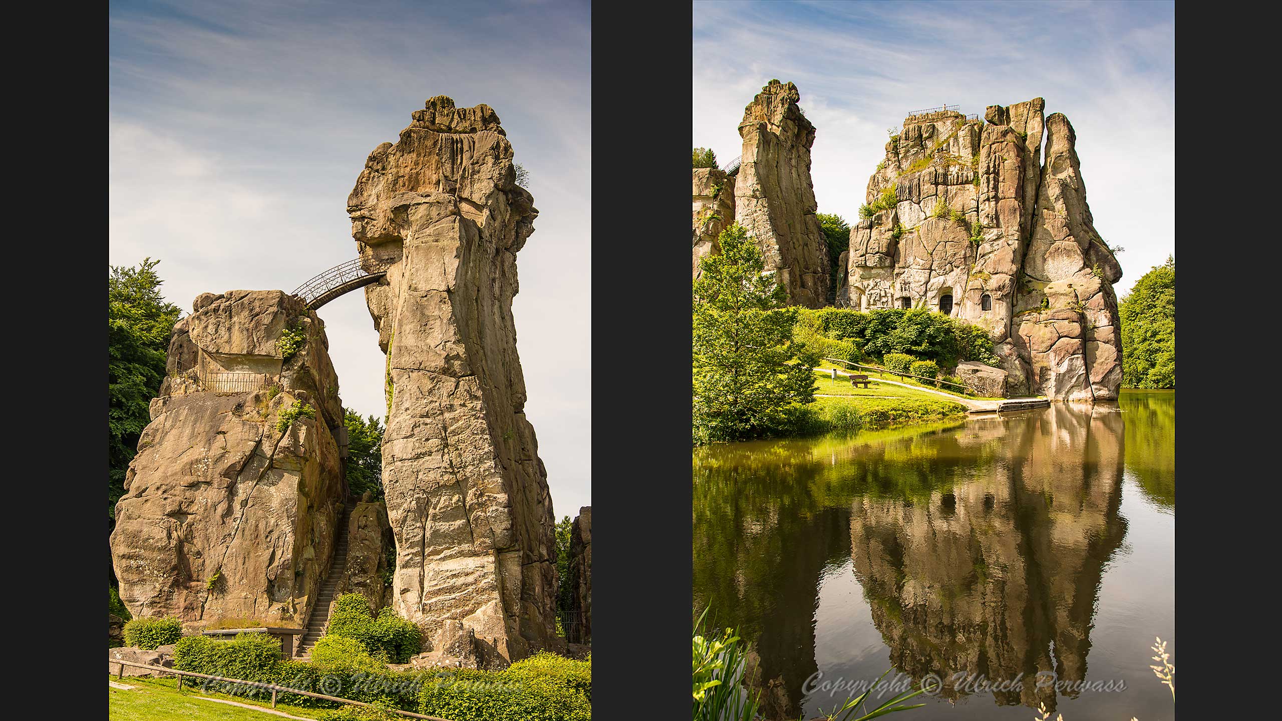Weiter unten dann einige Einzelbilder der Externsteine und des Hermannsdenkmals bei Detmold im Vollformat .