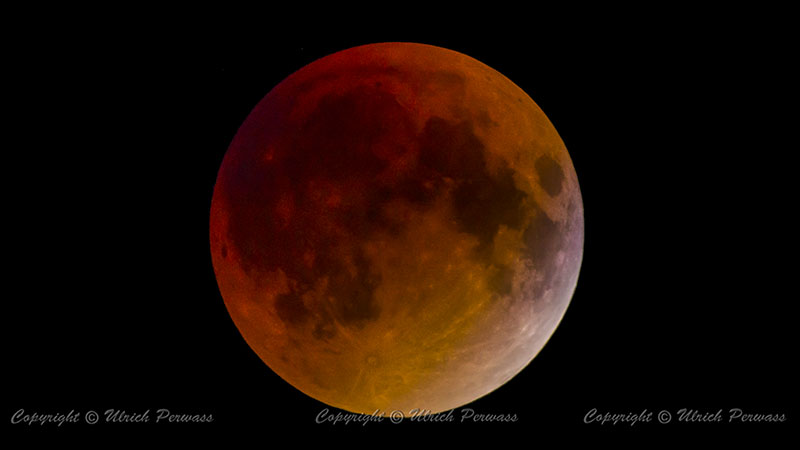Der Erdschatten entweicht nach rechts unten. Im Erdschatten wirkt der Mond erstaunlich klein! |
