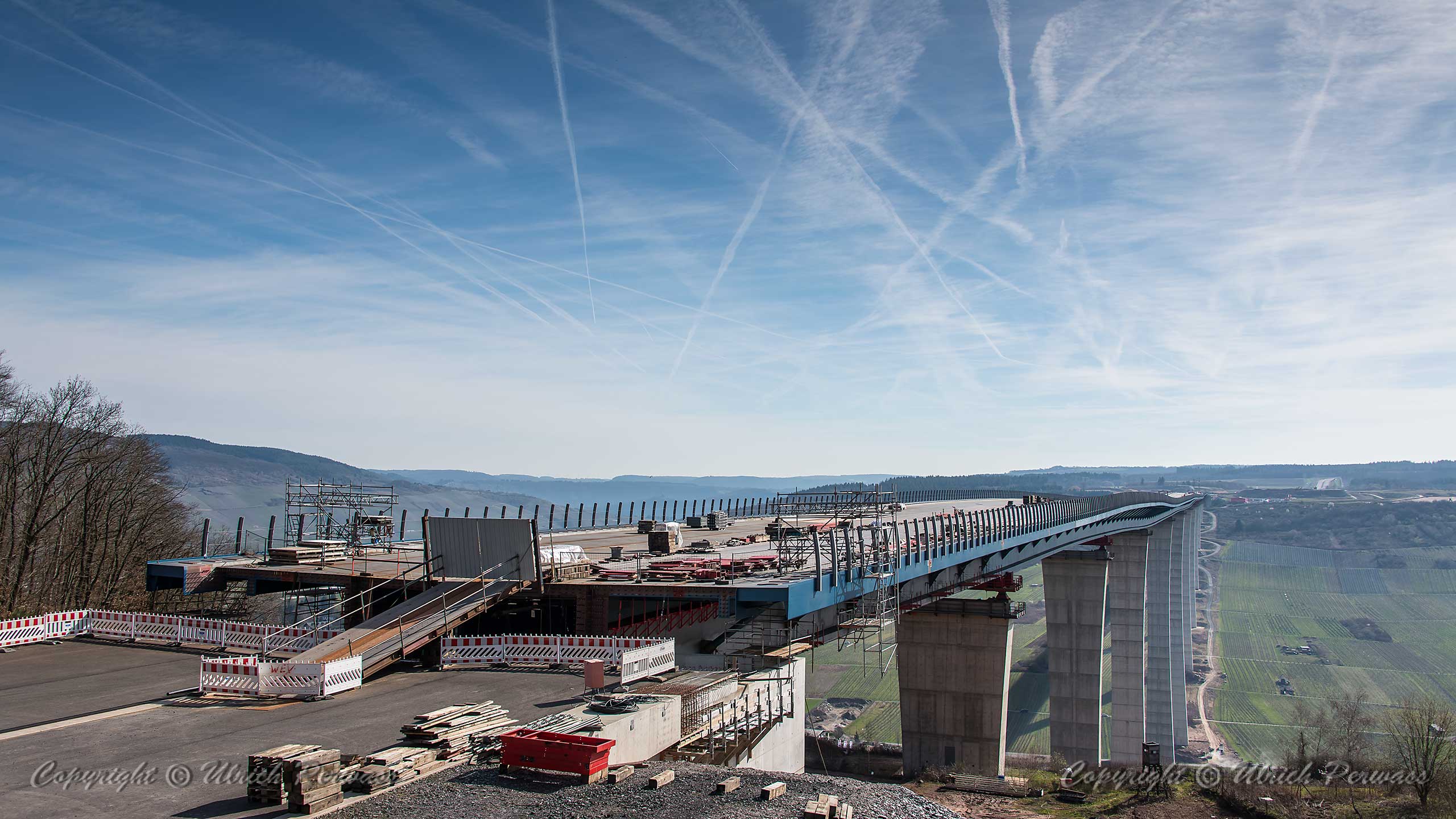 Ausbau des Vorschubbalkens der Hochmoselbrücke auf dem Pfeiler 8 am 22. März 2019