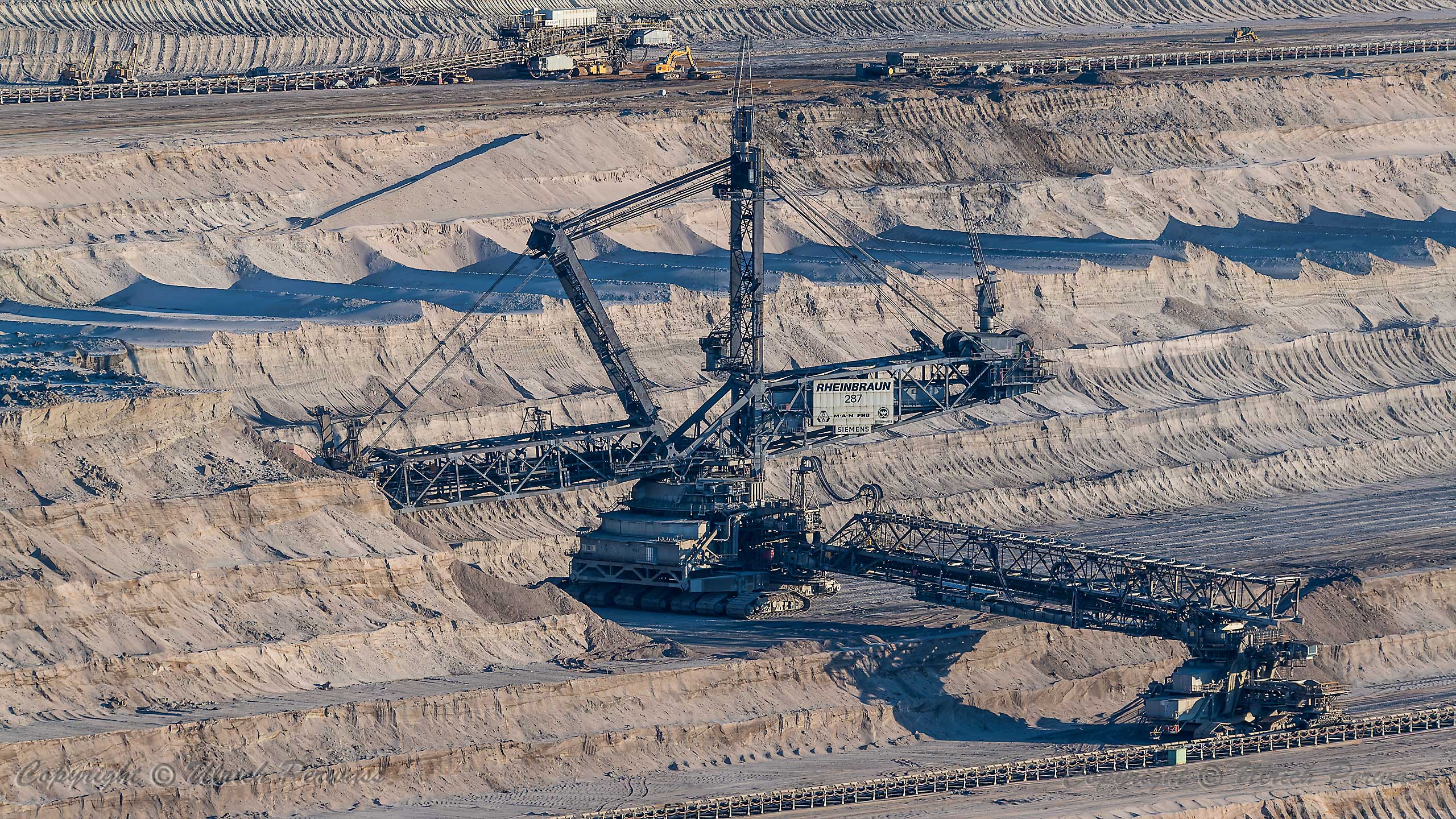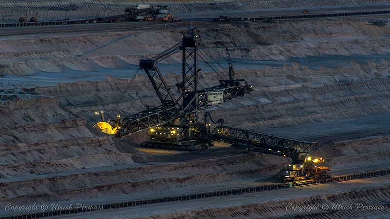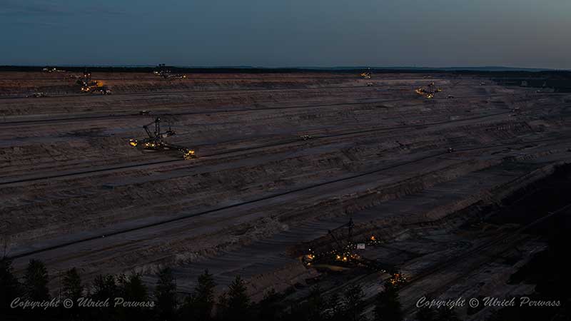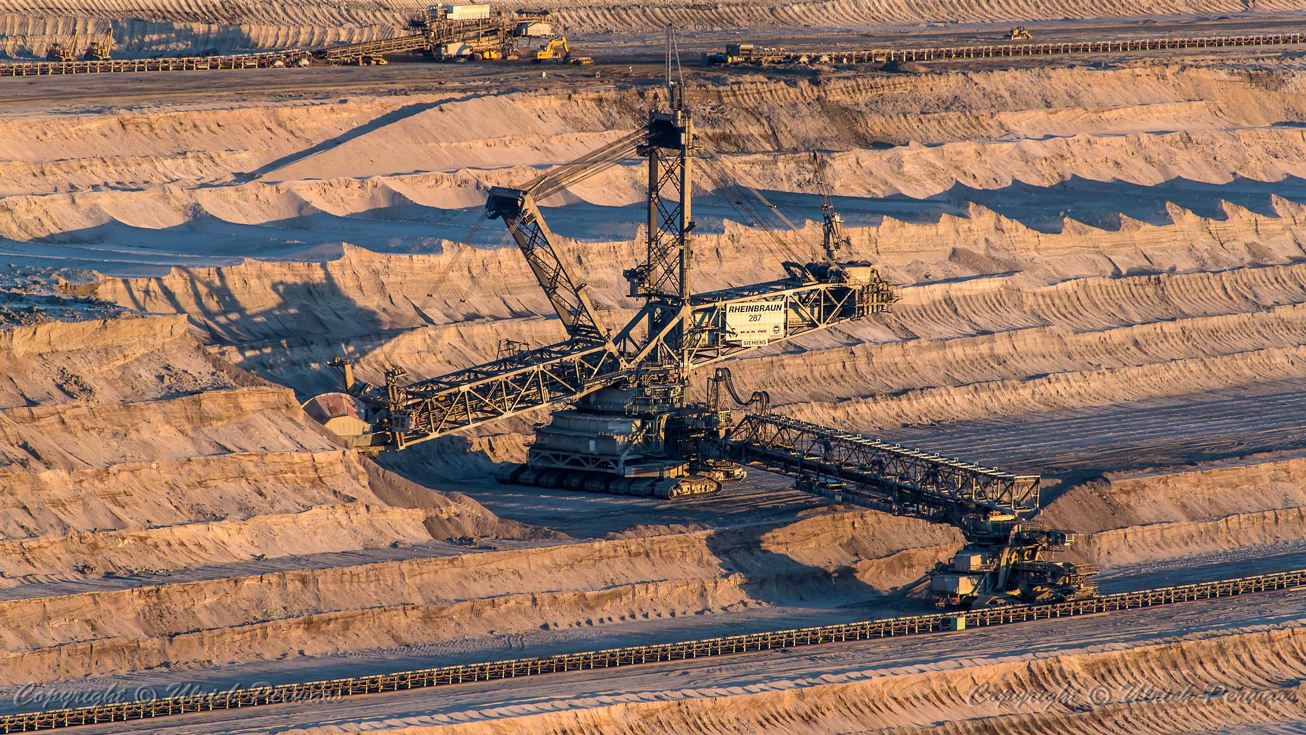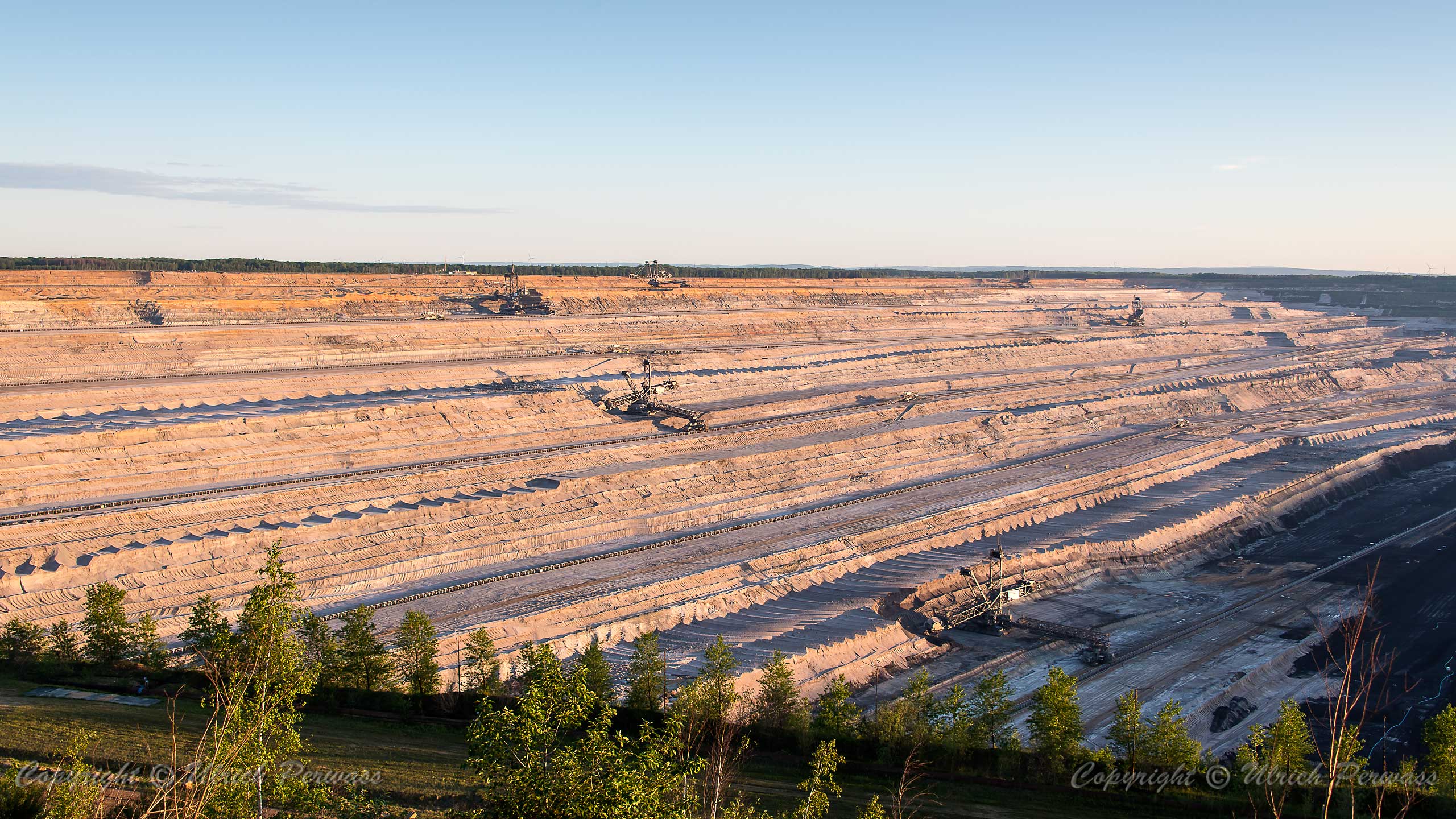 Tagebau Hambach Am 15. Mai 2019 zog es mich mal wieder zum Tagebau Hambach, um bei wolkenlosem Himmel den freigelegten Kohleflöz in der Abendsonne zu fotografieren. Die riesigen Bagger taten unaufhörlich ihre Arbeit und doch hatte ich den Eindruck, dass kleine Schäufelchen einen unermesslich großen Sandhaufen bewegen wollten, um an das im Erdreich verborgene braune Gold zu gelangen. Welch eine organisatorische und technische Meisterleistung steckt dahinter! Alle Achtung! Bis fast 22 Uhr fotografierte ich vom Aussichtspunkt Terra Nova, gut beobachtet vom Werksschutz, der das spätabendliche Vergnügen eines Amateurfotografen wohl etwas ungewöhnlich fand. So hatte ich doch auch noch gute Unterhaltung über beidseitige Urlaubsfreuden. Herzlichen Dank!