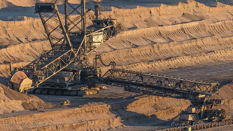 Tagebau Hambach Bagger 287 im Zeitraffer von 20:11 bis 20:30 Uhr Der Bagger 287 war über 2km entfernt, so dass brodelnde Luftschlieren die Aufnahmen sehr unruhig werden ließen. Bei der Bearbeitung habe ich versucht, wenigstens einen Punkt aller Bilder übereinander zu legen, um etwas mehr Ruhe in den Ablauf zu bringen.