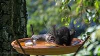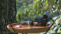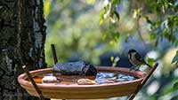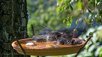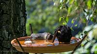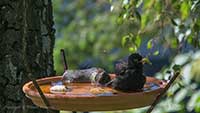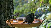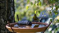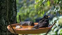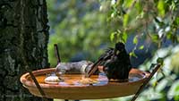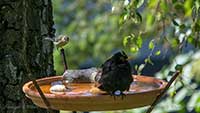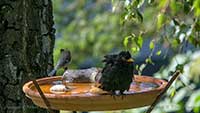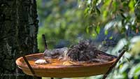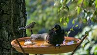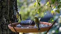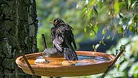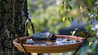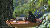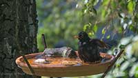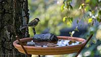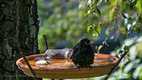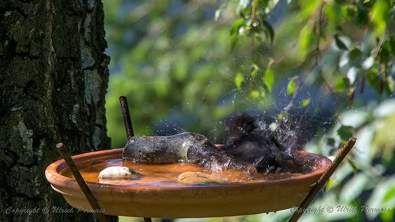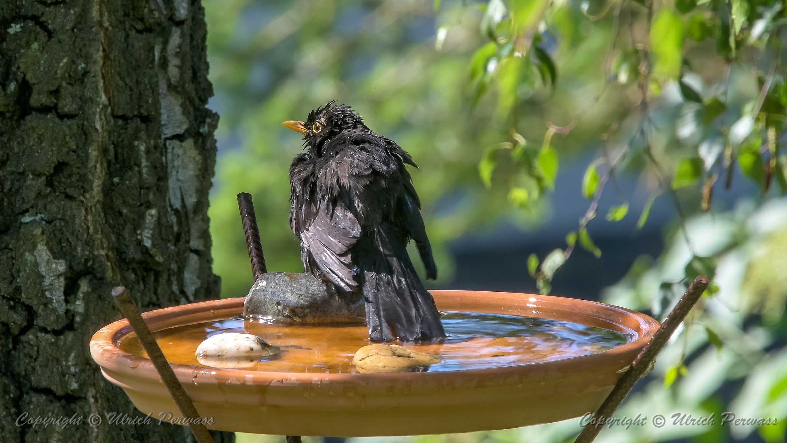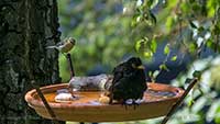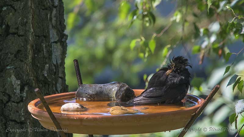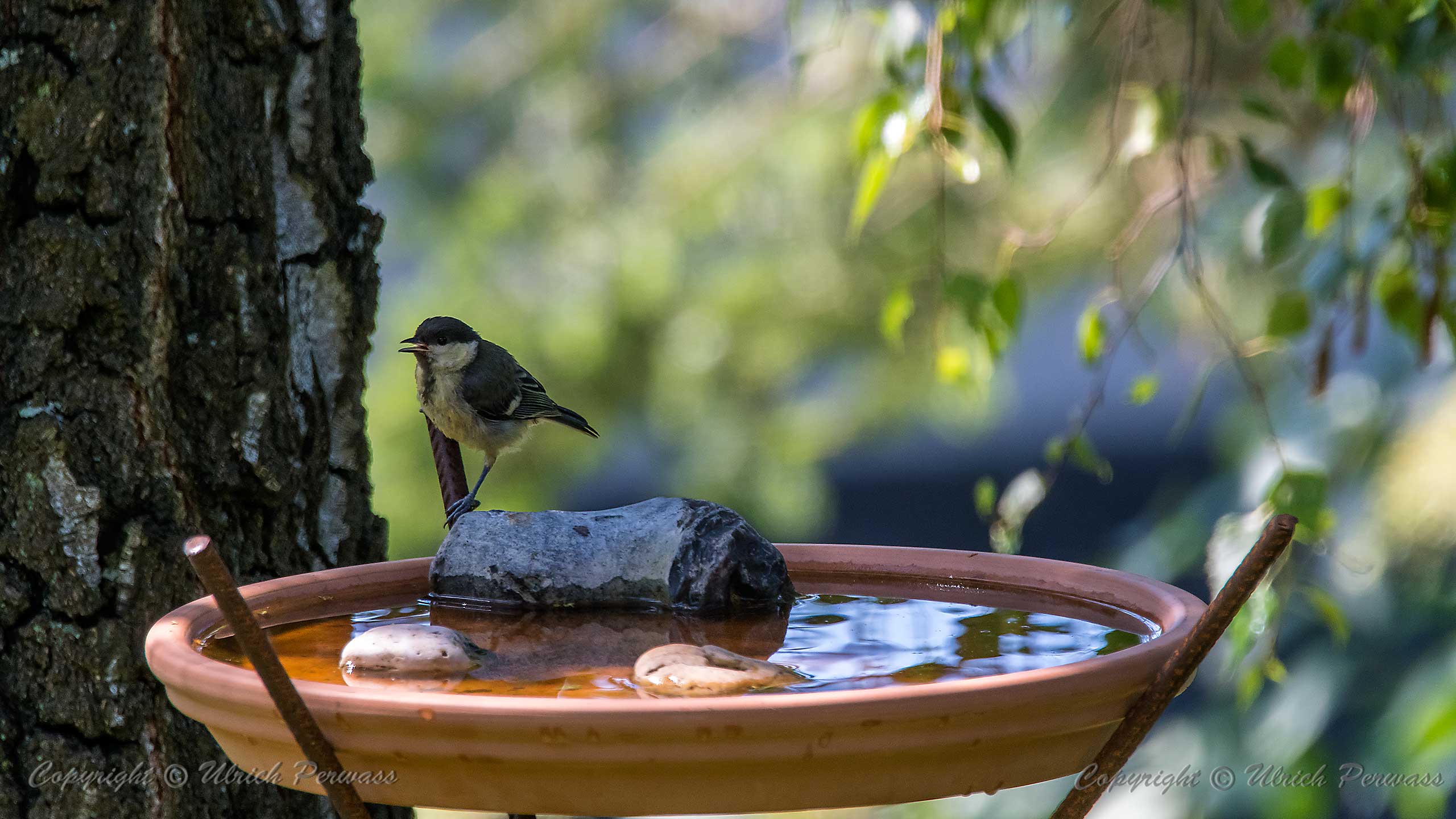 Vogeltränke Die alte Vogeltränke in unserem Garten ist inzwischen zugewachsen, so dass eine neue unumgänglich war. Diese musste aber gut einsehbar sein, um auch meiner Fotoleidenschaft zu entsprechen. Hier nun meine ersten Bilder aus etwa 20 Meter Entfernung mit dem SIGMA 150-600mm plus SIGMA Teleconverter 2x. |