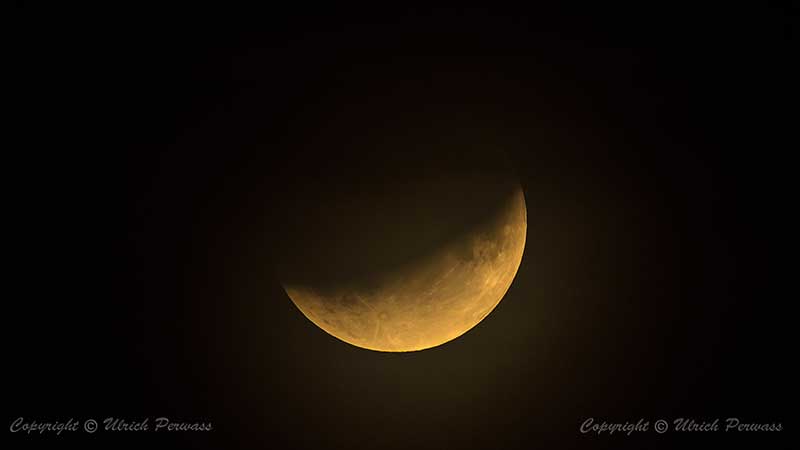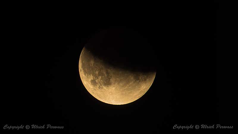 Partielle Mondfinsternis 16./17. Juli 2019 Hab ich gefroren von 22 Uhr bis 1 Uhr nachts! Aber immerhin, ich habe durchgehalten, auch wenn wechselnde Bewölkung, Nebelschleier, Dunst und atmosphärische Schlieren kein gutes Ergebnis erwarten ließen und das neben der Porsche-Vertretung oben in Moitzfeld! Trotzdem, hier geht's zum und anschließend sehen Sie 14 Bilder, aufgenommen ab 23:00 Uhr im Abstand von 10 Minuten.