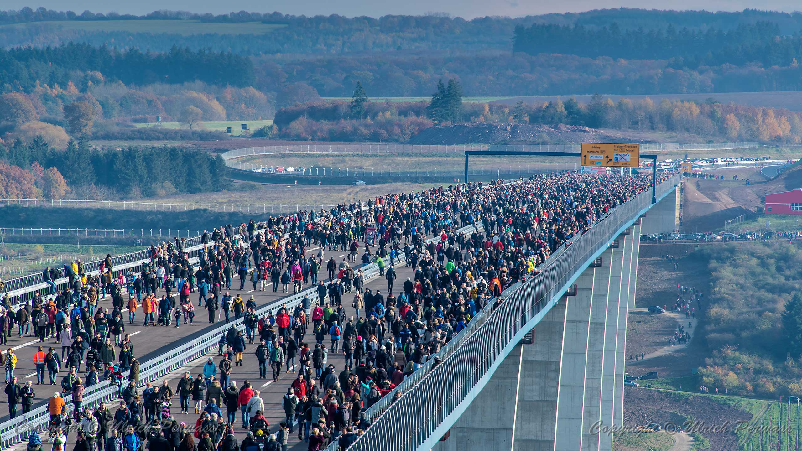 Endlich freier Blick beim Bürgerfest am 16.11.2019 auf der Hochmoselbrücke: Meine Brückenwanderung von 13:02 bis 13:35 Uhr 1,7 km hin und wieder zurück! Jetzt weiß ich wie lang 1,7 km sind! |