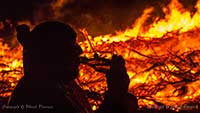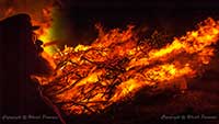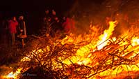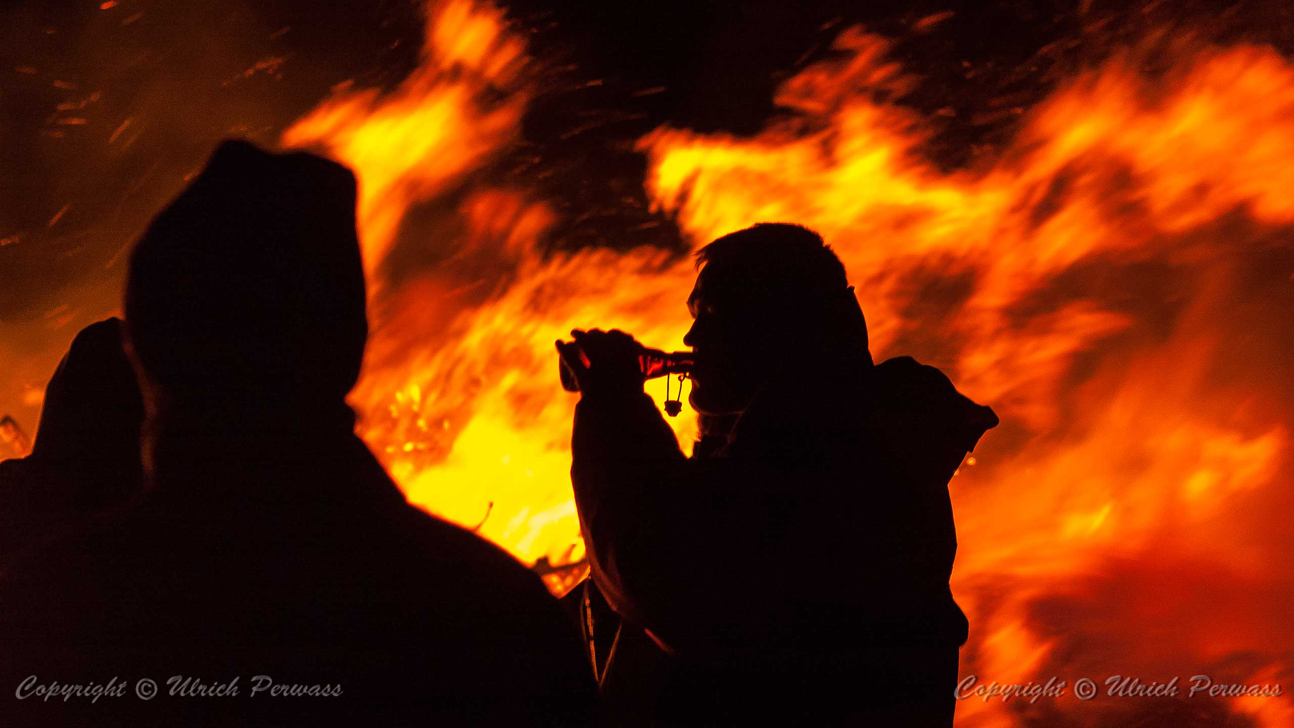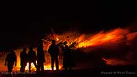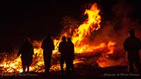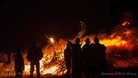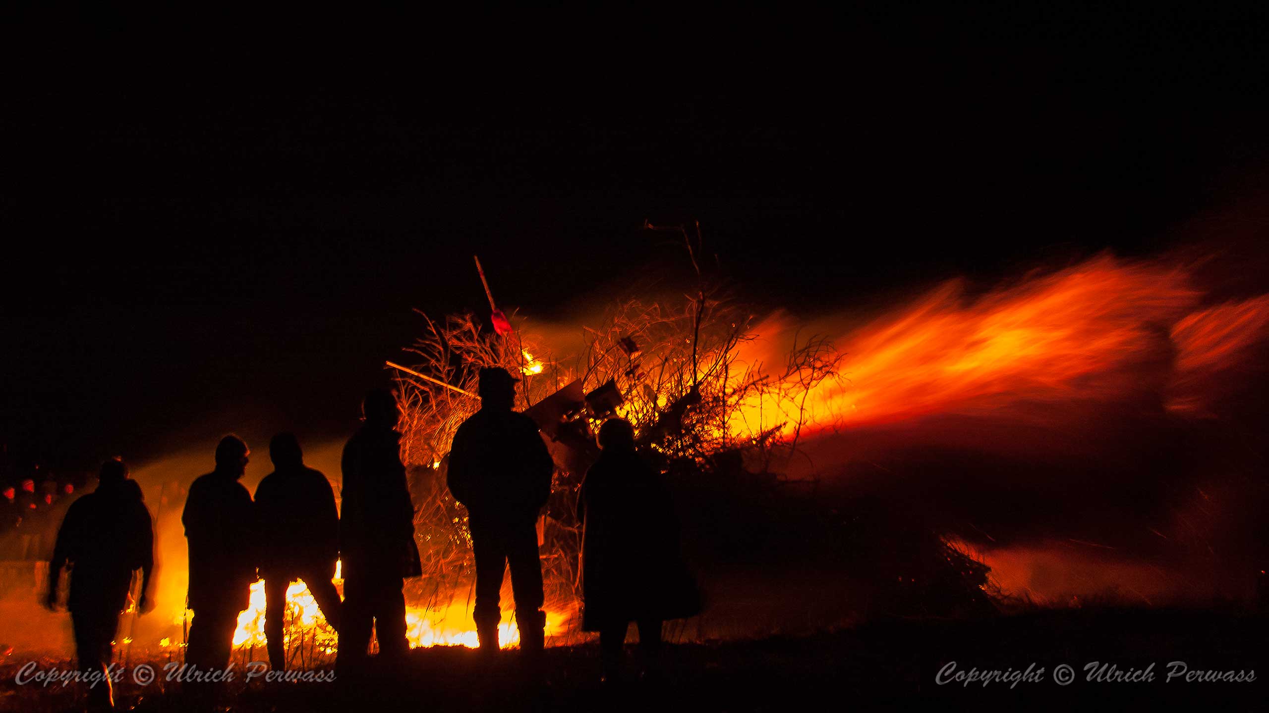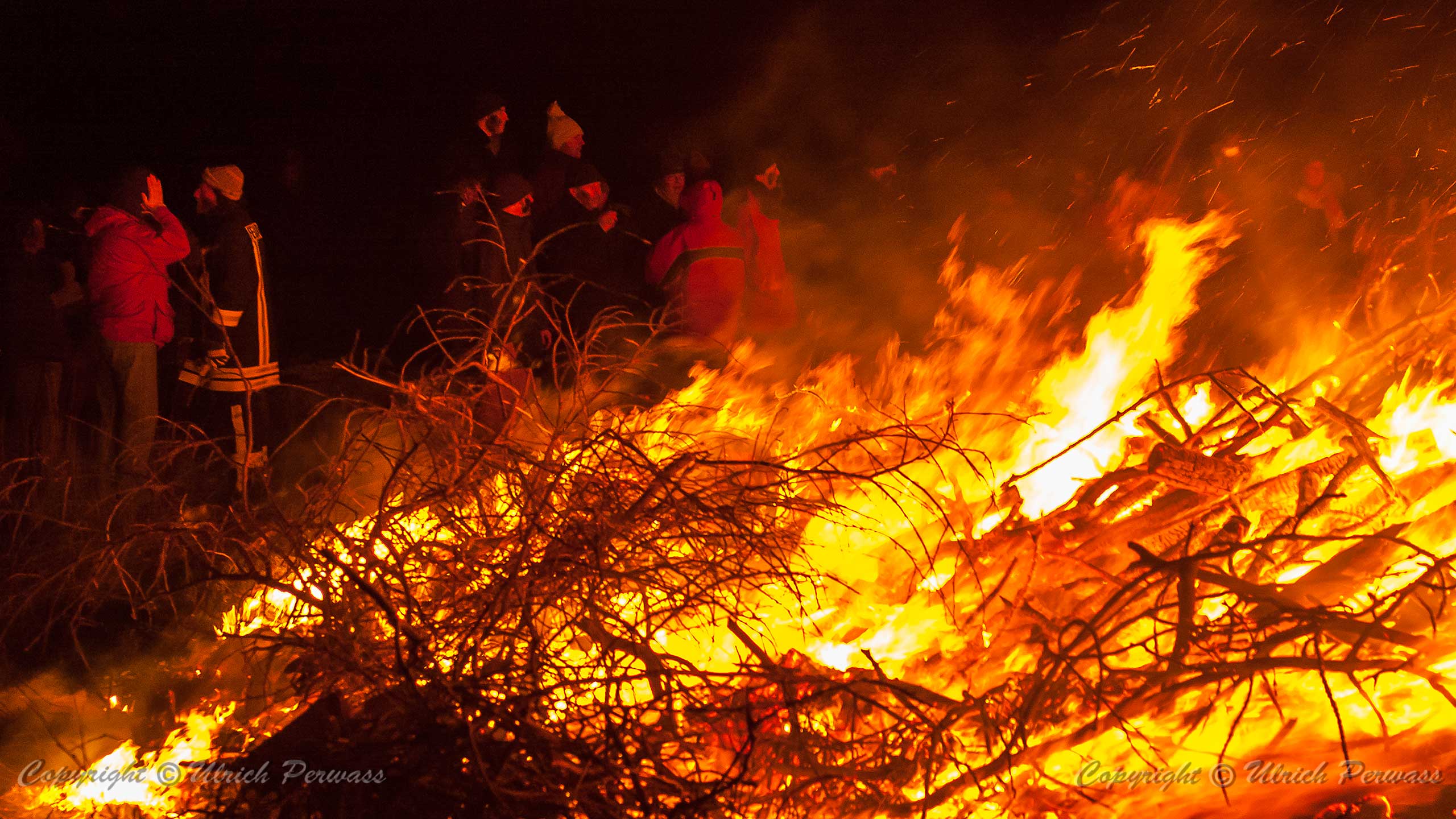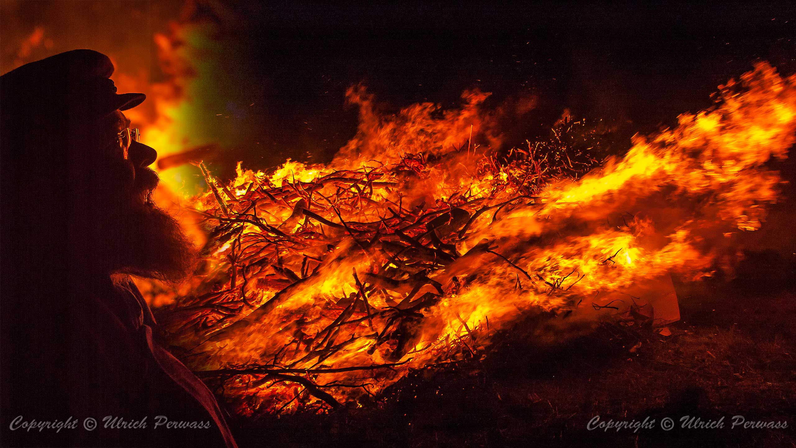 Biikefeuer auf Hallig Hooge Etwa ab dem 17. Jhdt verdienten viele Männer in Nordfriesland den Lebensunterhalt für sich und ihre Familien mit dem Walfang. Frauen und Kinder der nordfriesischen Familien verabschiedeten sich am Vorabend des "Piddersdai" (St. Petritag) von ihren Männern und Vätern mit den Biikefeuern, die mit ihrem Schein und den Wünschen und Hoffnungen der Zurückgebliebenen die Walfänger weit hinaus auf die See begleiteten. Diese verließen die Inseln und Halligen auf kleinen "Schmackschiffen" in Richtung Hamburg oder zu den holländischen Hafenstädten, wo die Walfang-Schiffe auf sie warteten. Viele Männer kehrten nicht zurück. So wurden Anno 1777 27 Walfangschiffe vor Grönland vom Eise eingeschlossen, darunter auch das Schiff des Kapitän Volquart Jensen aus Nordmarsch. Nur ein Bruchteil der Seeleute konnte sich dem unbarmherzigen Zugriff der Eiswüsten entziehen und nach Hause zurückkehren. Ein historischer Bericht aus dem Jahre 1749 von Pastor Lorenzen beschreibt die Gefühle der Zurückgebliebenen, nachdem die Biikefeuer (Leuchtbake) heruntergebrannt waren: "Wie traurig es lässt, wenn alle Mannespersonen von unserer Insel weggegangen sind. In den ersten Tagen ist alles ganz stille, man sieht fast niemand auf dem Felde gehen, und es scheint, als ob die Einwohner fast gänzlich ausgestorben sind. ... " |