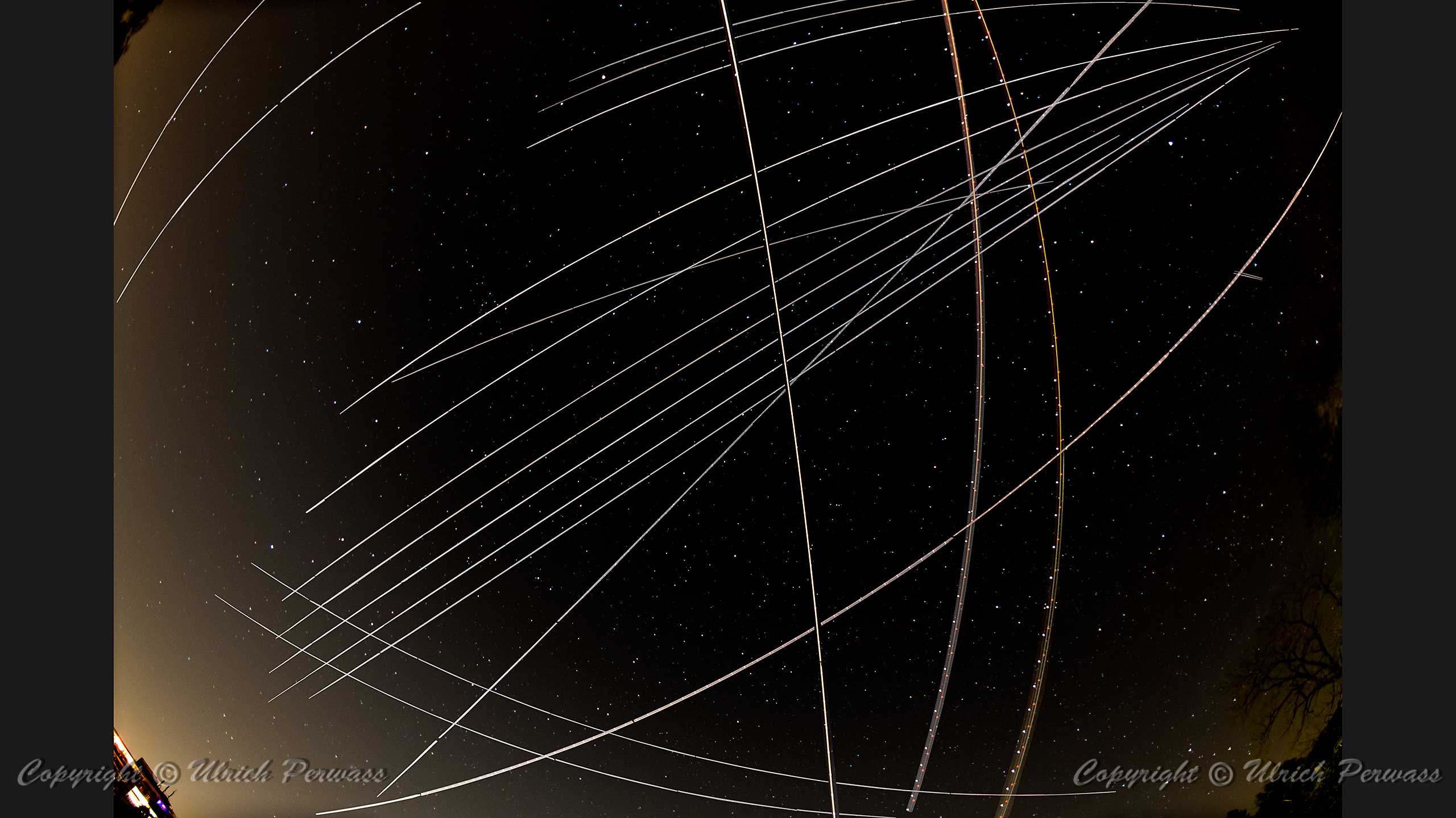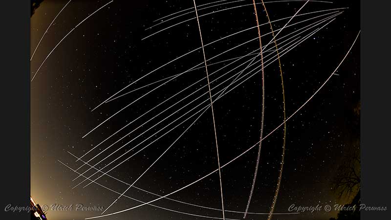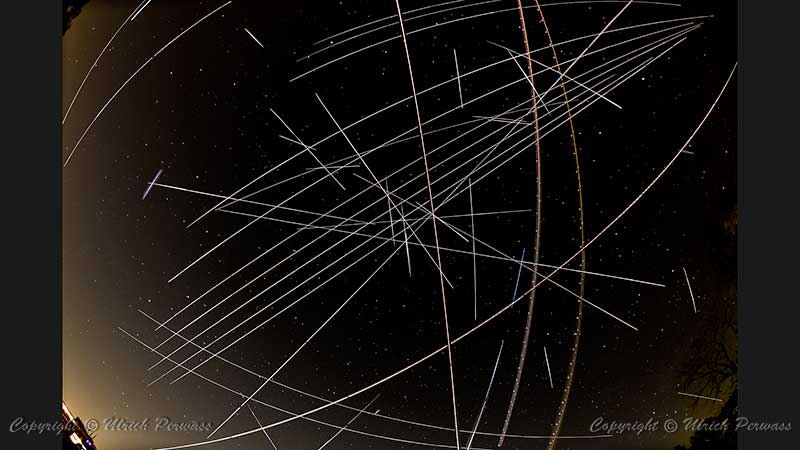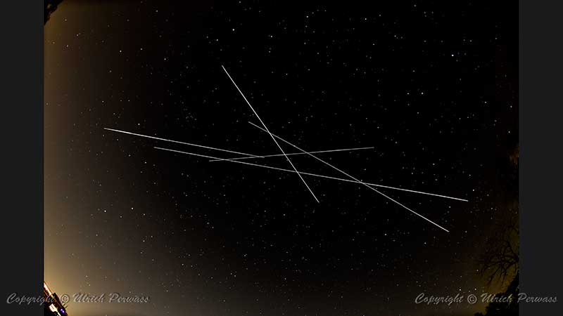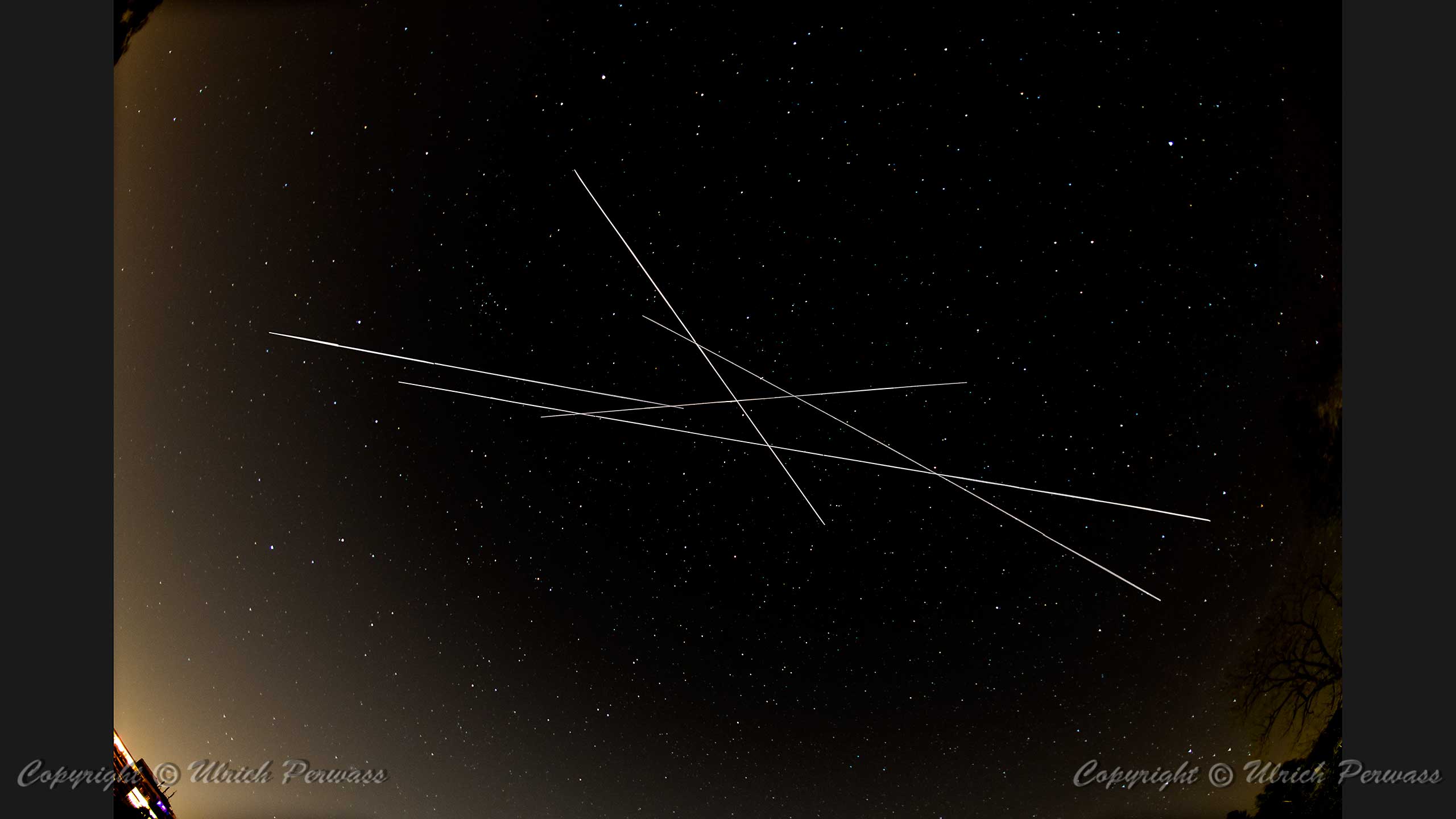 Lyriden, Flugzeuge und Satelliten vor dem Sternenhimmel