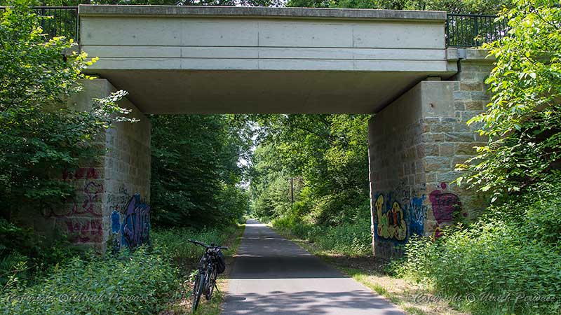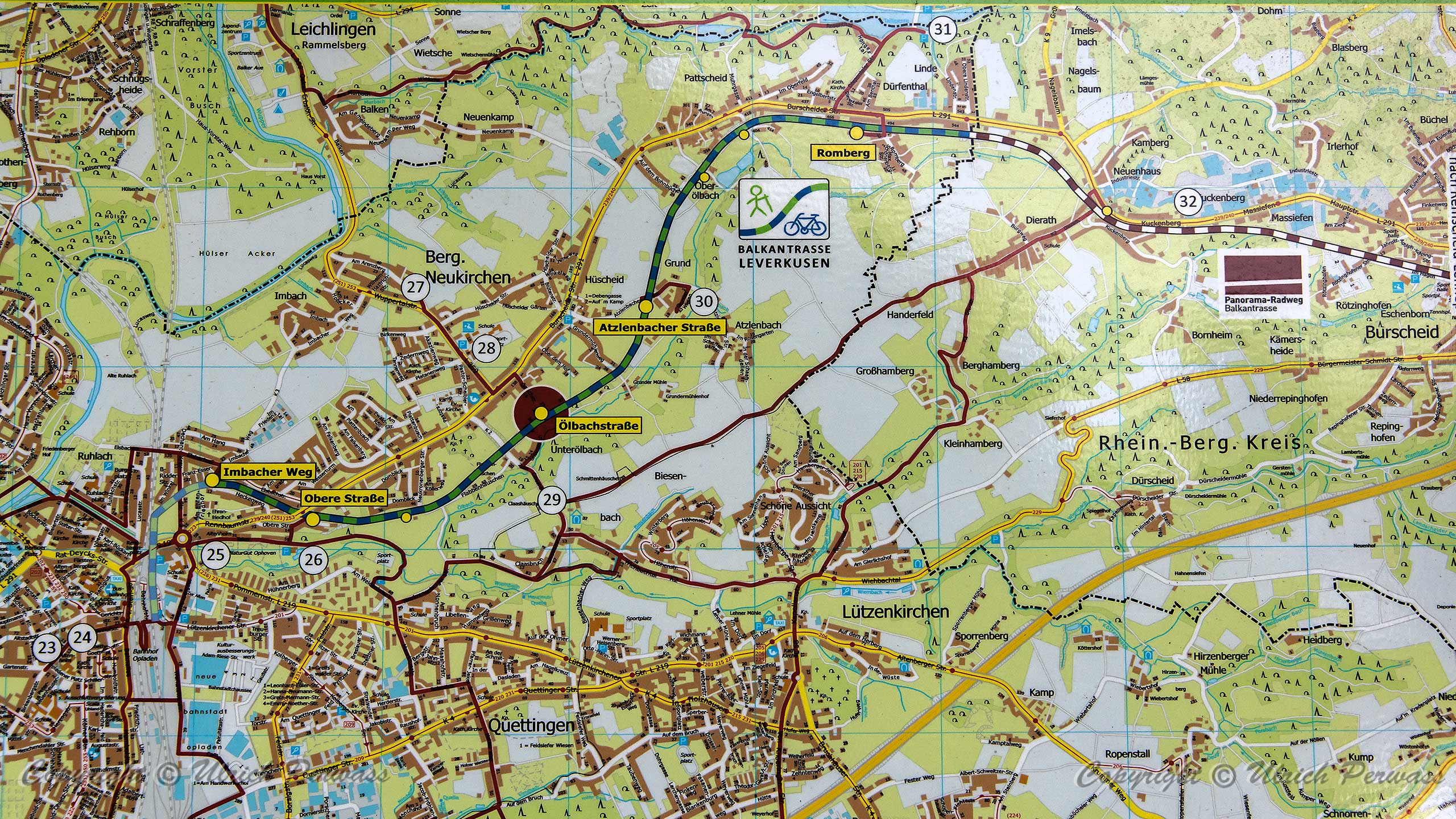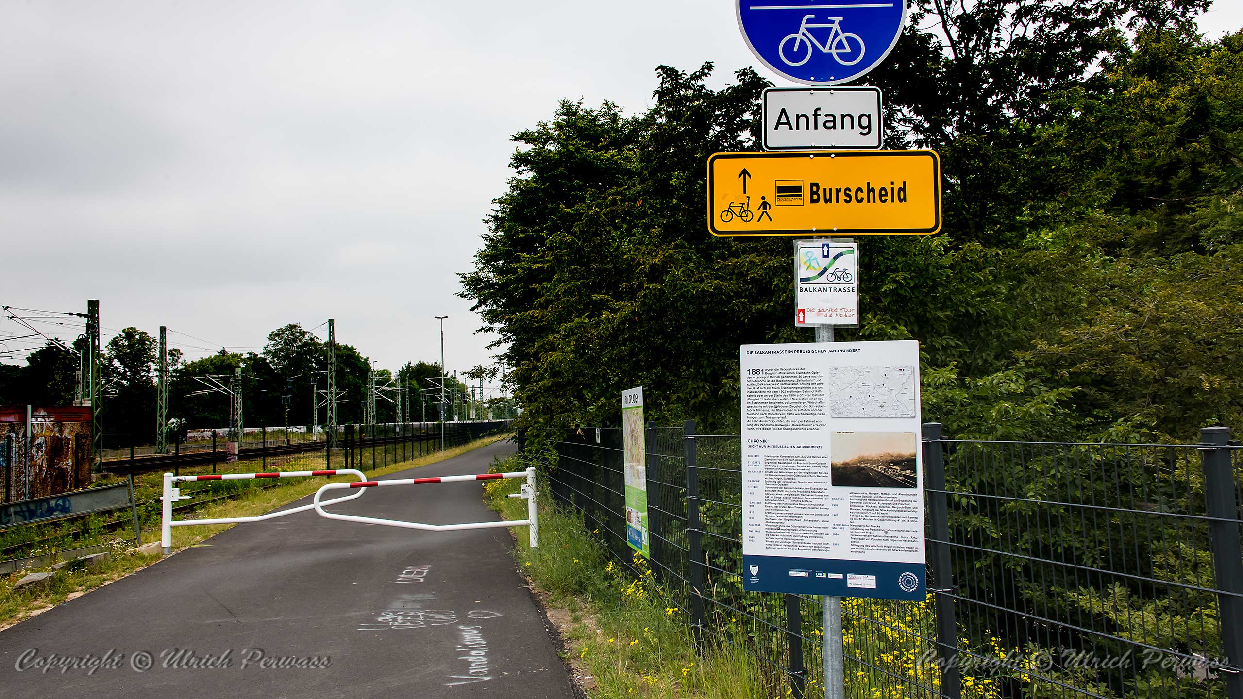 Balkantrasse Ein etwas eigenartiger Name für einen Radweg ins Bergische Land, den ich nun schon mehrmals "erfahren" habe. Aus der Tiefebene des Rheins geht es vom Bahnhof in Opladen bei Leverkusen (49 Meter) 28 km hinauf ins Bergische bis zum Bahnhof in Lennep bei Remscheid (335 Meter) , ein Anstieg um 286 Meter! Doch eine leichte Tour auf der Bahntrasse des ehemaligen "Balkanexpress", der von 1868 bis 1980 das sehr hügelige Land erschloss. Kommen Sie mit auf meine Tagesetappen vom Startpunkt Bismarckstrasse in Burscheid, diesmal sogar bis an den Rhein bei Leverkusen. |
