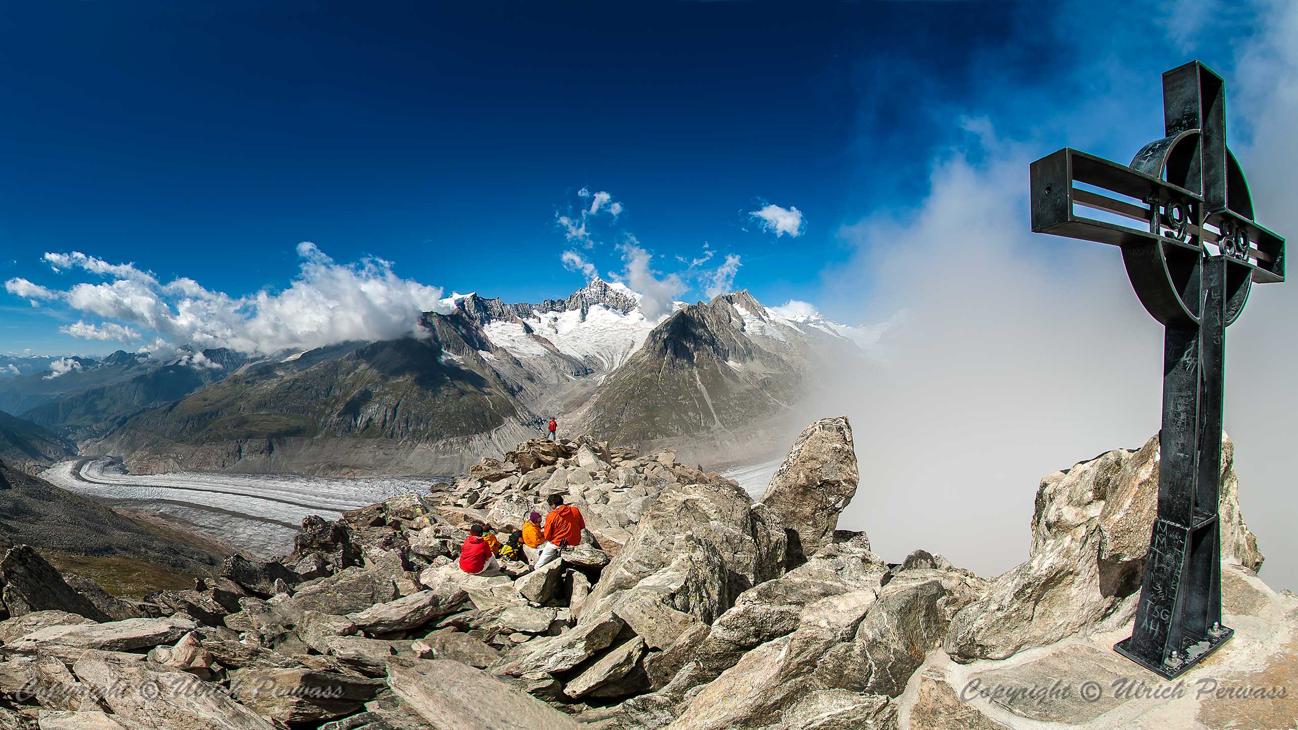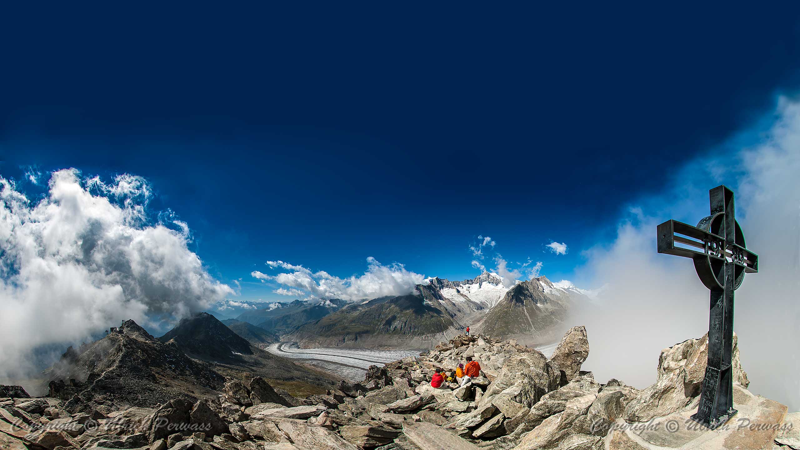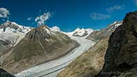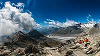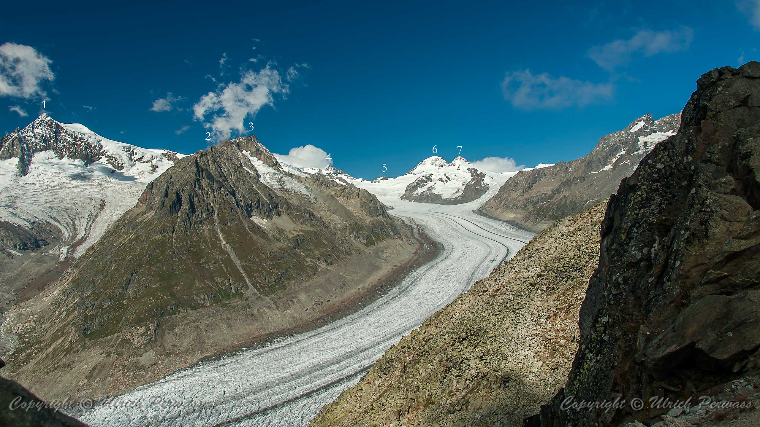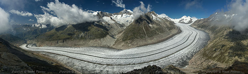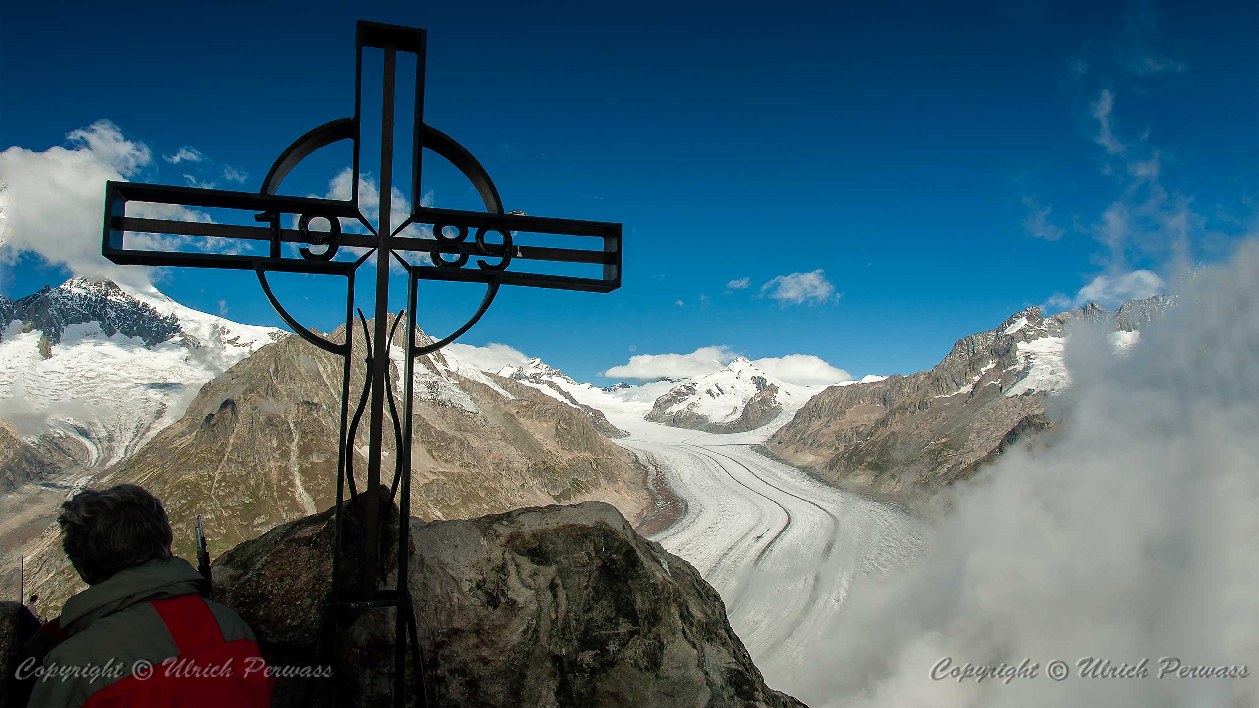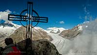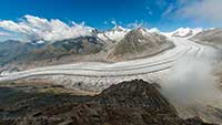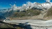 Tag 9 Tag 1, Tag 2, Tag 3, Tag 4, Tag 5, Tag 6, Tag 7, Tag 8, Tag 9 Am 4. September 2010 musste ich leider nach erlebnisreichen Tagen die Heimreise antreten. Zunächst war der Aletschgletscher mein Ziel, den ich unbedingt vom Eggishorn nochmals aufnehmen wollte. Er hatte mich bereits 2006 vom Jungfraujoch aus sehr beeindruckte. Also ab nach Fiesch, von dort zur Fiescheralp und dann weiter zum Eggishorn. Kommen Sie mit! Mit Klick zum Panorama im Vollformat (Von dort zurück über Zurücktaste des Panoramafensters oder Hotspot mit rechter Maustaste) |