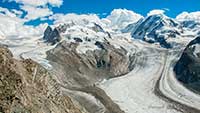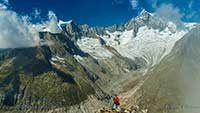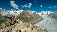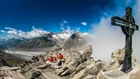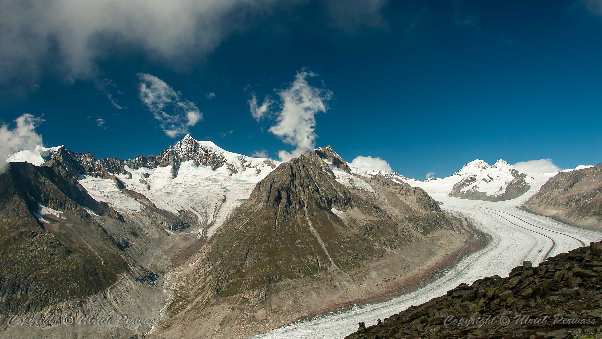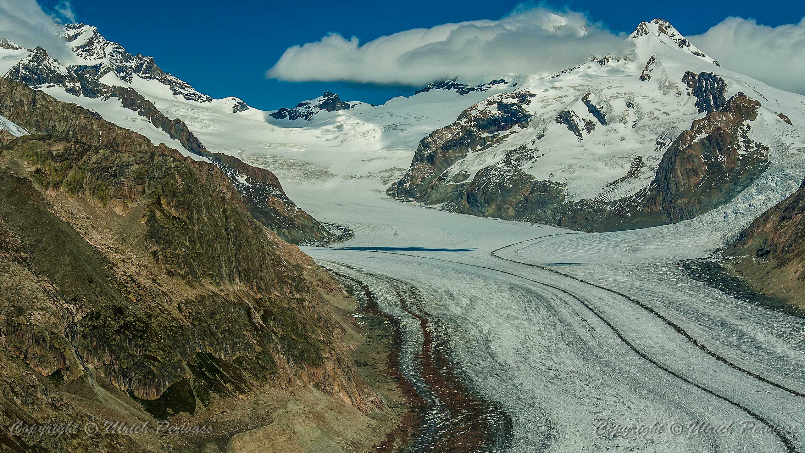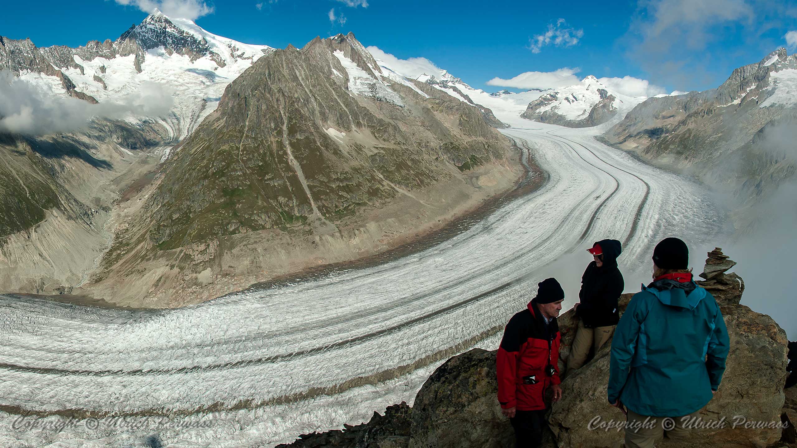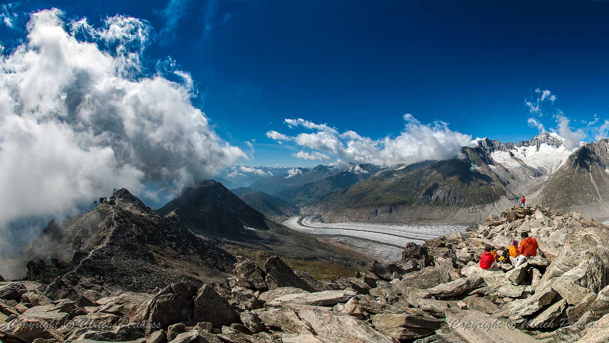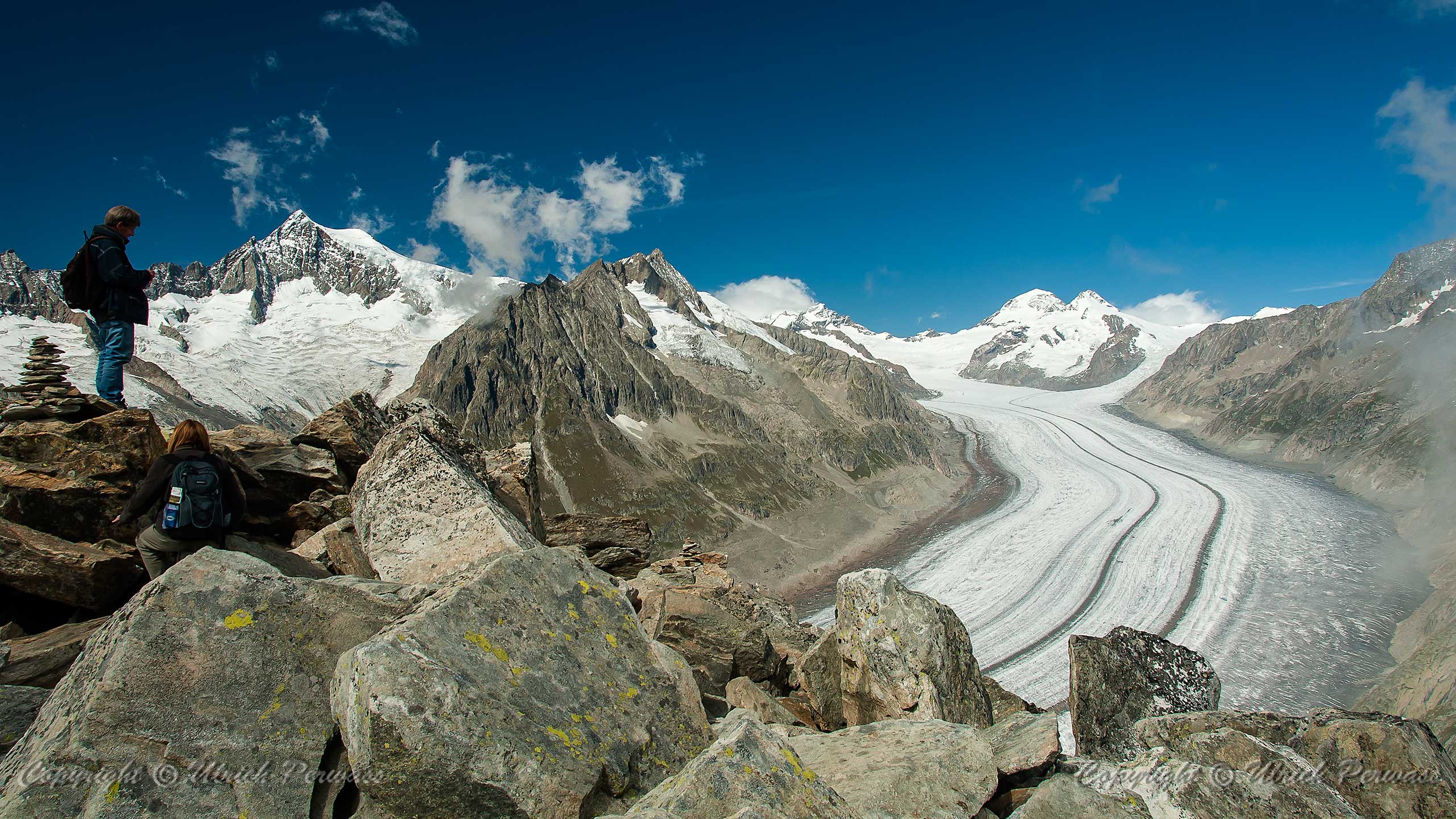 Tag 9 Tag 1, Tag 2, Tag 3, Tag 4, Tag 5, Tag 6, Tag 7, Tag 8, Tag 9 Am 4. September 2010 musste ich leider nach erlebnisreichen Tagen die Heimreise antreten. Zunächst war der Aletschgletscher mein Ziel, den ich unbedingt vom Eggishorn nochmals aufnehmen wollte. Er hatte mich bereits 2006 vom Jungfraujoch aus sehr beeindruckte. Also ab nach Fiesch, von dort zur Fiescheralp und dann weiter zum Eggishorn. Kommen Sie mit! Mit Klick zum Panorama im Vollformat (Von dort zurück über Zurücktaste des Panoramafensters oder Hotspot mit rechter Maustaste) |