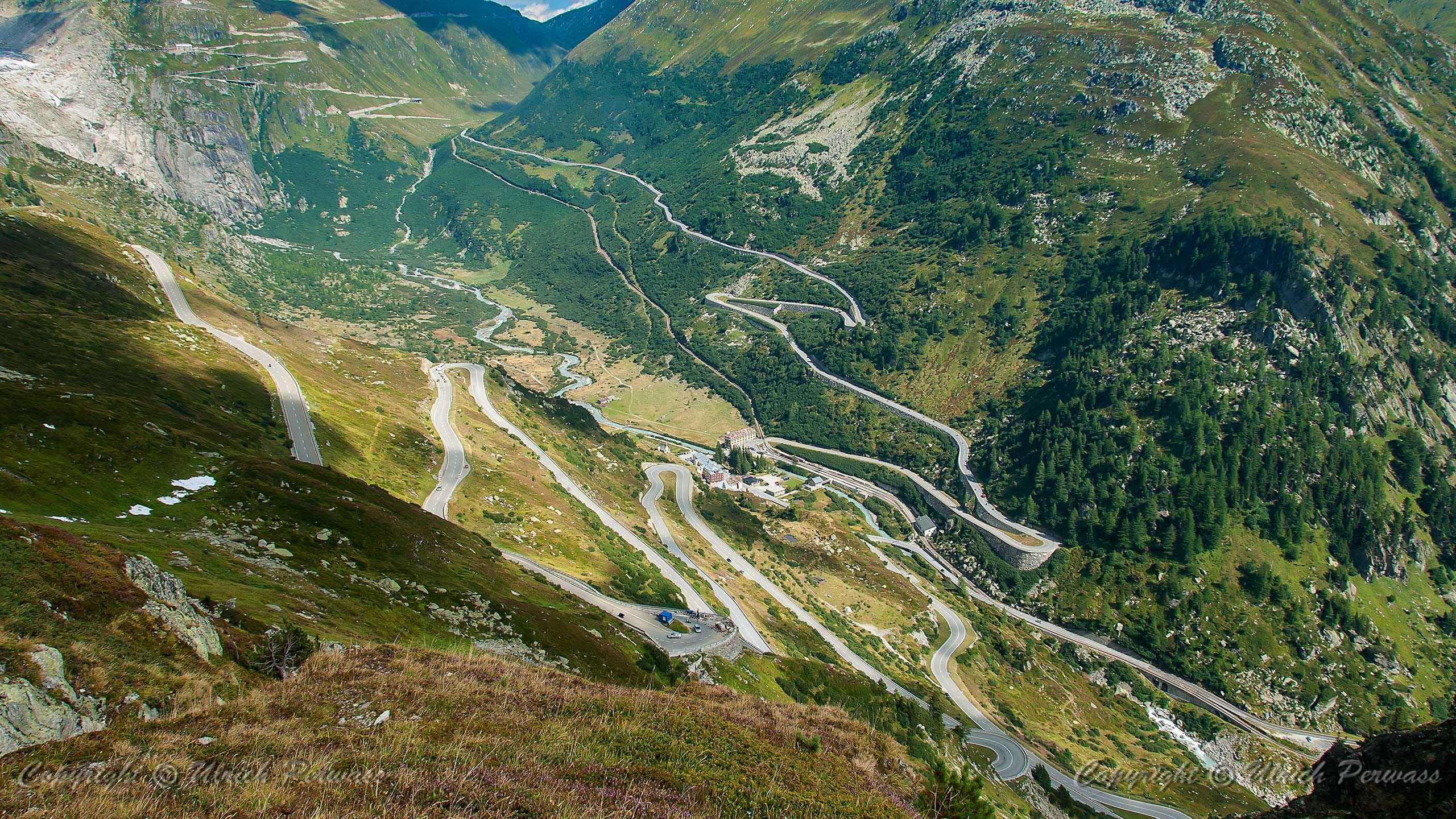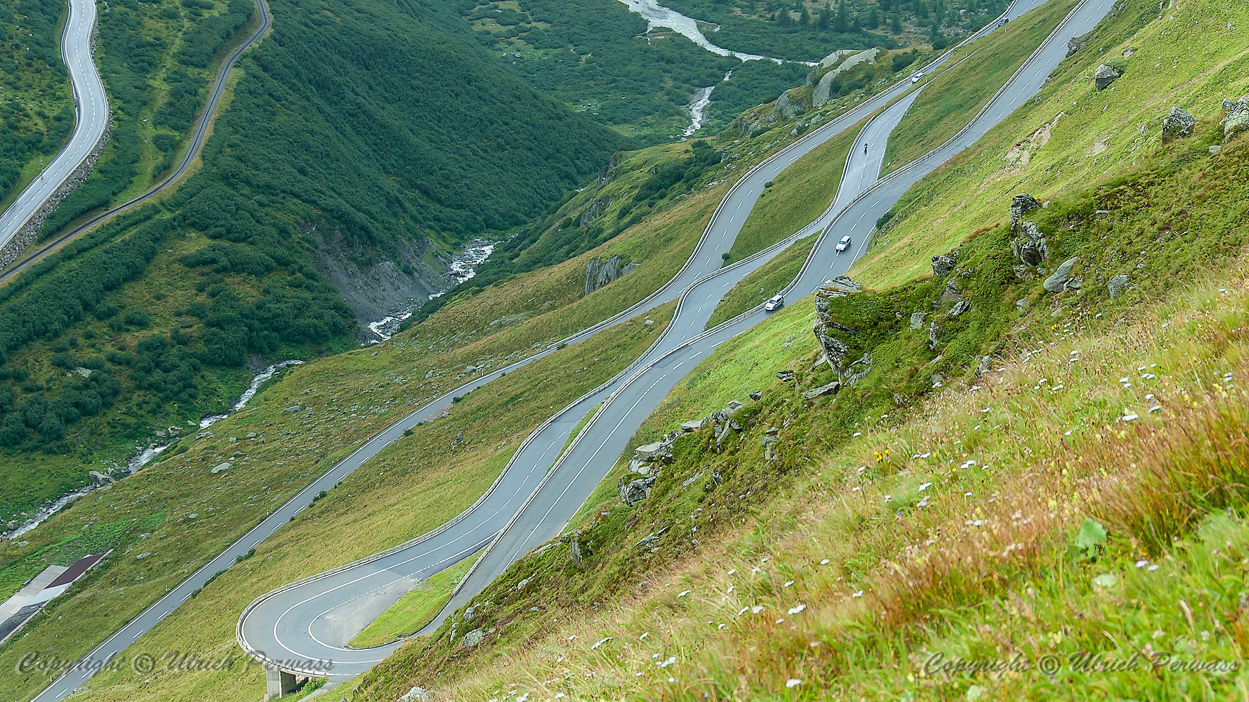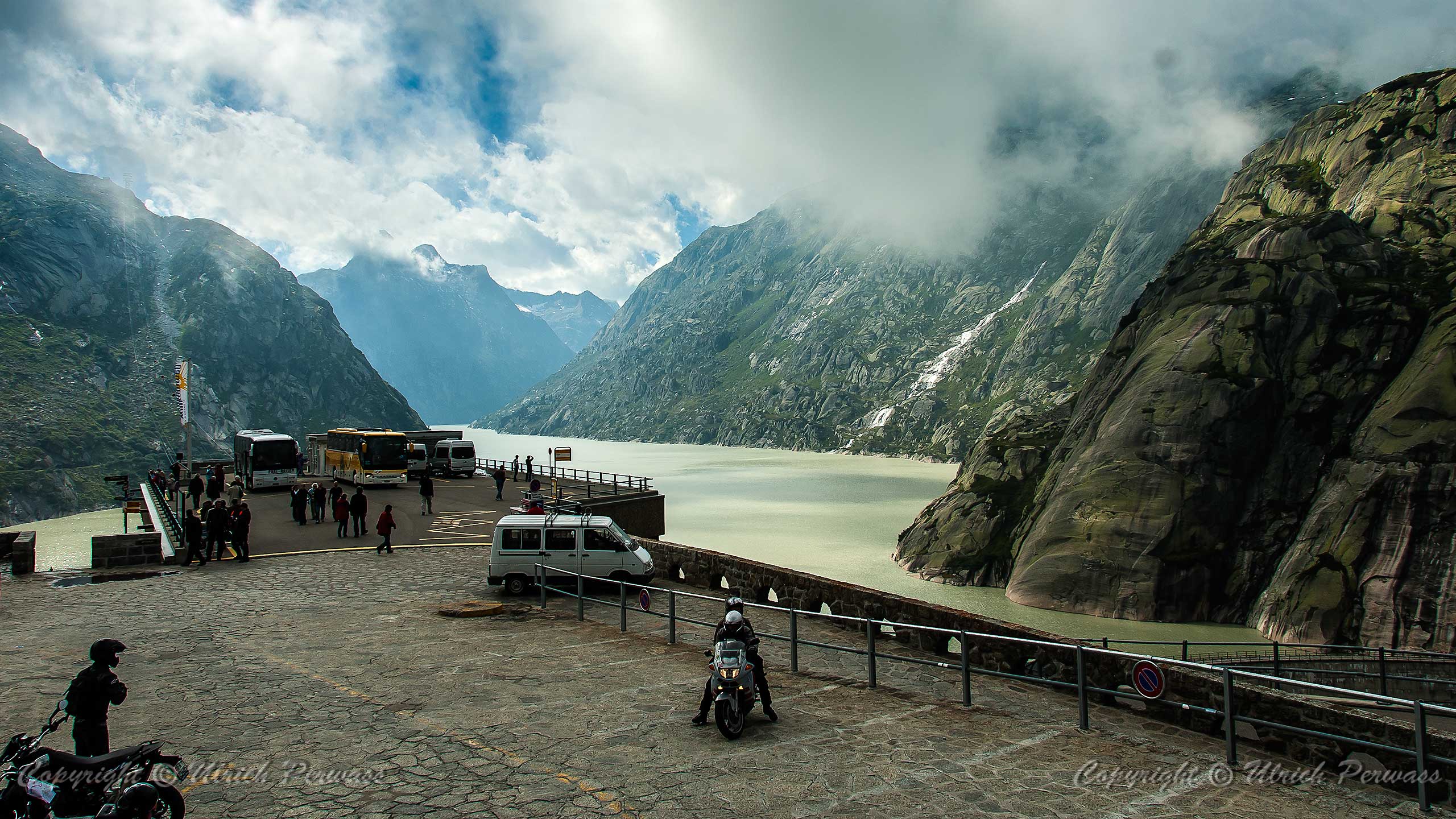 Das nächste Ziel war Gletsch im Rhonetal an der Furkabergstrecke der Zahnradbahn. Dort fädelte ich mich in die Serpentinen des Grimselpasses ein, die ich schon bei der Anreise vom Furkapass aus sehr bestaunt und fotografiert hatte. Nach wiederholtem Halt für Fotozwecke erreichte ich die Talsperre Grimselsee hoch oben am Grimselpass. Nach kurzer Ruhepause ging es dann weiter über Luzern, Basel und Frankfurt 670 km nach Hause bei Köln. Eine wunderschöne Fotosafari war vorbei, die mich bis heute fasziniert!