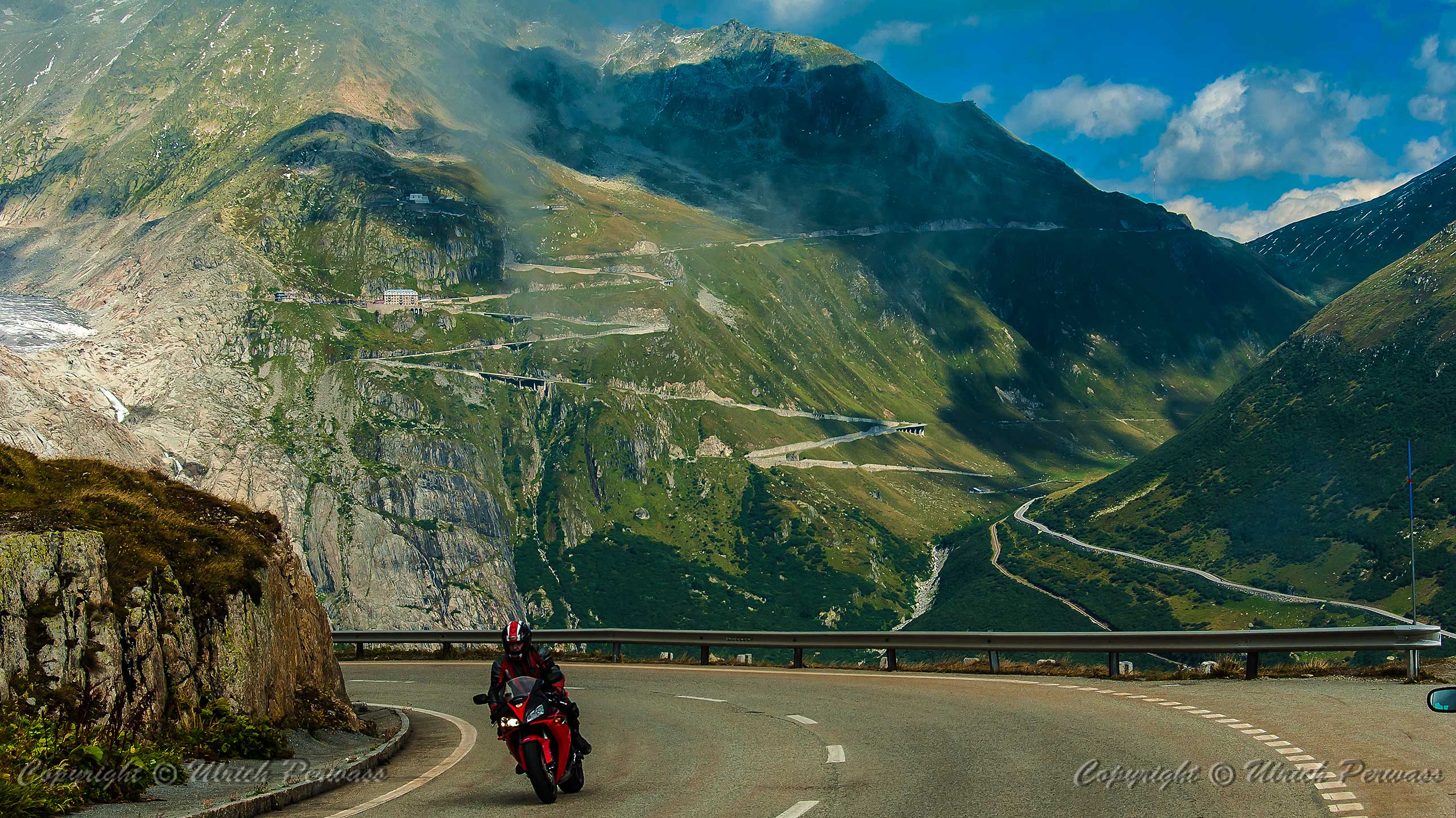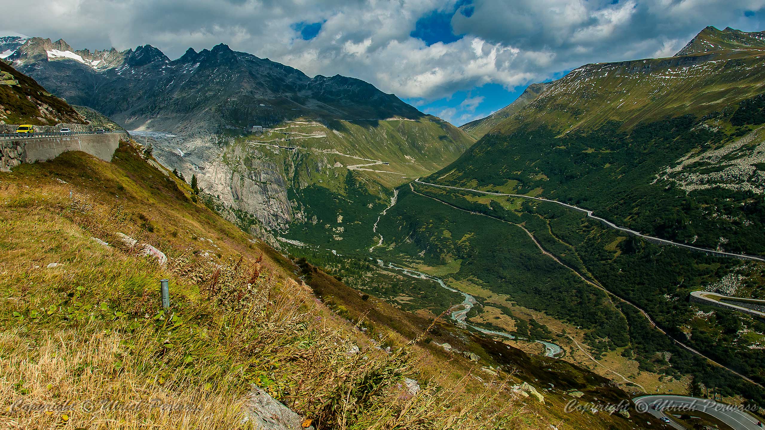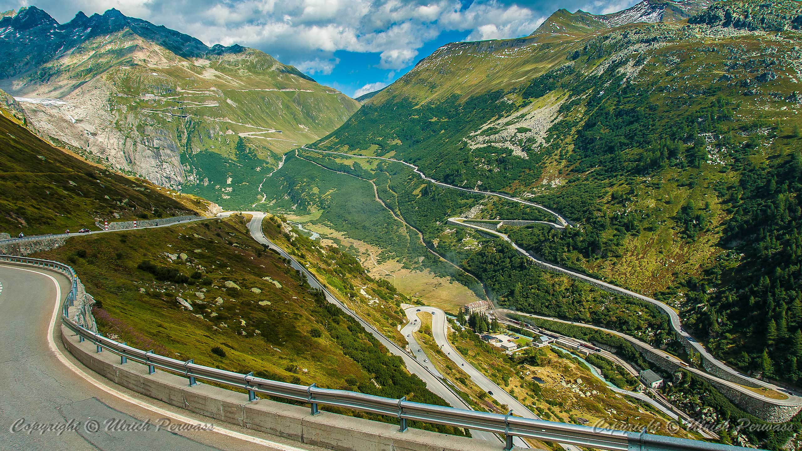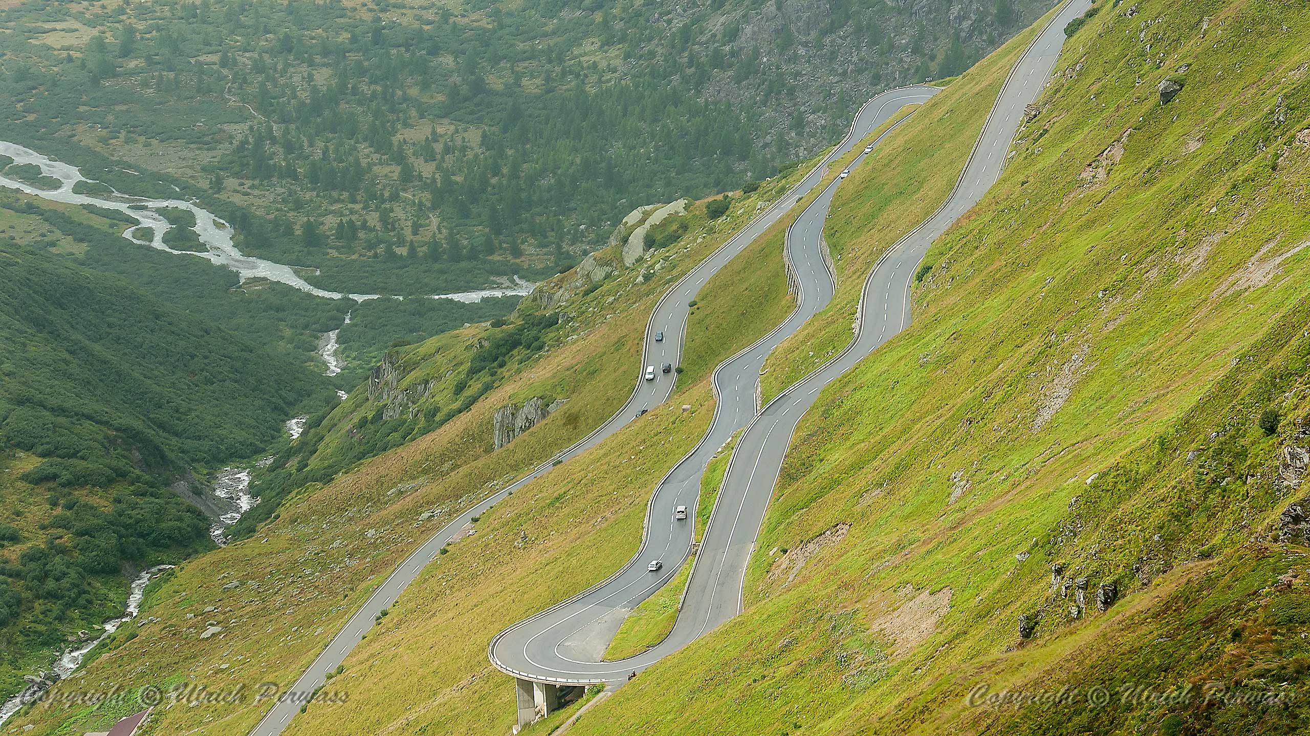 Das nächste Ziel war Gletsch im Rhonetal an der Furkabergstrecke der Zahnradbahn. Dort fädelte ich mich in die Serpentinen des Grimselpasses ein, die ich schon bei der Anreise vom Furkapass aus sehr bestaunt und fotografiert hatte. Nach wiederholtem Halt für Fotozwecke erreichte ich die Talsperre Grimselsee hoch oben am Grimselpass. Nach kurzer Ruhepause ging es dann weiter über Luzern, Basel und Frankfurt 670 km nach Hause bei Köln. Eine wunderschöne Fotosafari war vorbei, die mich bis heute fasziniert!