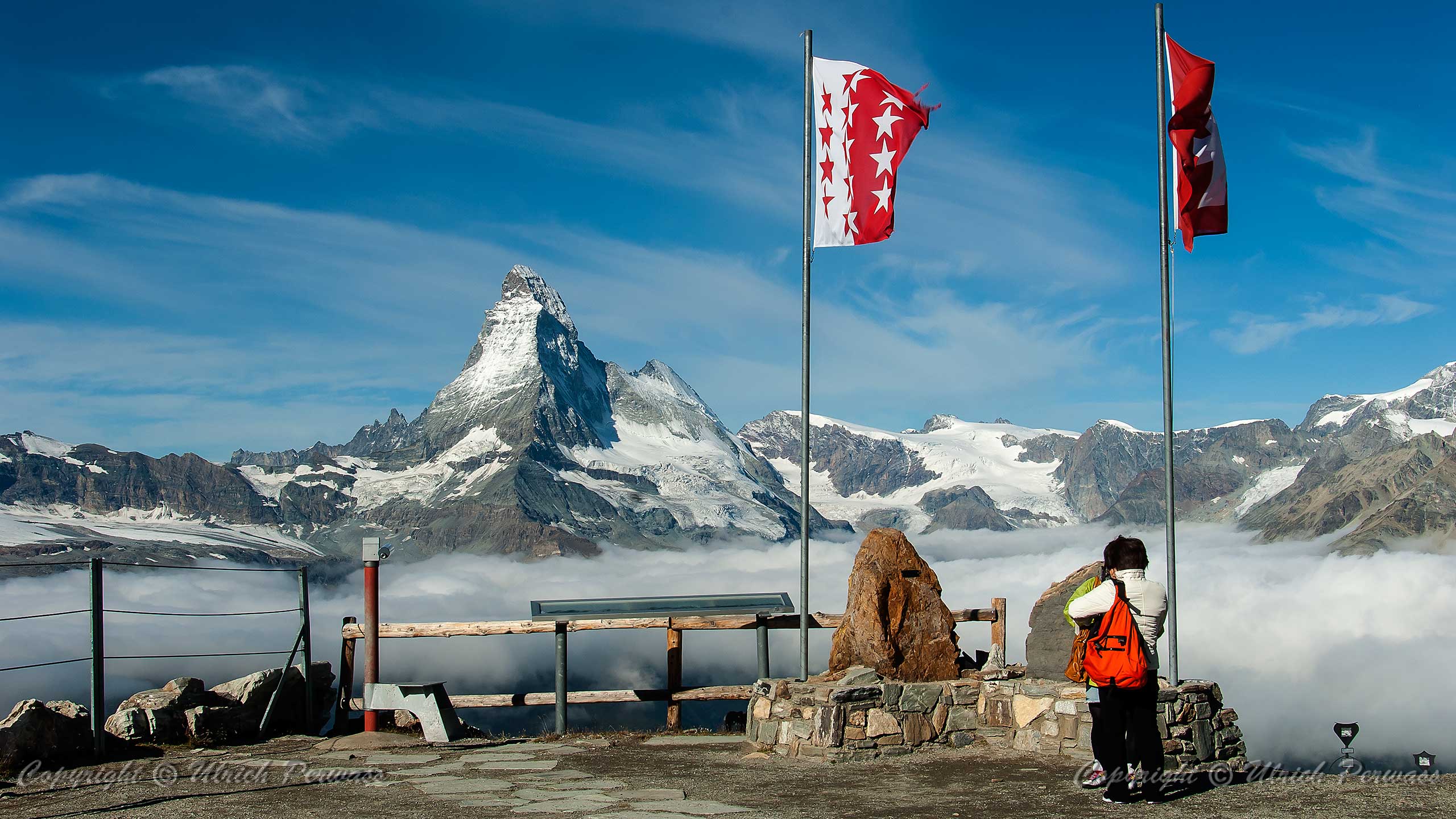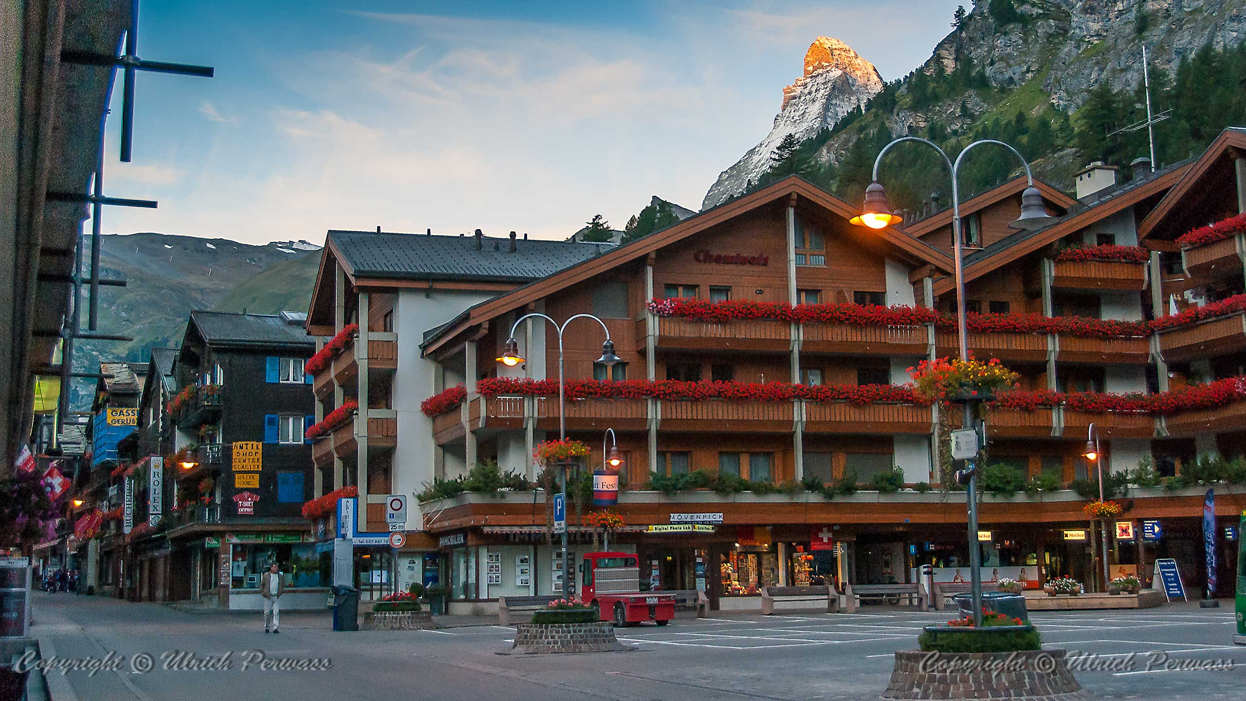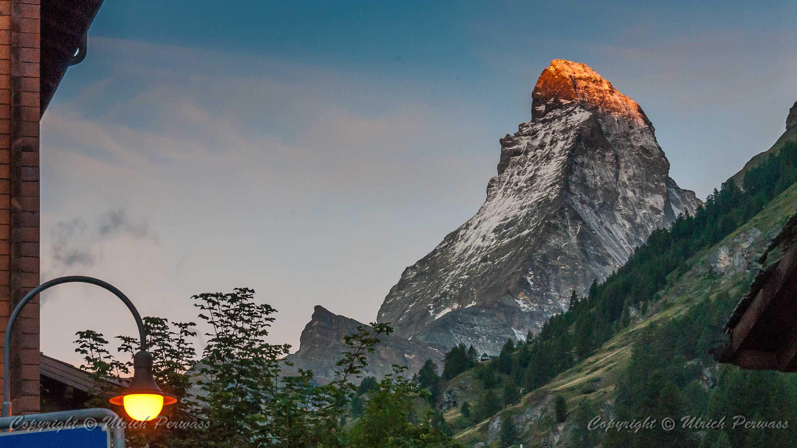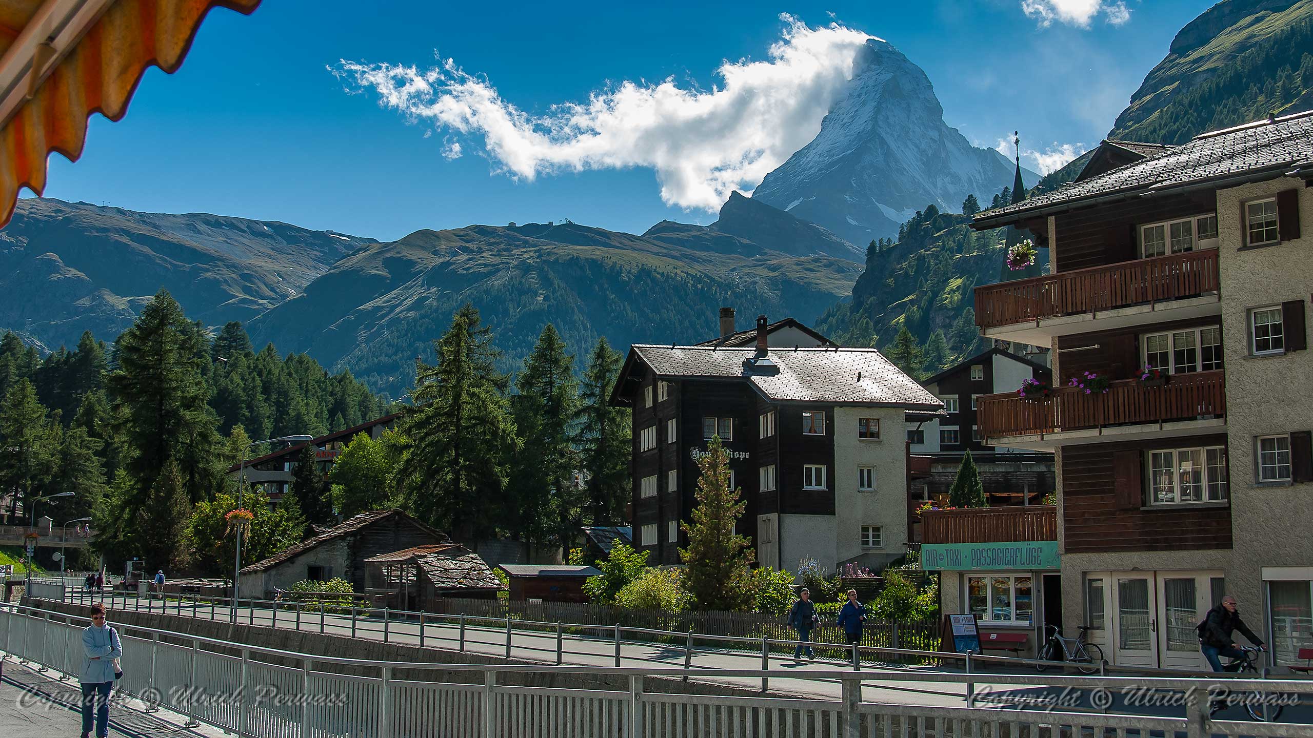 Matterhorn 2010 Es wird Zeit, sich in Coronazeiten an wunderschöne Reisen zu erinnern. Diesmal Zermatt. Am 27. August 2010 machte ich mich also auf die Socken (Reifen), über einige sehenswerte Zwischenstationen endlich das Matterhorn zu erleben und mit meiner damaligen brandneuen NIKON D200 zu fotografieren. Bis zum 4. September waren einige Hundert Bilder auf der Speicherkarte. Am frühen Morgen nach der Ankunft ein erstes Bild vom Balkon meiner Pension. Von dort aus habe ich am 3. September sieben Bergsteigergruppen in 8.620 Meter Entfernung fotografiert: Bergsteiger auf dem Matterhorn Panoramen in HTML5: (Zurück mit rechter Maustaste auf einen Hotspot ganz unten. Dort Klick auf Zurück!) Sehenswerte ältere Matterhornpanoramen:
