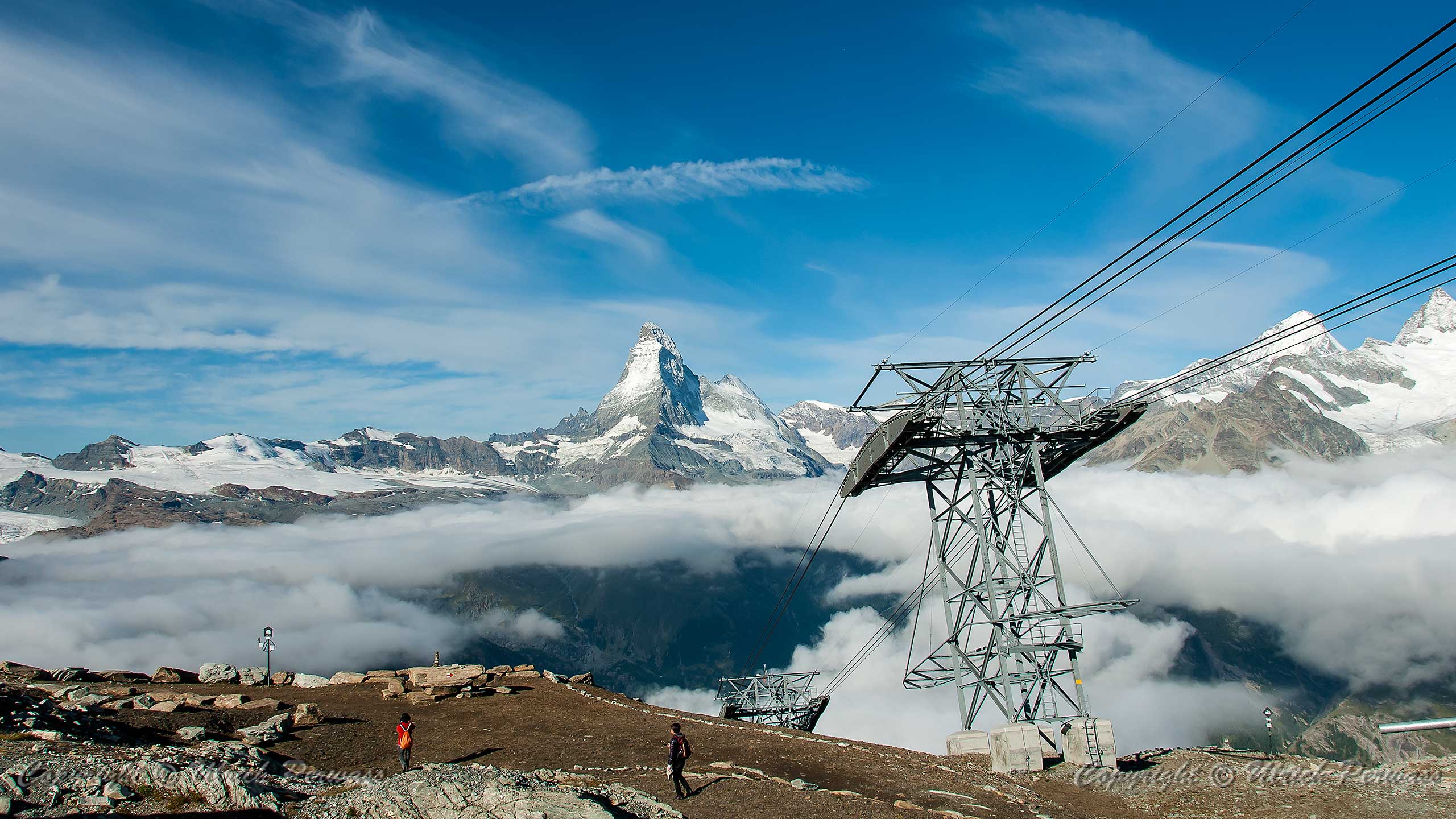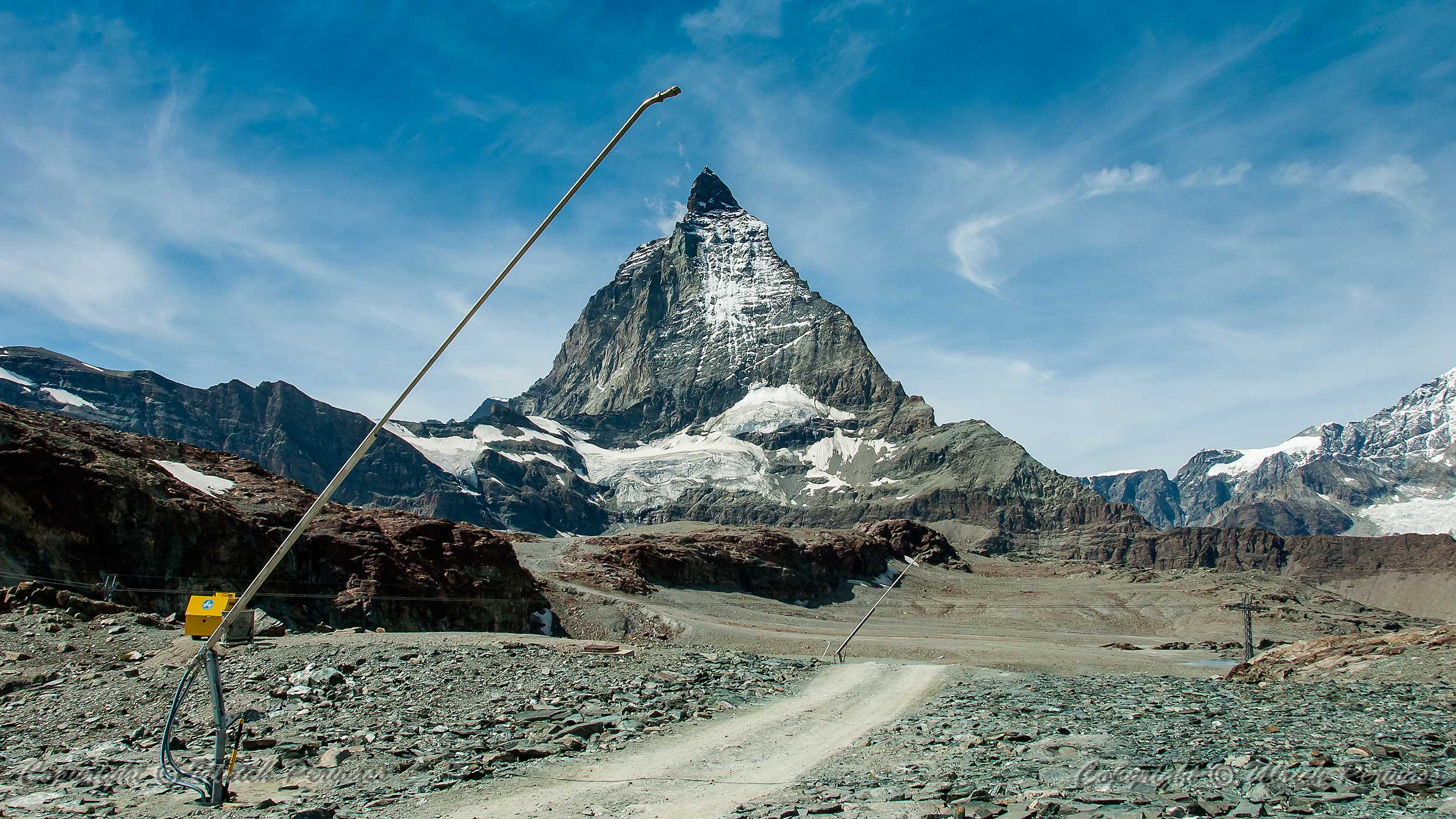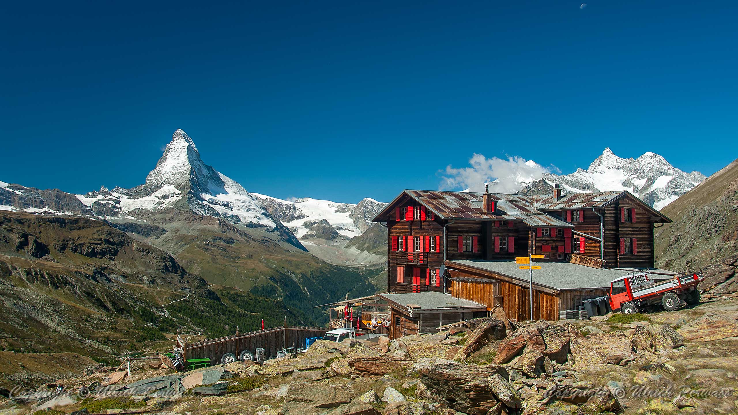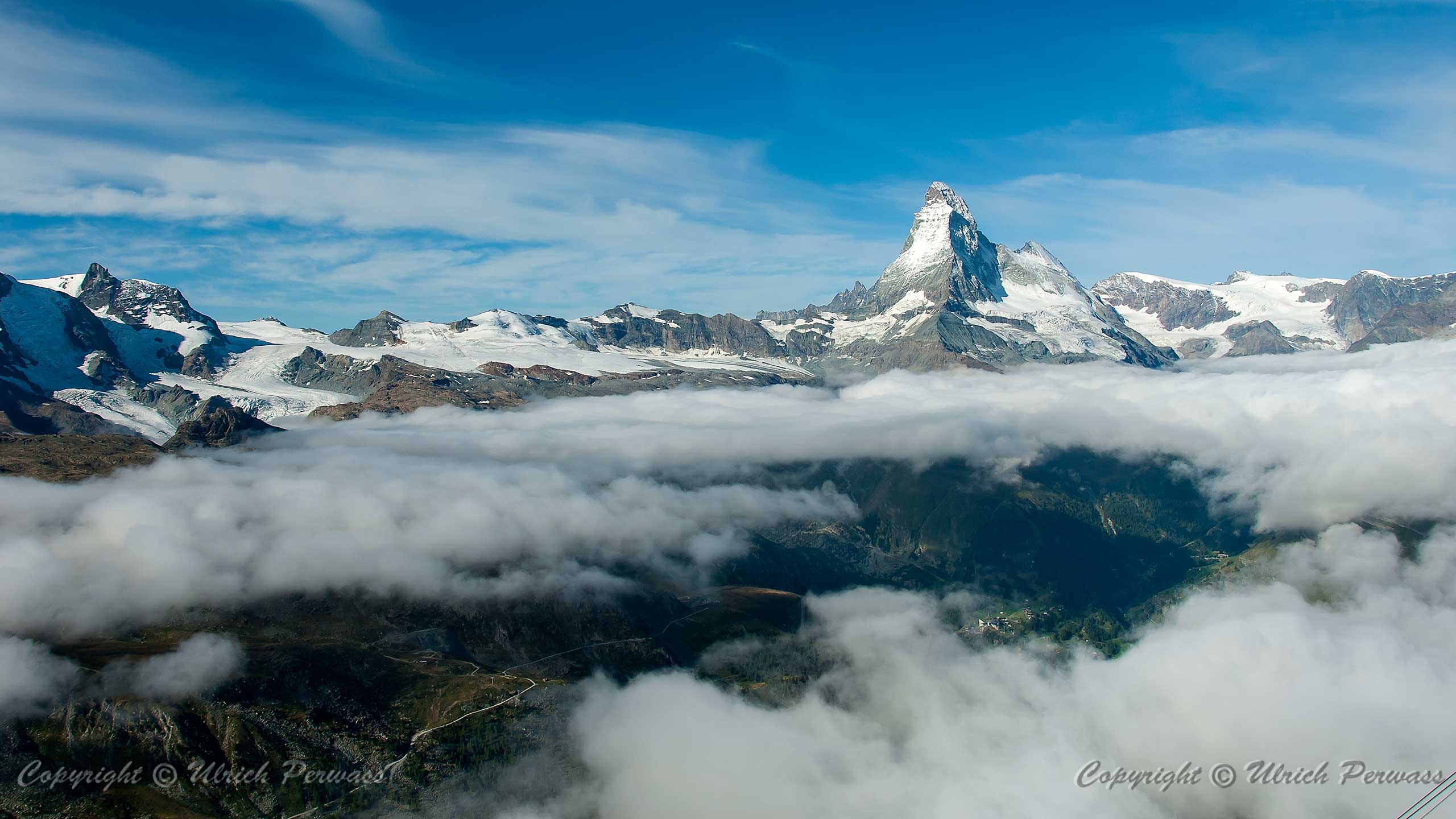 Matterhorn 2010 Es wird Zeit, sich in Coronazeiten an wunderschöne Reisen zu erinnern. Diesmal Zermatt. Am 27. August 2010 machte ich mich also auf die Socken (Reifen), über einige sehenswerte Zwischenstationen endlich das Matterhorn zu erleben und mit meiner damaligen brandneuen NIKON D200 zu fotografieren. Bis zum 4. September waren einige Hundert Bilder auf der Speicherkarte. Am frühen Morgen nach der Ankunft ein erstes Bild vom Balkon meiner Pension. Von dort aus habe ich am 3. September sieben Bergsteigergruppen in 8.620 Meter Entfernung fotografiert: Bergsteiger auf dem Matterhorn Panoramen in HTML5: (Zurück mit rechter Maustaste auf einen Hotspot ganz unten. Dort Klick auf Zurück!) Sehenswerte ältere Matterhornpanoramen: