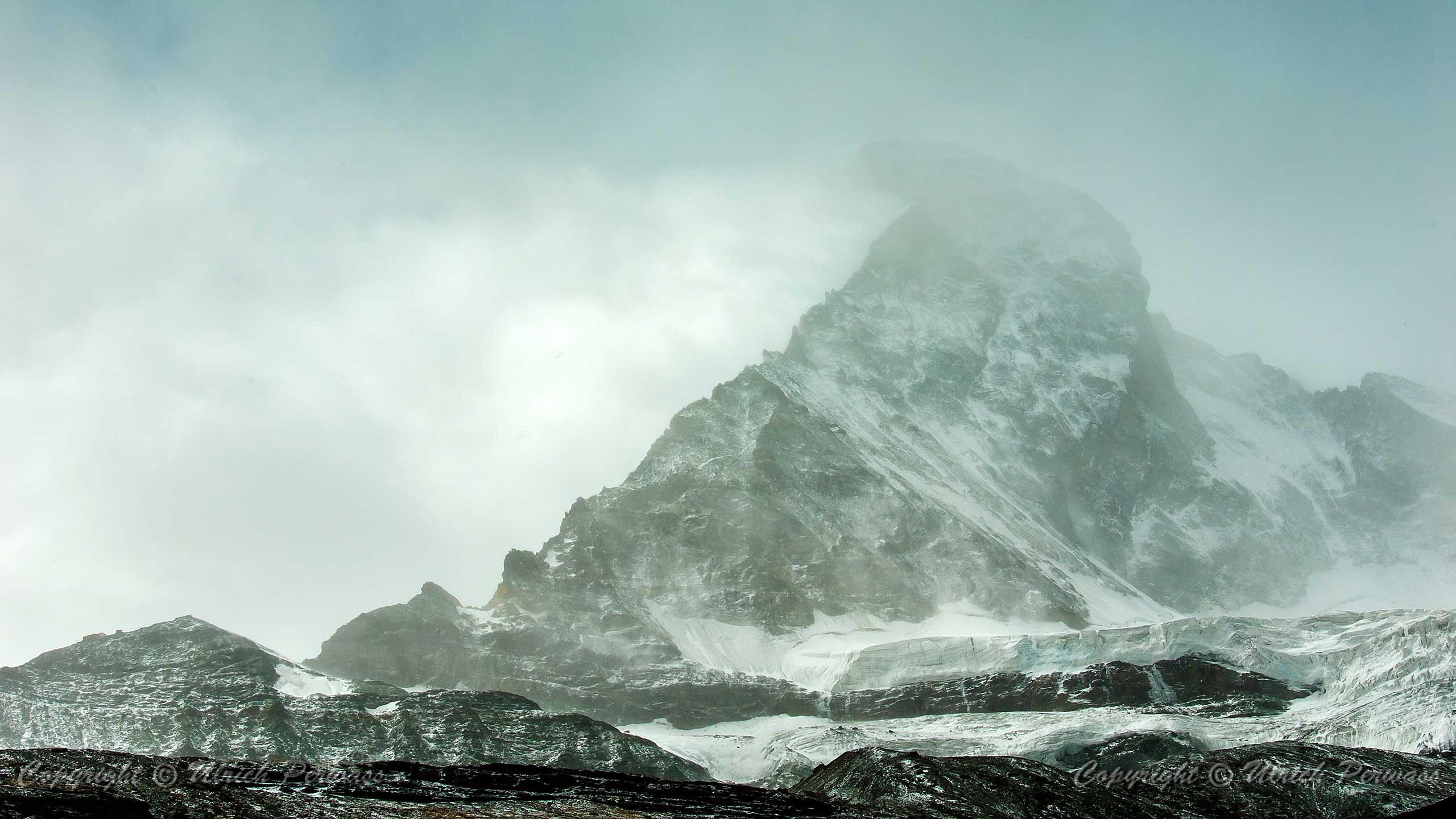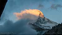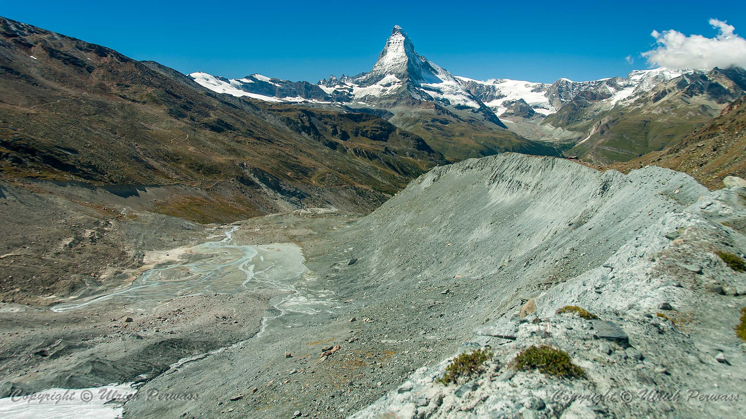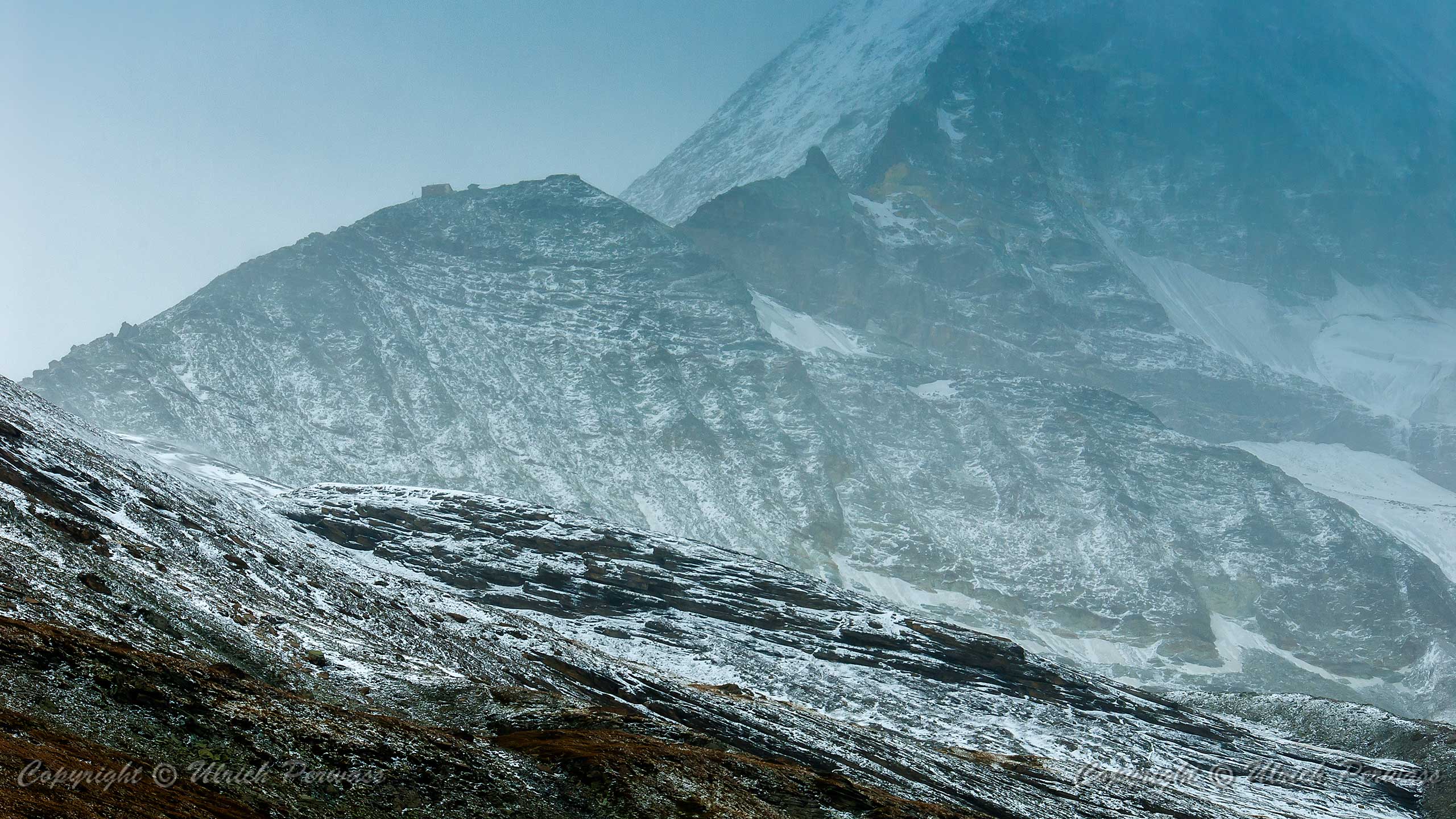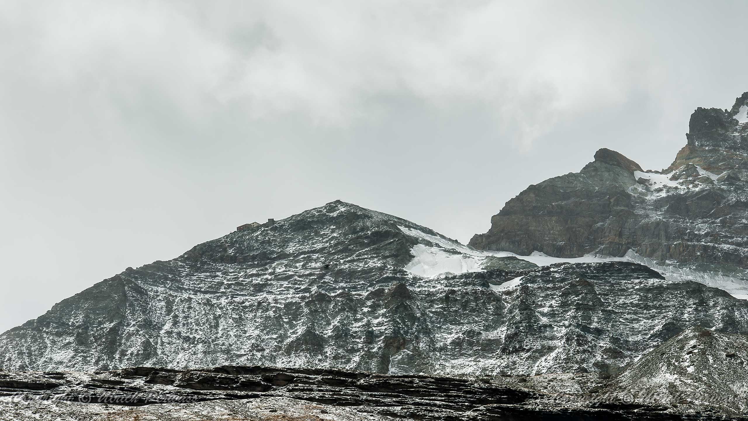 Tag 4 Tag 1, Tag 2, Tag 3, Tag 4, Tag 5, Tag 6, Tag 7, Tag 8, Tag 9 Am vierten Tag entschloss ich mich, den Matterhorn-Trail zu durchwandern, um den Nordteil dieses einzigartigen Berges zu fotografieren. Leider spielte das Wetter zunächst nicht mit. Es war sehr wolkig und es hatte über Nacht leicht geschneit. Doch es wurde allmählich besser, so dass einige gute Bilder das beschwerliche Auf und Ab etwas erleichterten. |