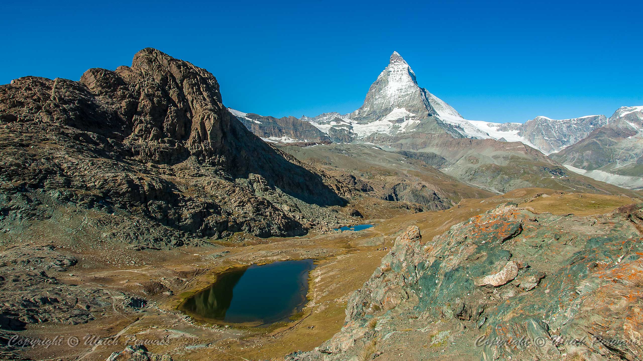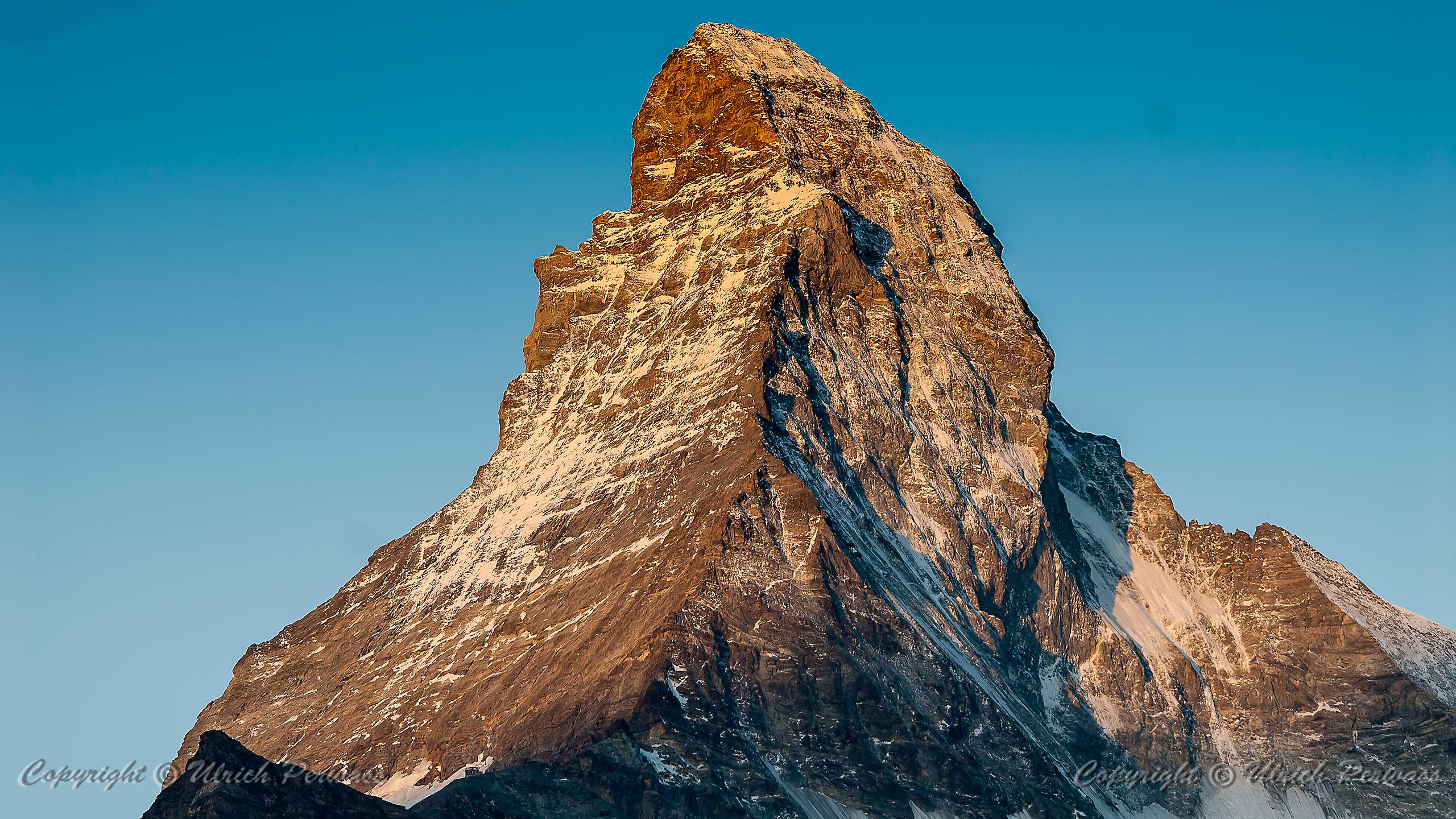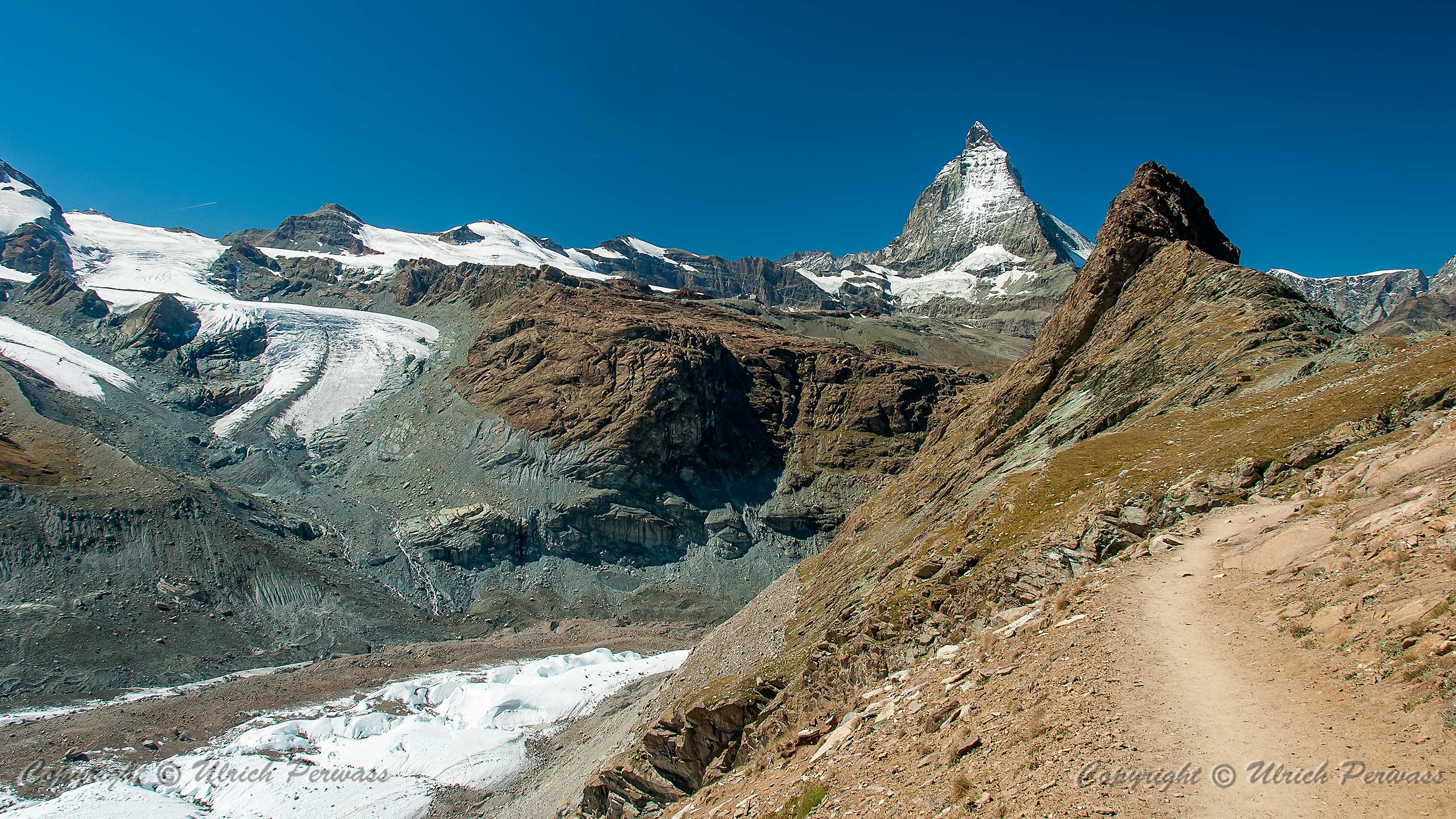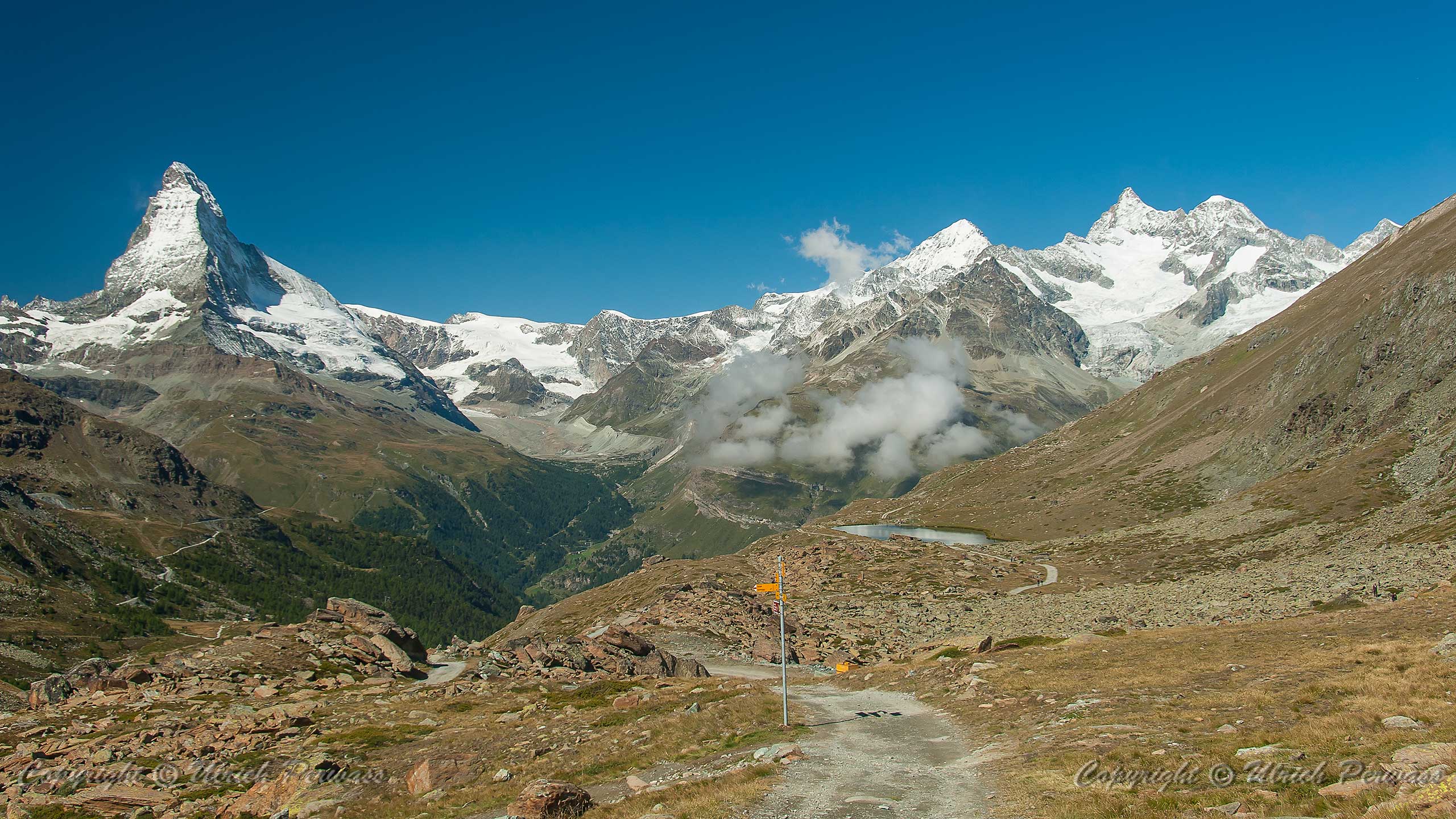 Tag 4 Tag 1, Tag 2, Tag 3, Tag 4, Tag 5, Tag 6, Tag 7, Tag 8, Tag 9 Am vierten Tag entschloss ich mich, den Matterhorn-Trail zu durchwandern, um den Nordteil dieses einzigartigen Berges zu fotografieren. Leider spielte das Wetter zunächst nicht mit. Es war sehr wolkig und es hatte über Nacht leicht geschneit. Doch es wurde allmählich besser, so dass einige gute Bilder das beschwerliche Auf und Ab etwas erleichterten. |