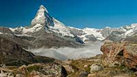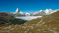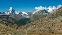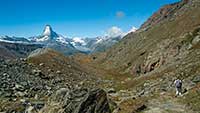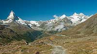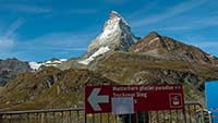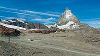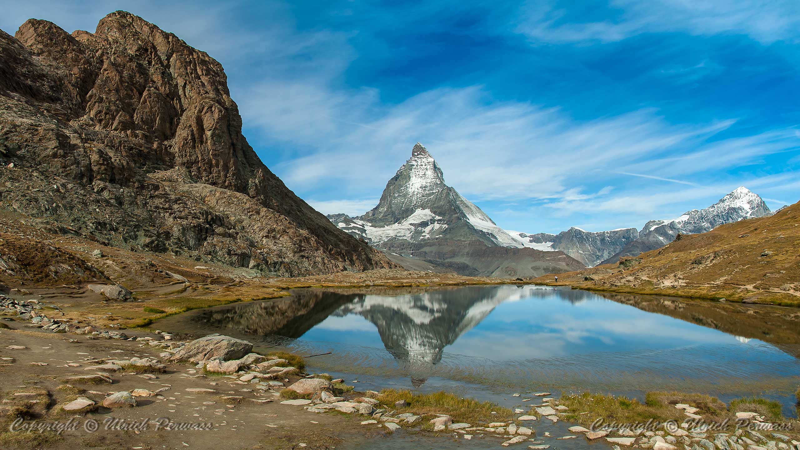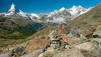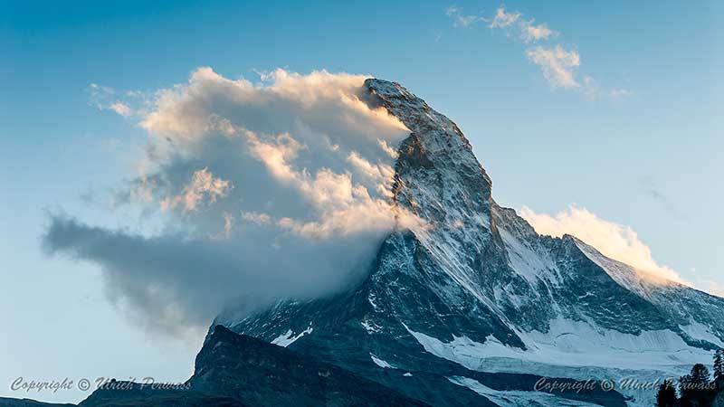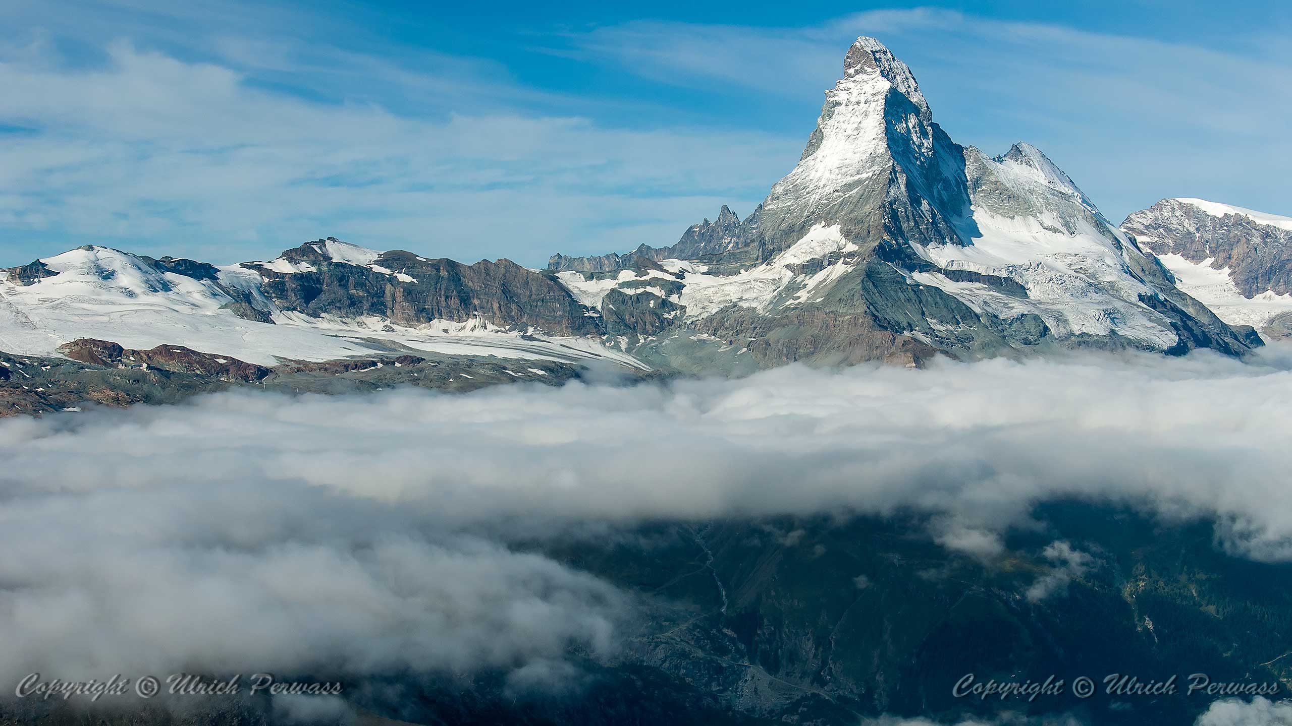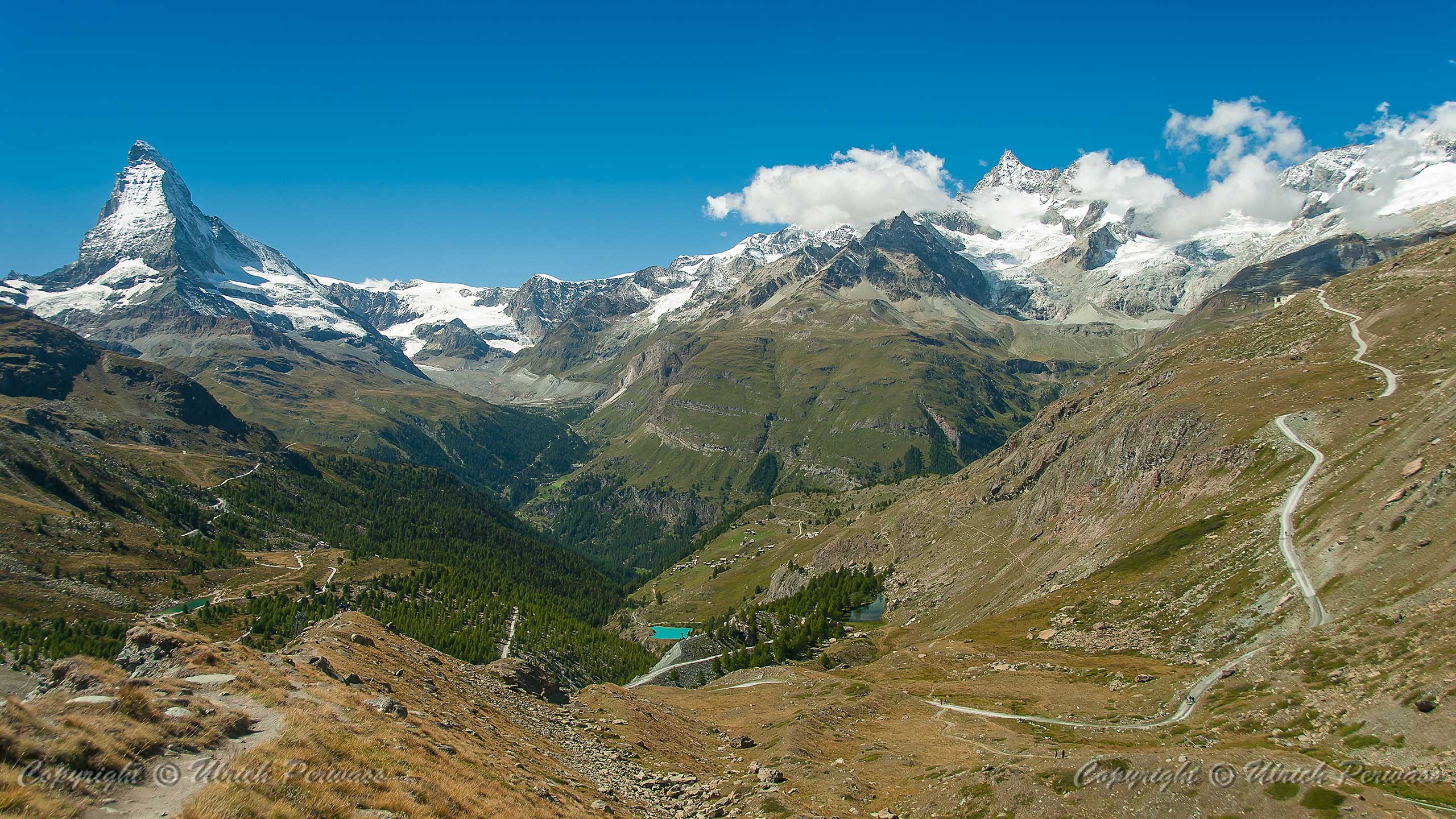 Tag 4 Tag 1, Tag 2, Tag 3, Tag 4, Tag 5, Tag 6, Tag 7, Tag 8, Tag 9 Am vierten Tag entschloss ich mich, den Matterhorn-Trail zu durchwandern, um den Nordteil dieses einzigartigen Berges zu fotografieren. Leider spielte das Wetter zunächst nicht mit. Es war sehr wolkig und es hatte über Nacht leicht geschneit. Doch es wurde allmählich besser, so dass einige gute Bilder das beschwerliche Auf und Ab etwas erleichterten. |