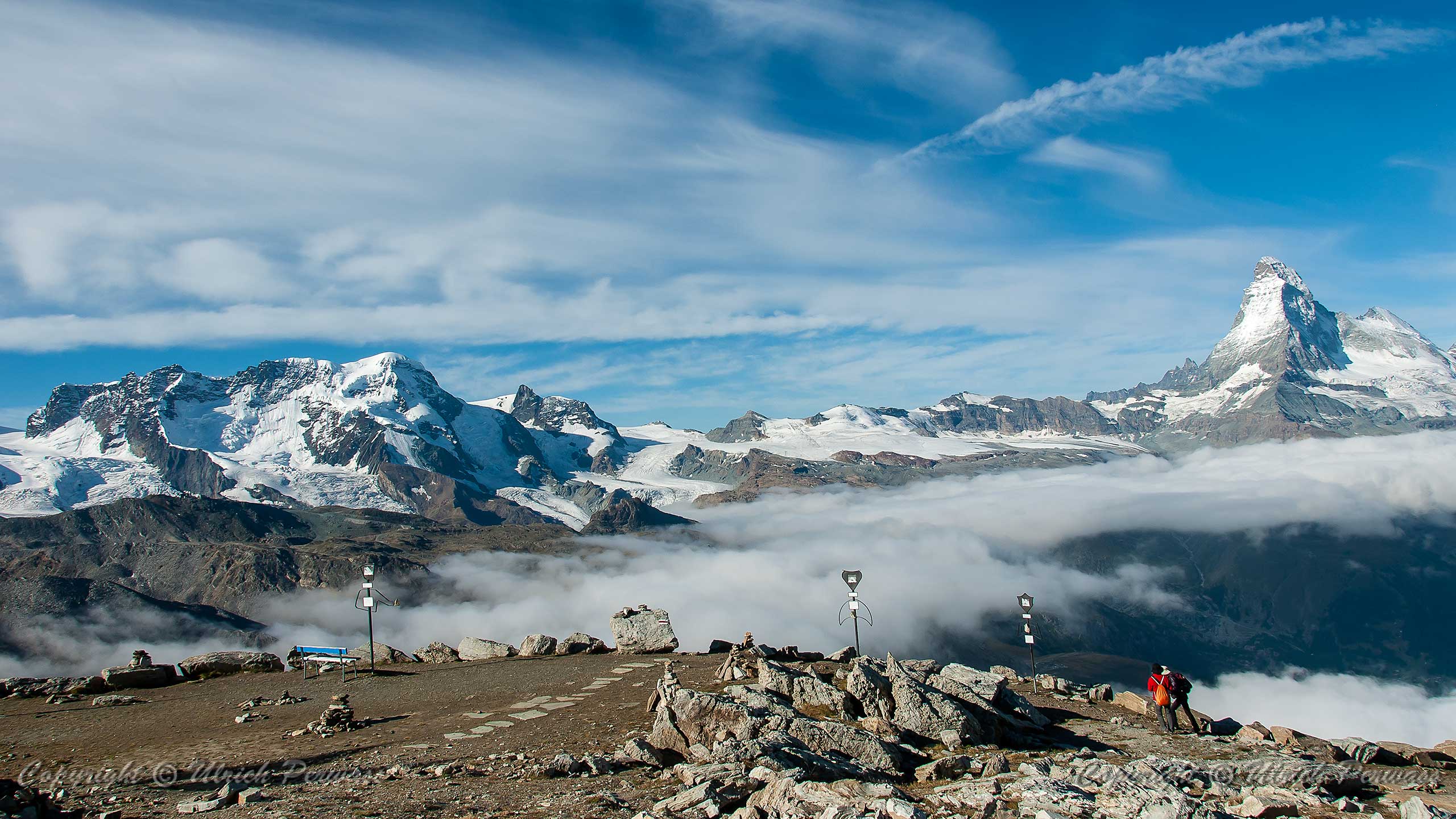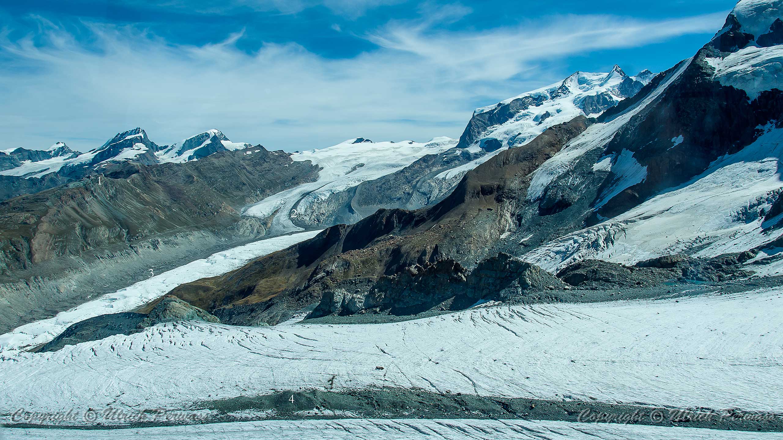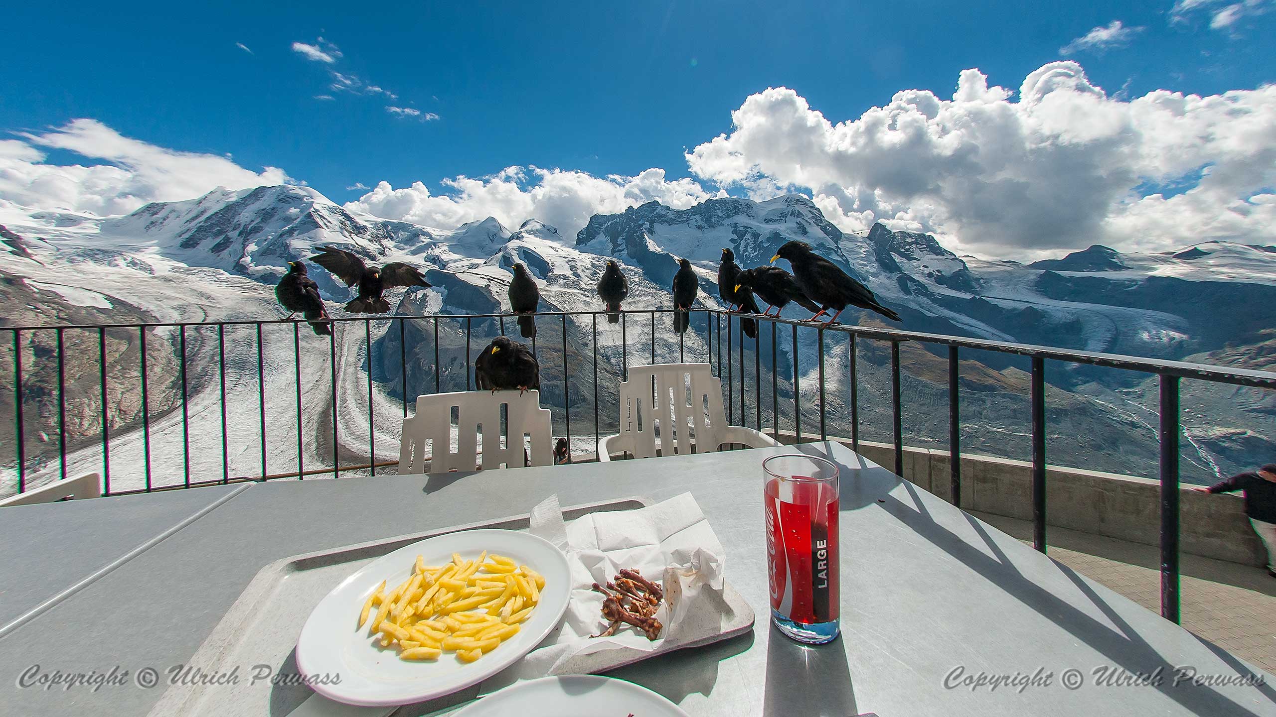Tag 3 Tag 1, Tag 2, Tag 3, Tag 4, Tag 5, Tag 6, Tag 7, Tag 8, Tag 9 Am dritten Tag von Zermatt aus (1.599 Meter) mittels der unterirdischen Standseilbahn Sunnegga zu deren Bergstation (2.279 Meter), dann weiter mit einer Seilbahn zum Blauherd (2571 Meter) und anschließend mit einer beeindruckenden Kabinenbahn zum Rothorn Paradise (3.103 Meter). Dort konnte ich eine sagenhafte Aussicht genießen. Schauen Sie selbst: |