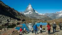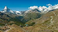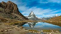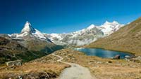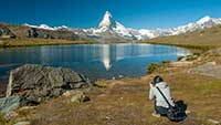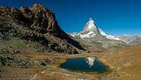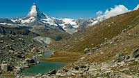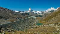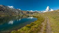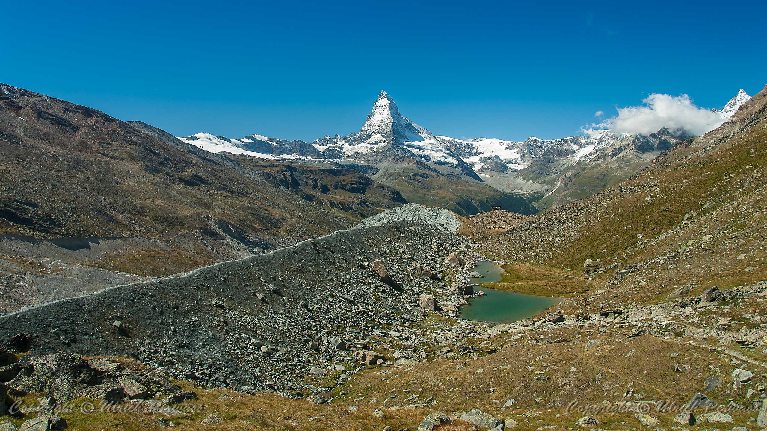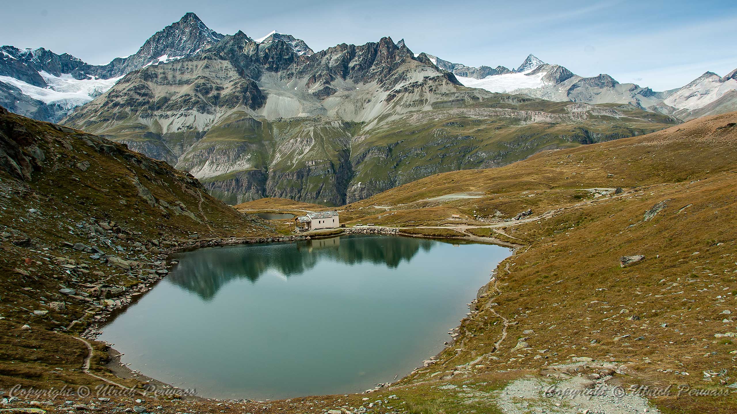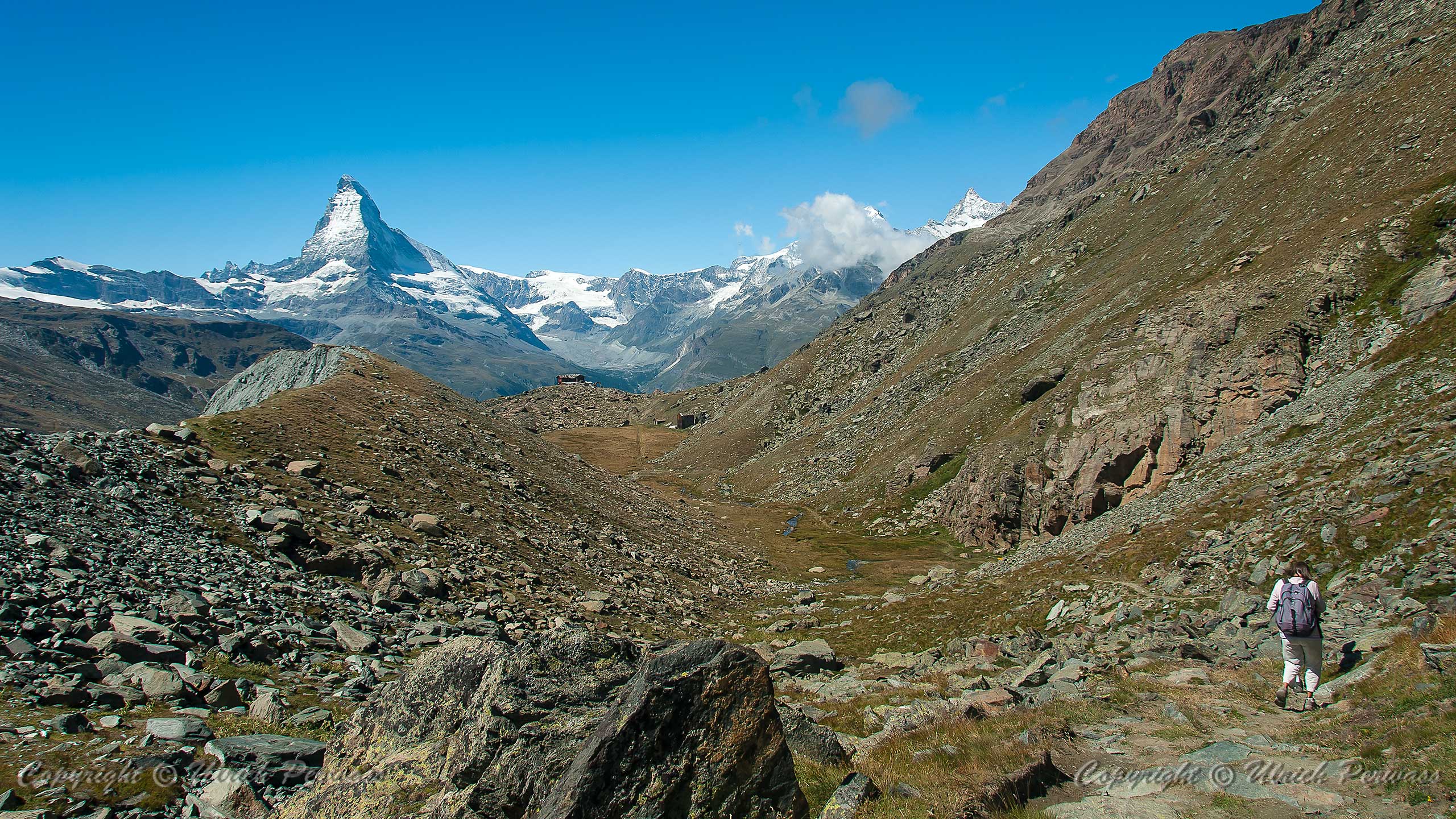 Tag 5 Tag 1, Tag 2, Tag 3, Tag 4, Tag 5, Tag 6, Tag 7, Tag 8, Tag 9 Am fünften Tag war nun der 5-Seenweg an der Reihe, um das berühmte Bild der Matterhornspiegelung im Stellisee zu fotografieren. Für alle fünf Seen reichte die Zeit nicht, aber bis zum Grindjisee schaffte ich es. Morgens um 7 Uhr ging es los, um 16 Uhr konnte ich die Beine von mir strecken. |